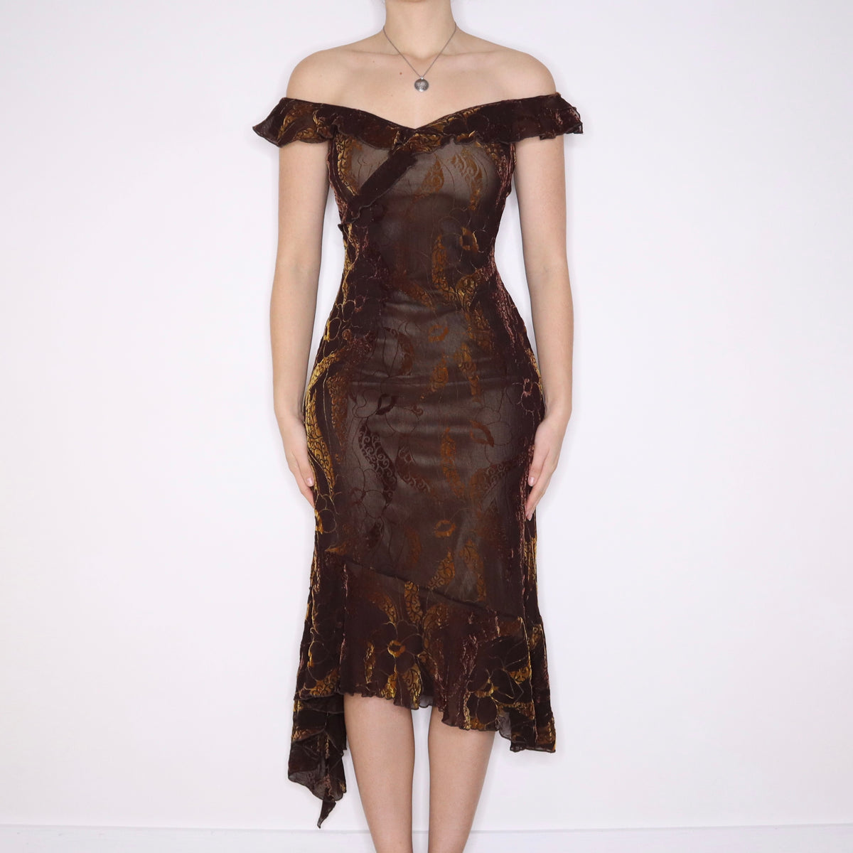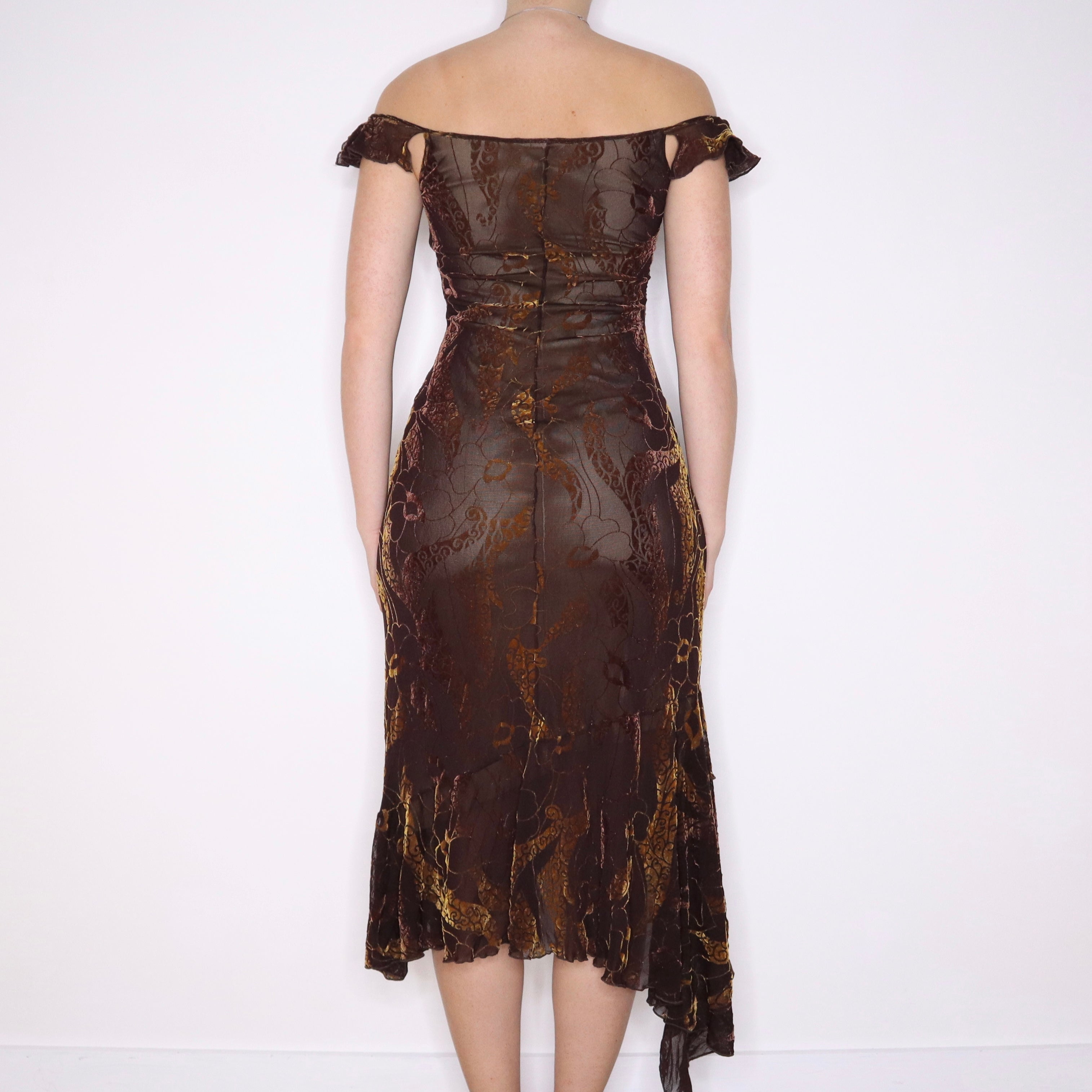 Y2K Spanish Brown Velvet Maxi Dress (XS/S)