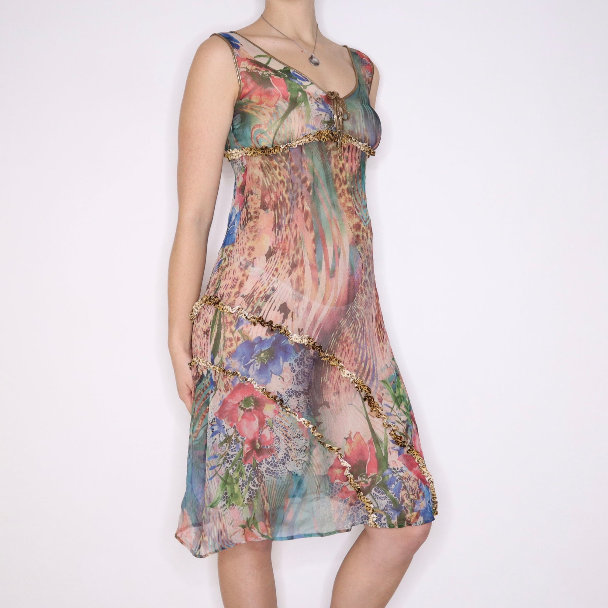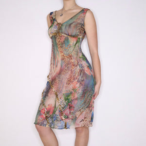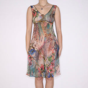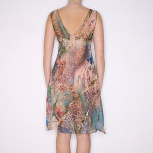 Y2K Colorful Silk Chiffon Dress (S)