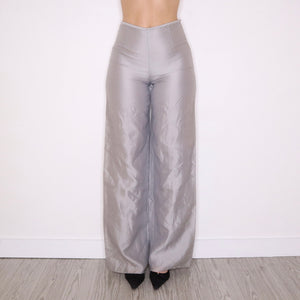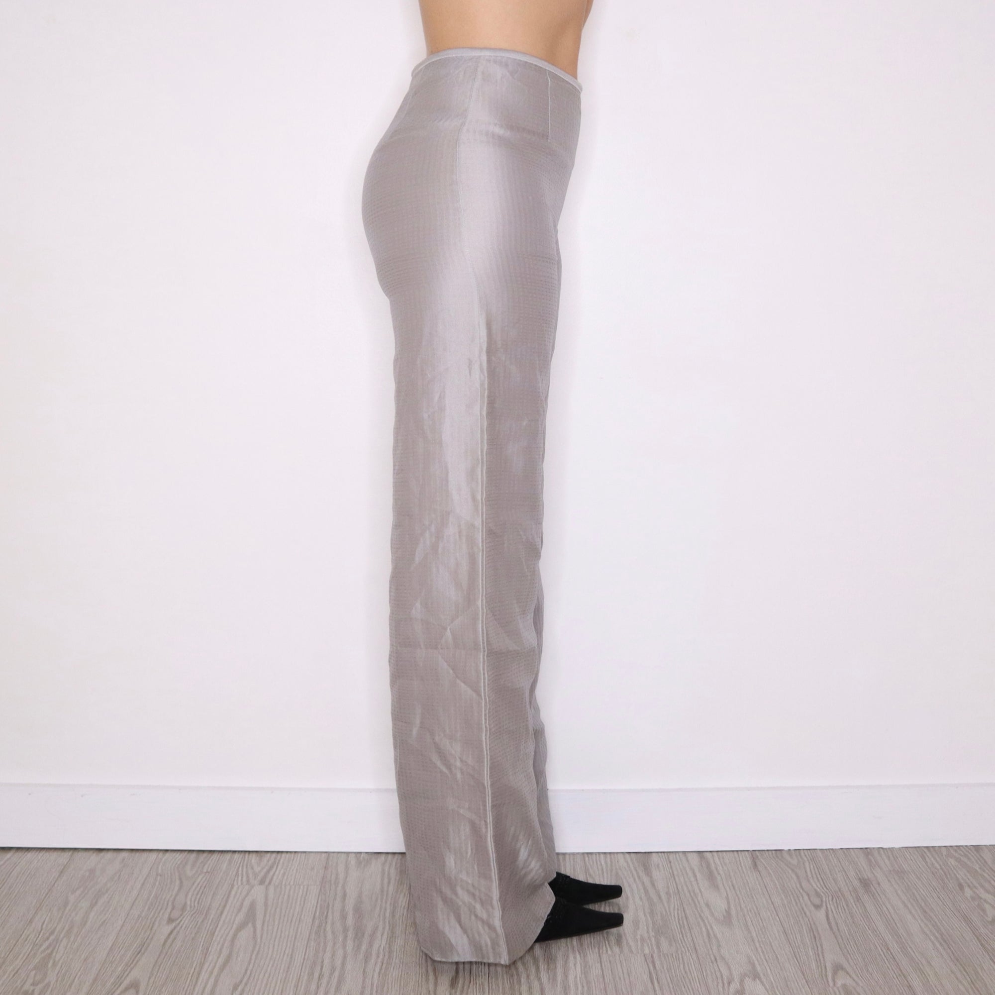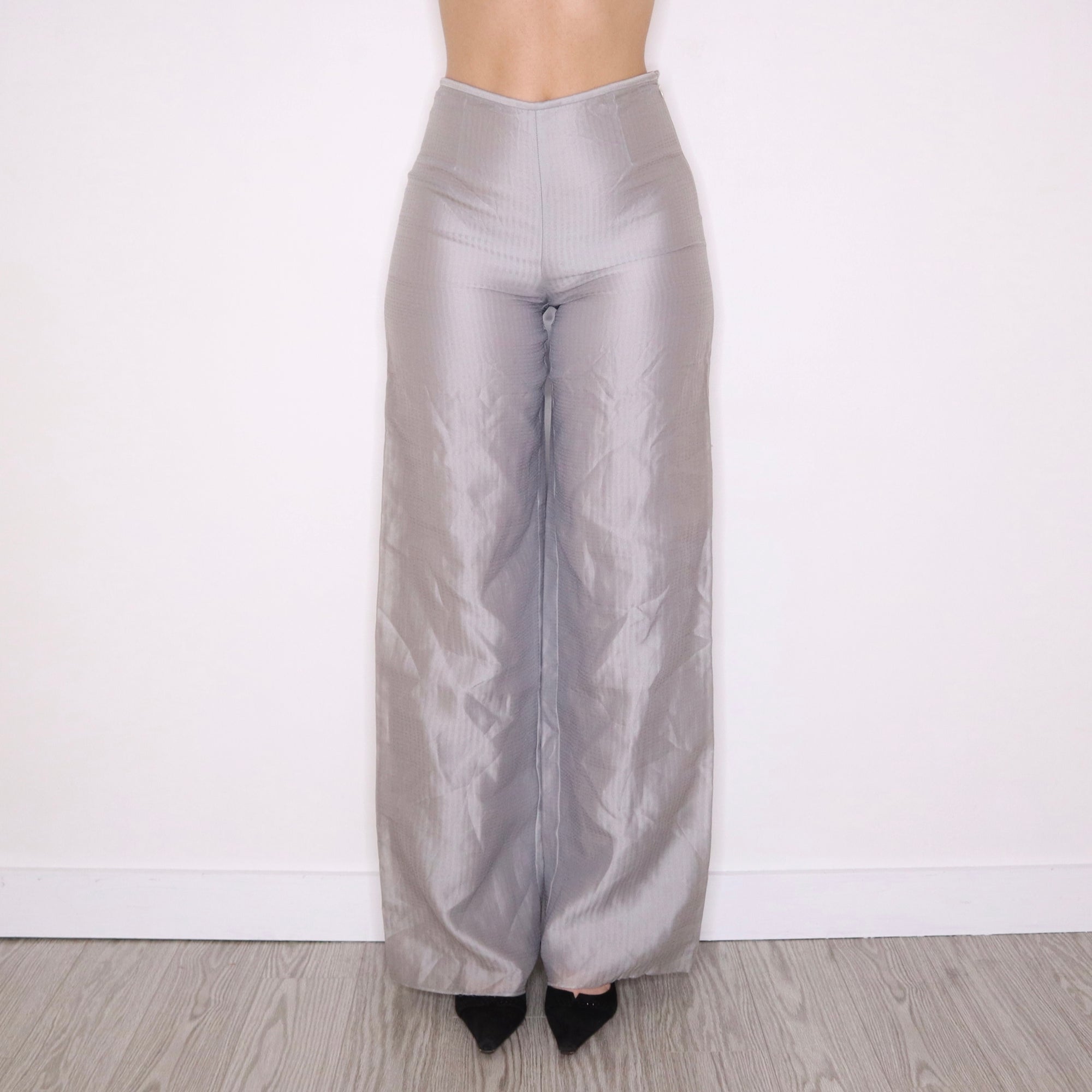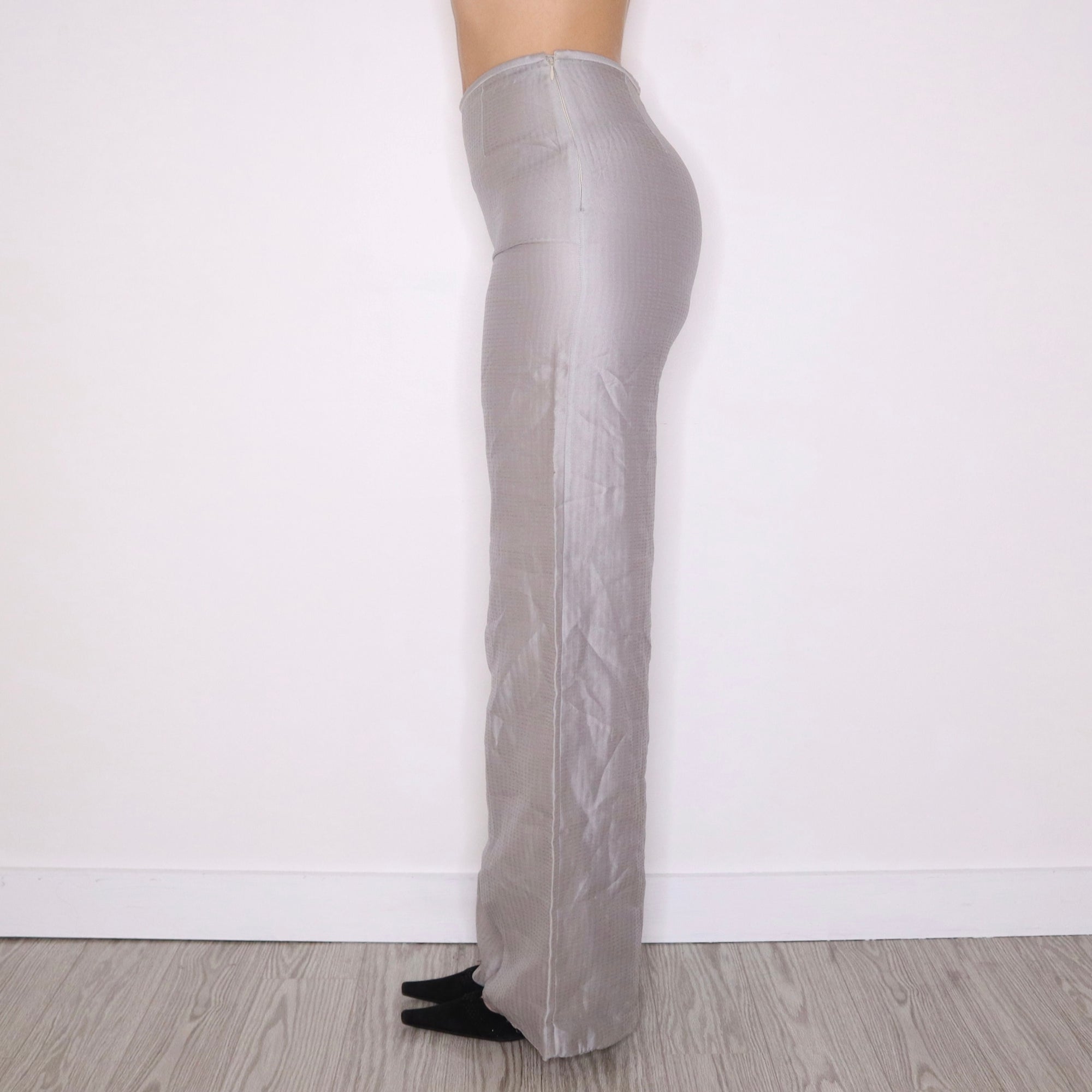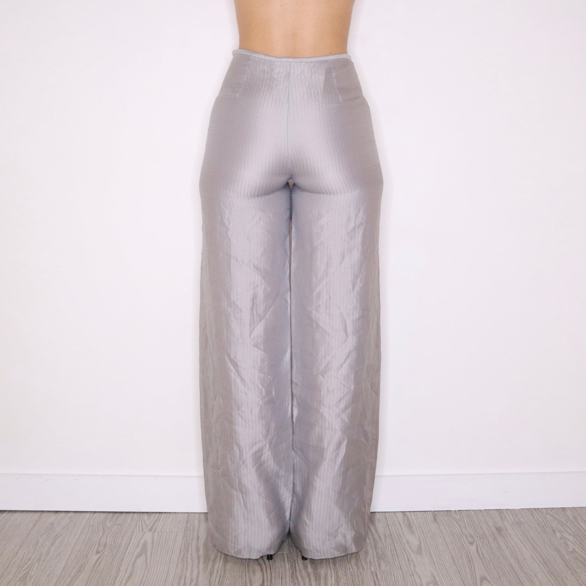 90s GIORGIO ARMANI Light Gray Striped Wide Leg Pants (S)