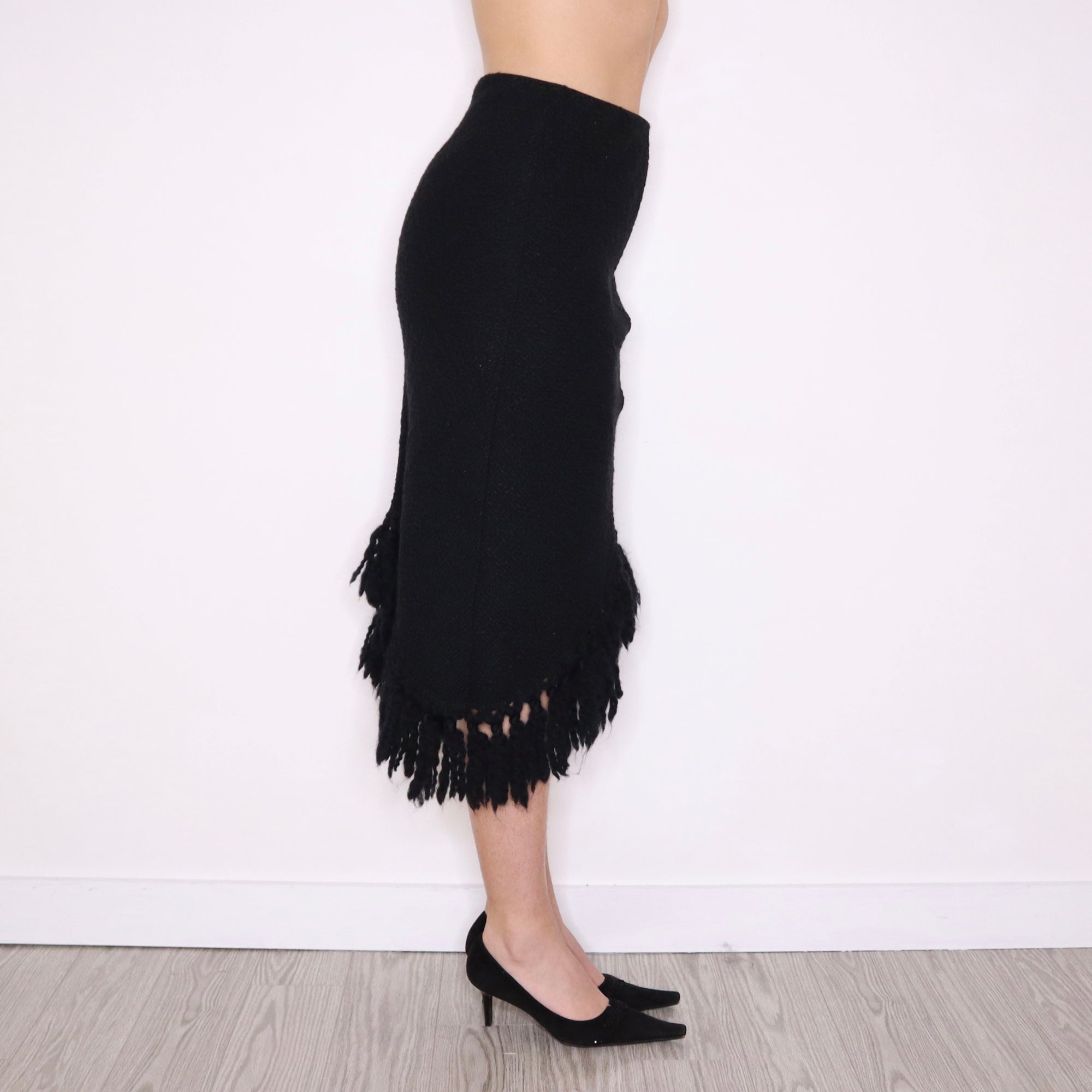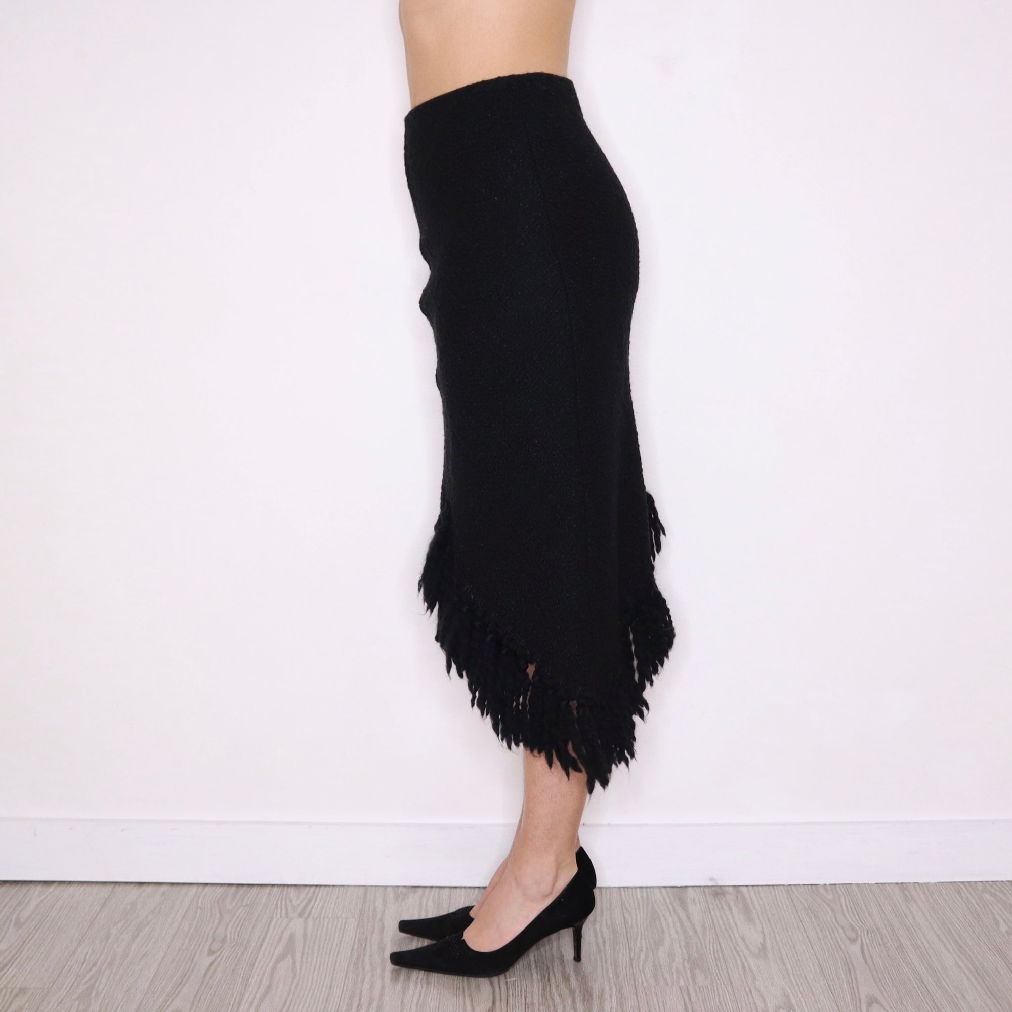 90s Italian Black Wool Fringe Maxi Skirt (S)