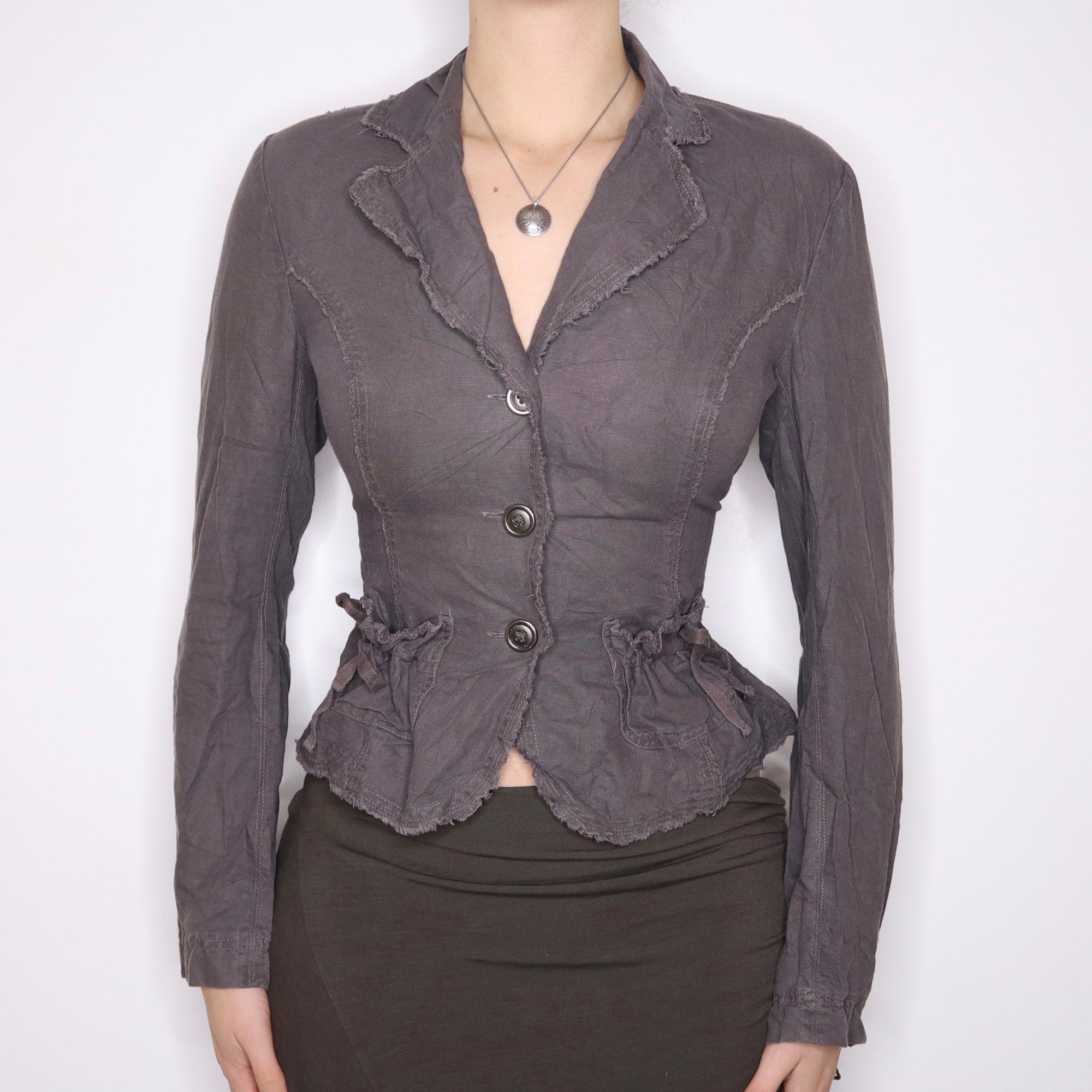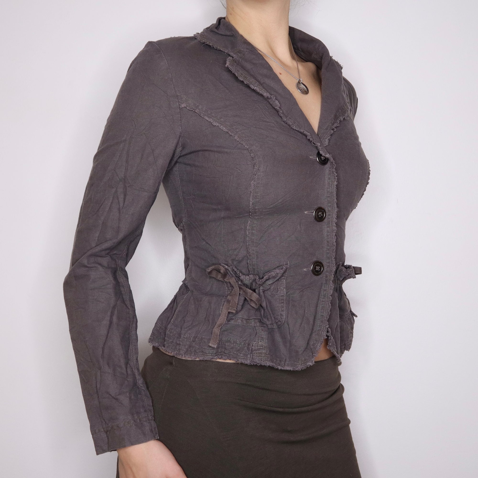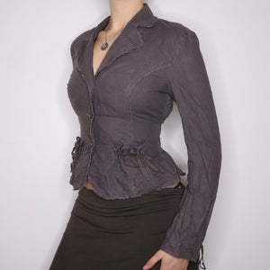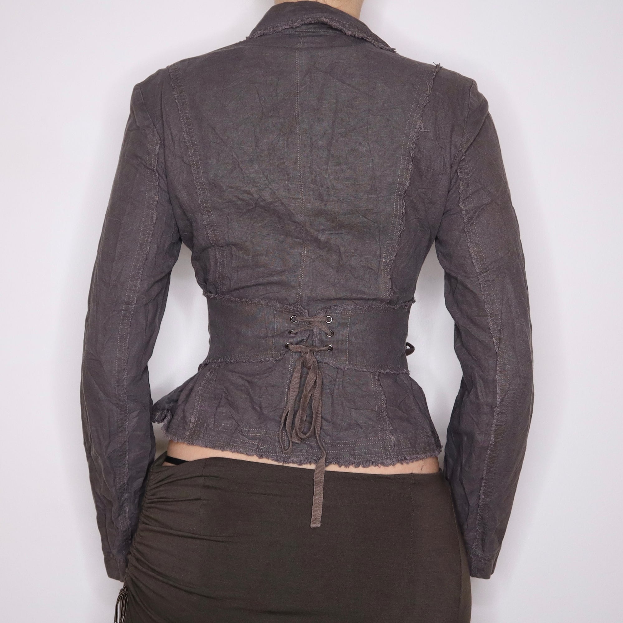 Y2K Brown Crinkled Linen Corset Blazer (XS)