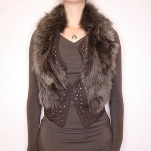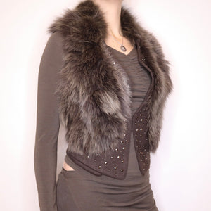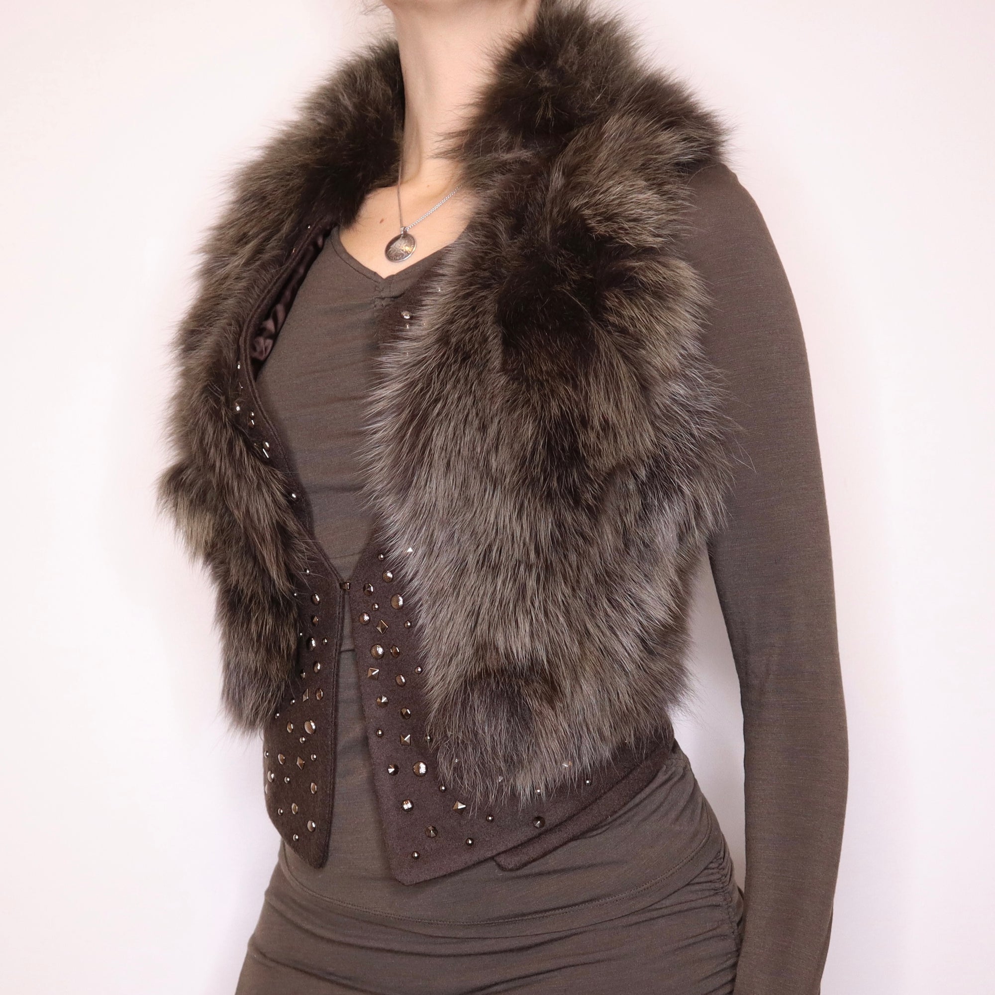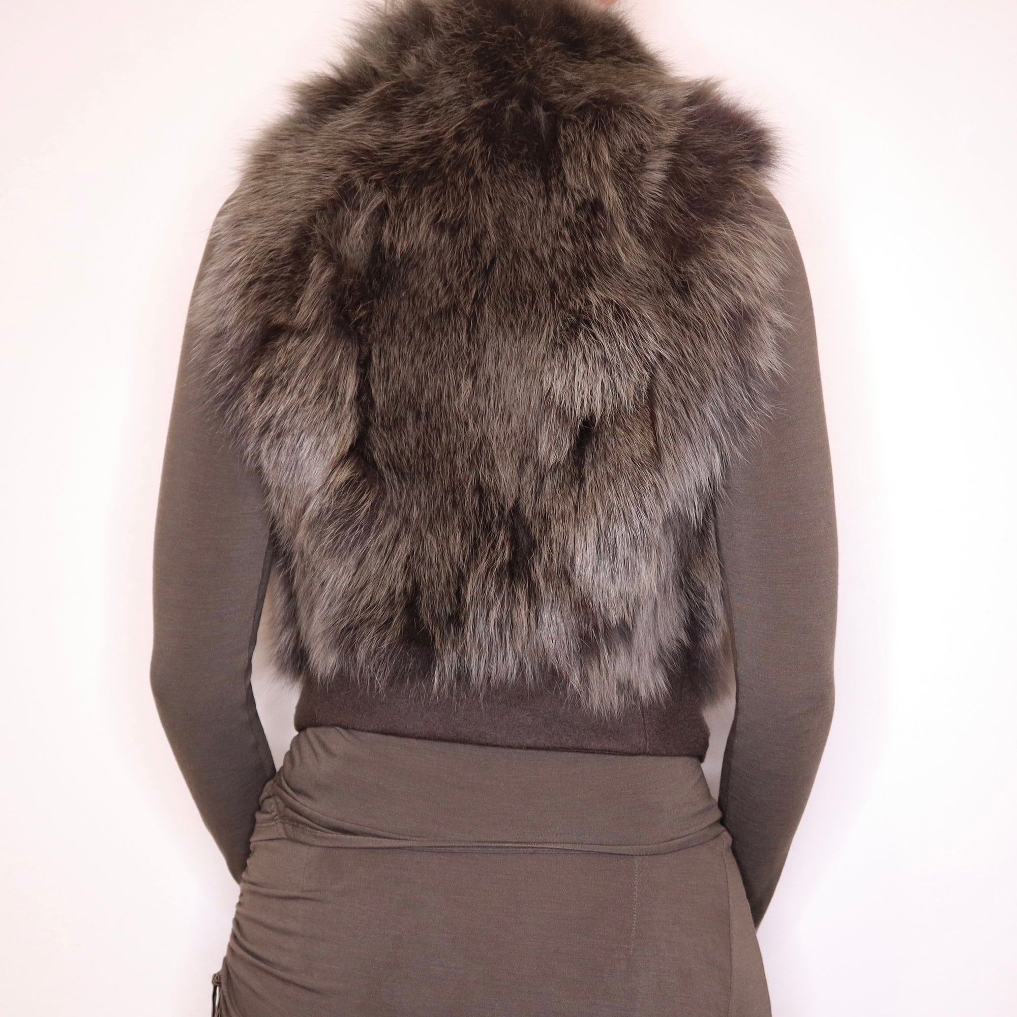 Model is 5’9” and a size S to M. This vest fits well on her.