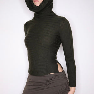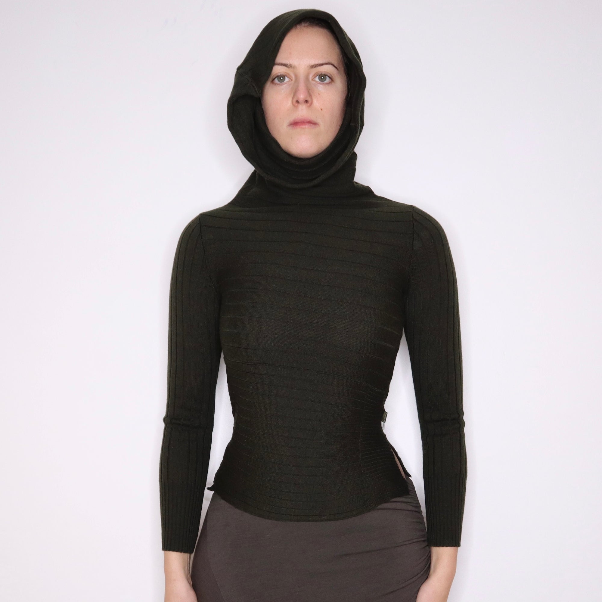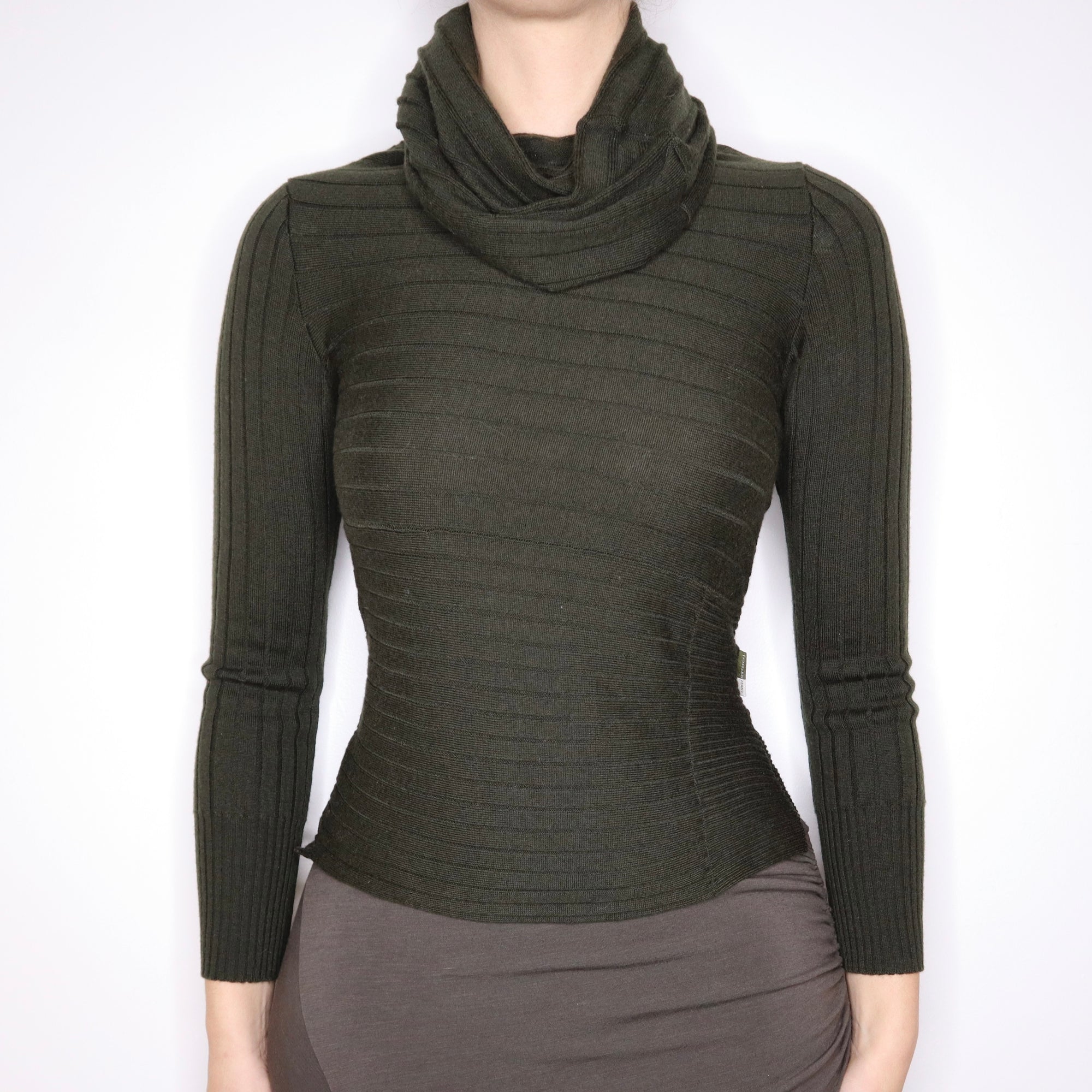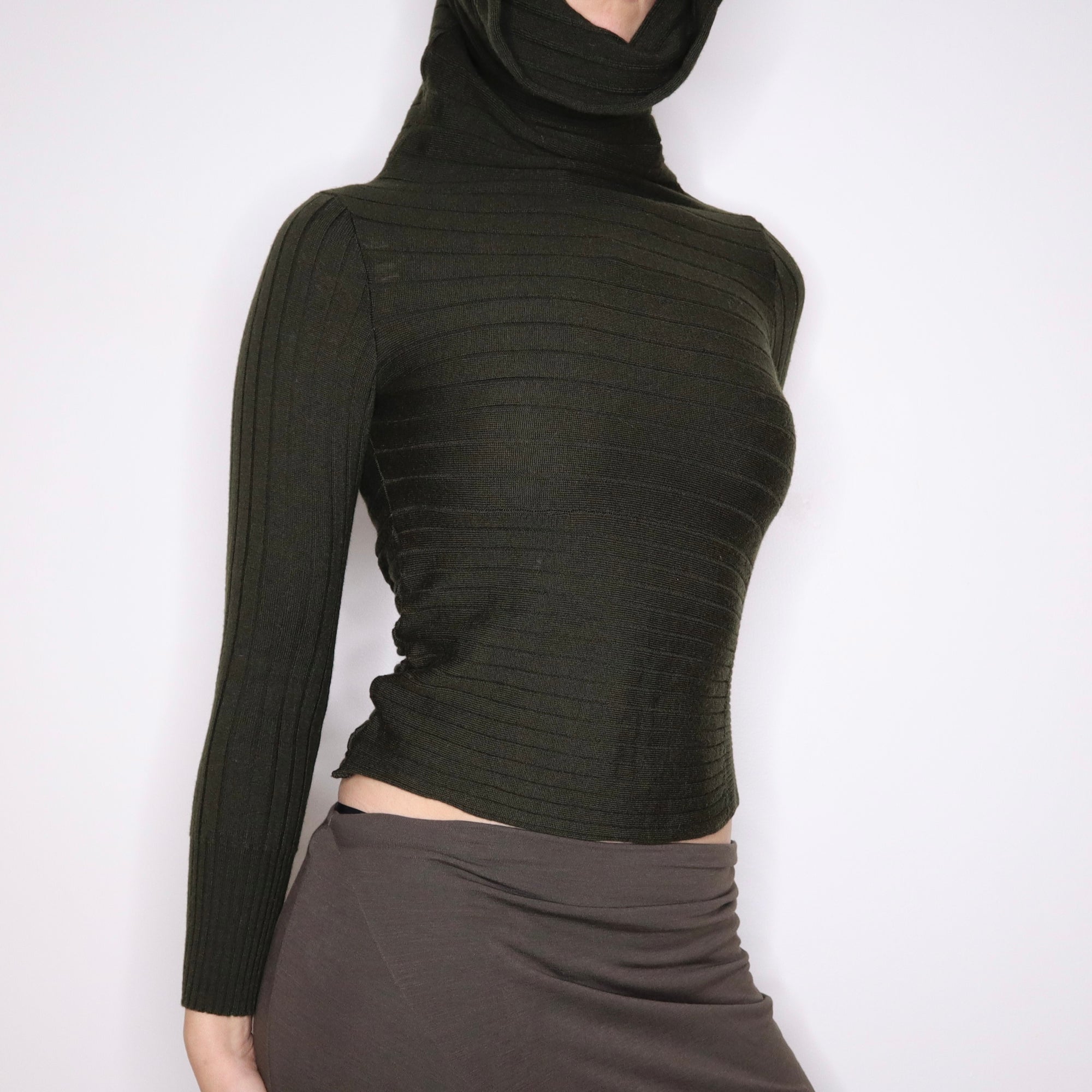 Y2K Dark Green Wool Cowl Neck Sweater (XS/S)