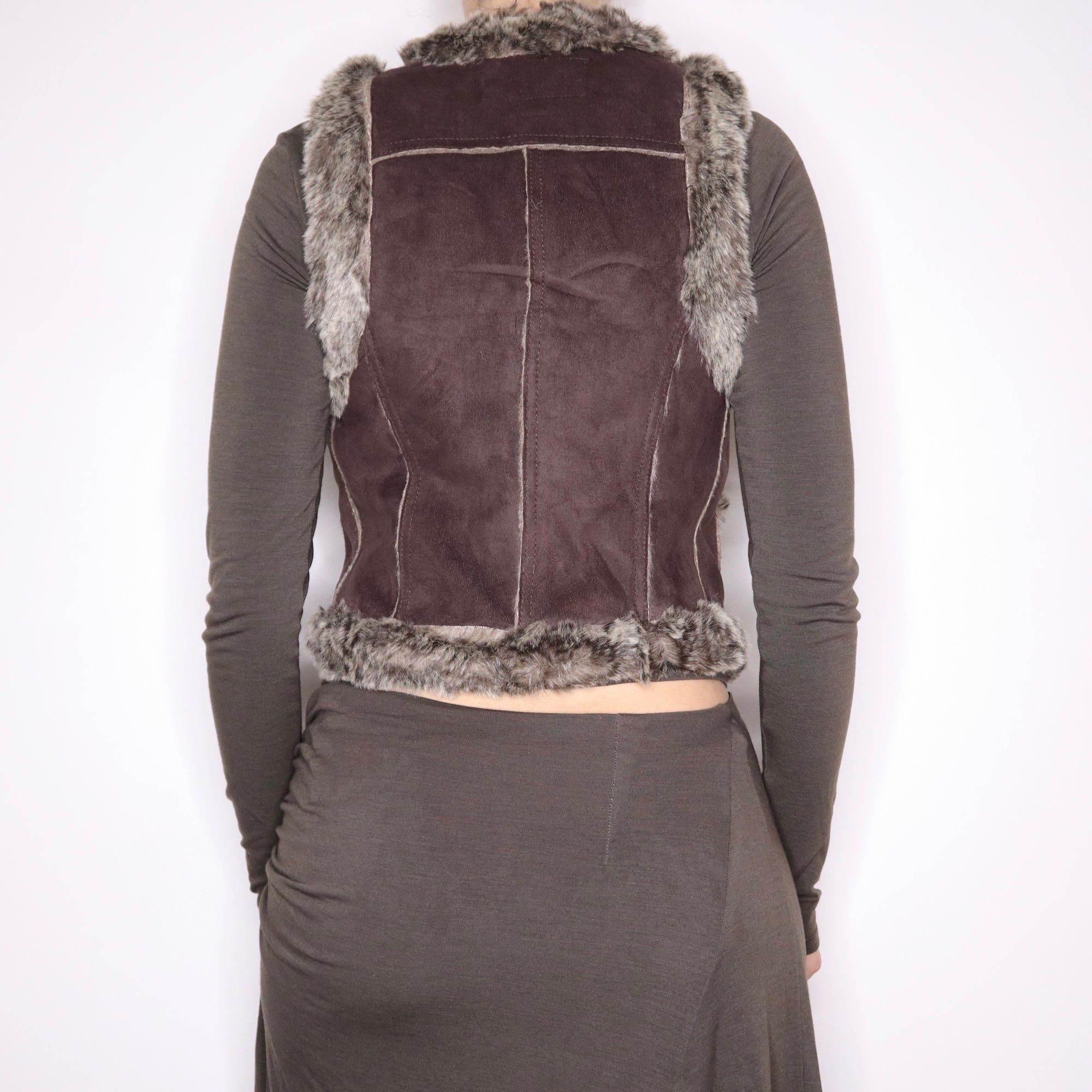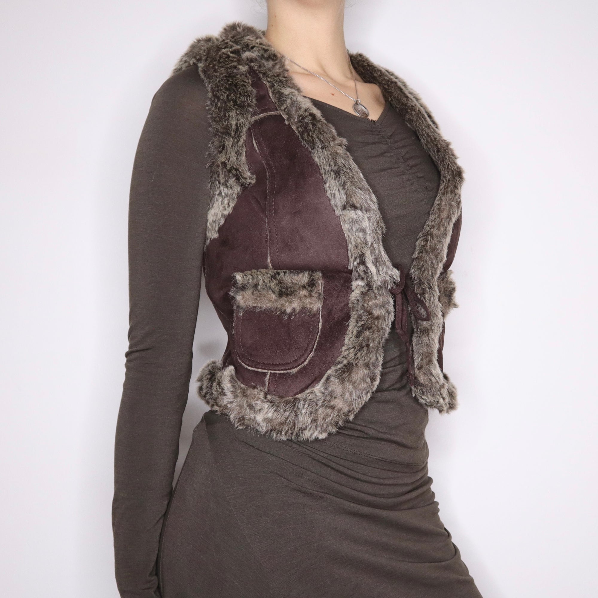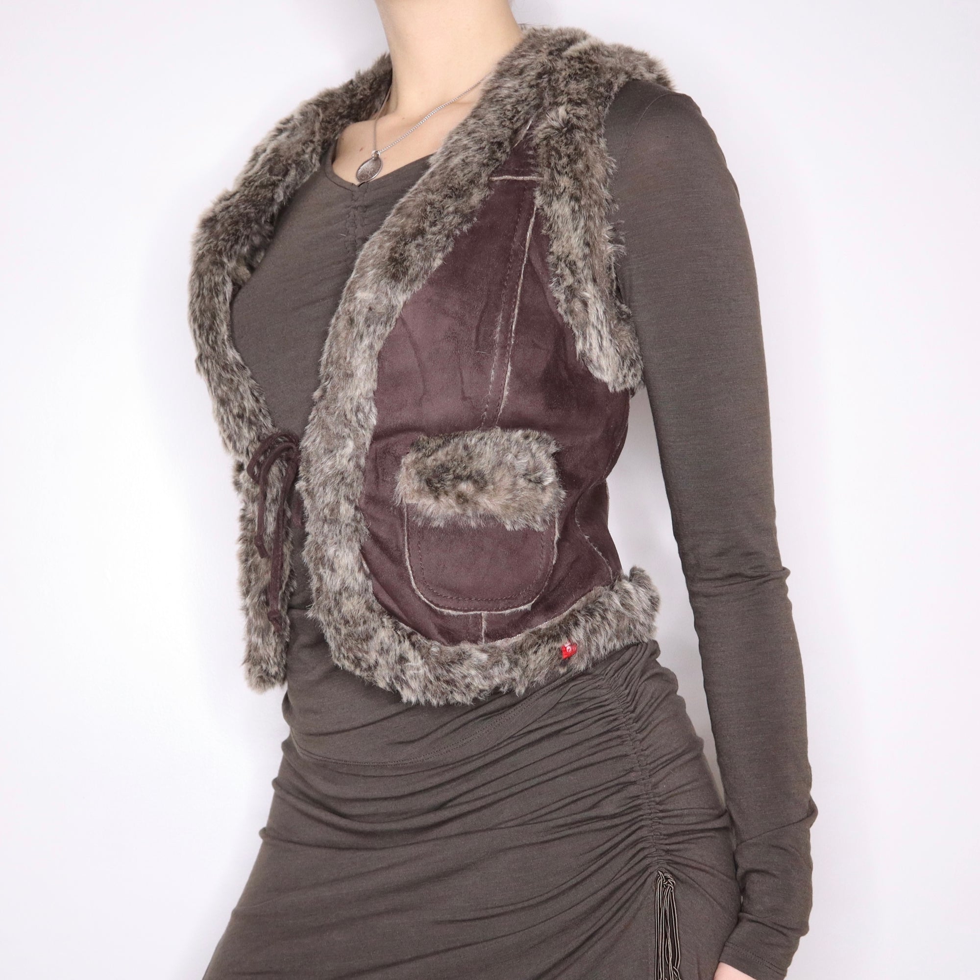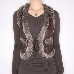 Y2K ESPRIT Brown Faux Fur Vest (S)