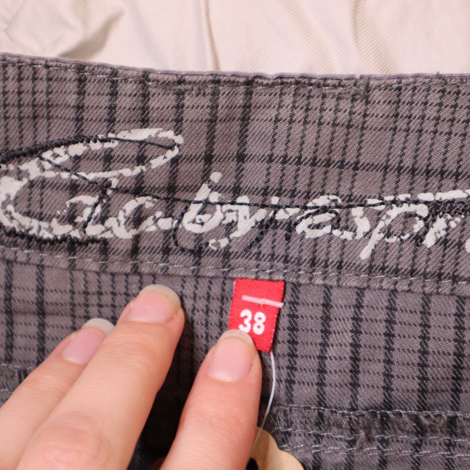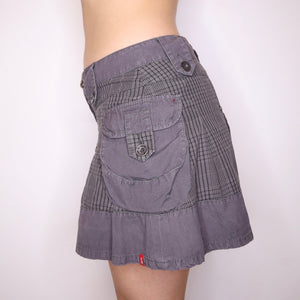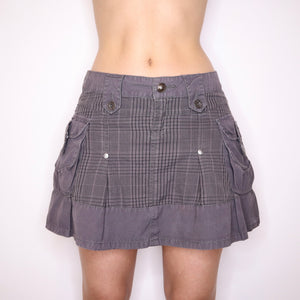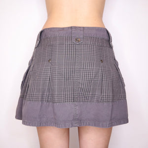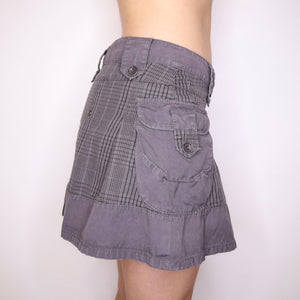 Y2K Gray Plaid Cargo Mini Skirt (M)
