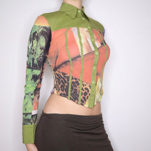 Y2K Italian Colorful Graphic Print Blouse (S/M)