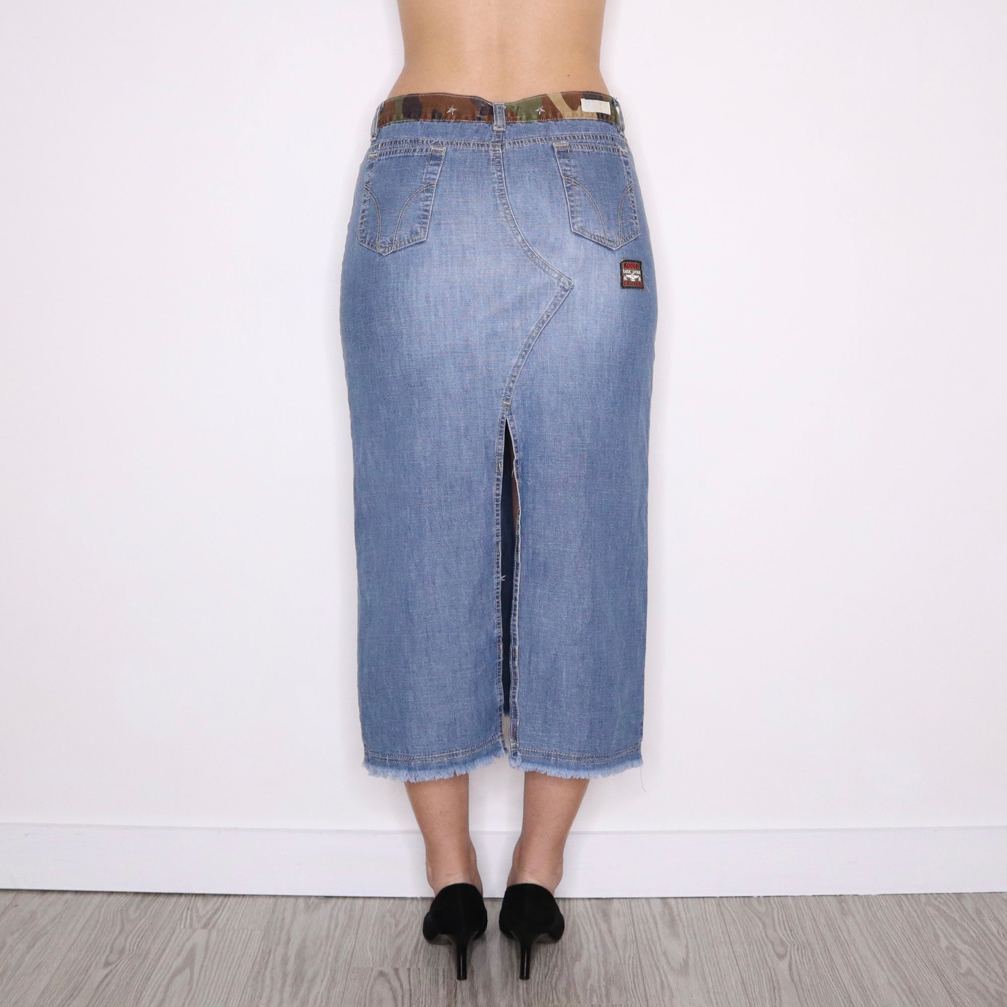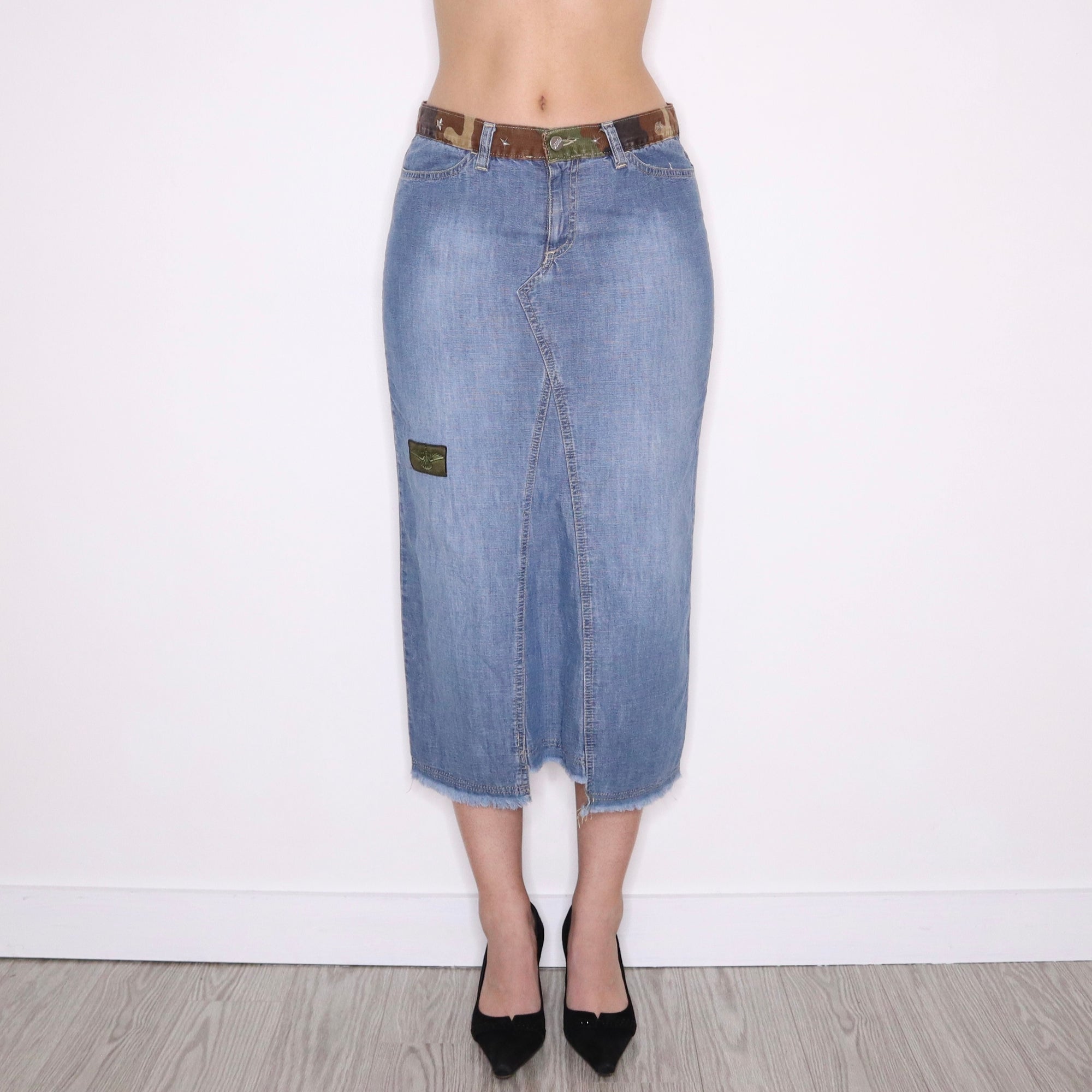 Y2K Italian Long Denim Camo Trim Skirt (S/M)