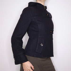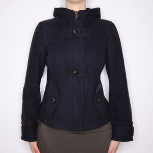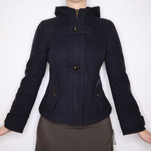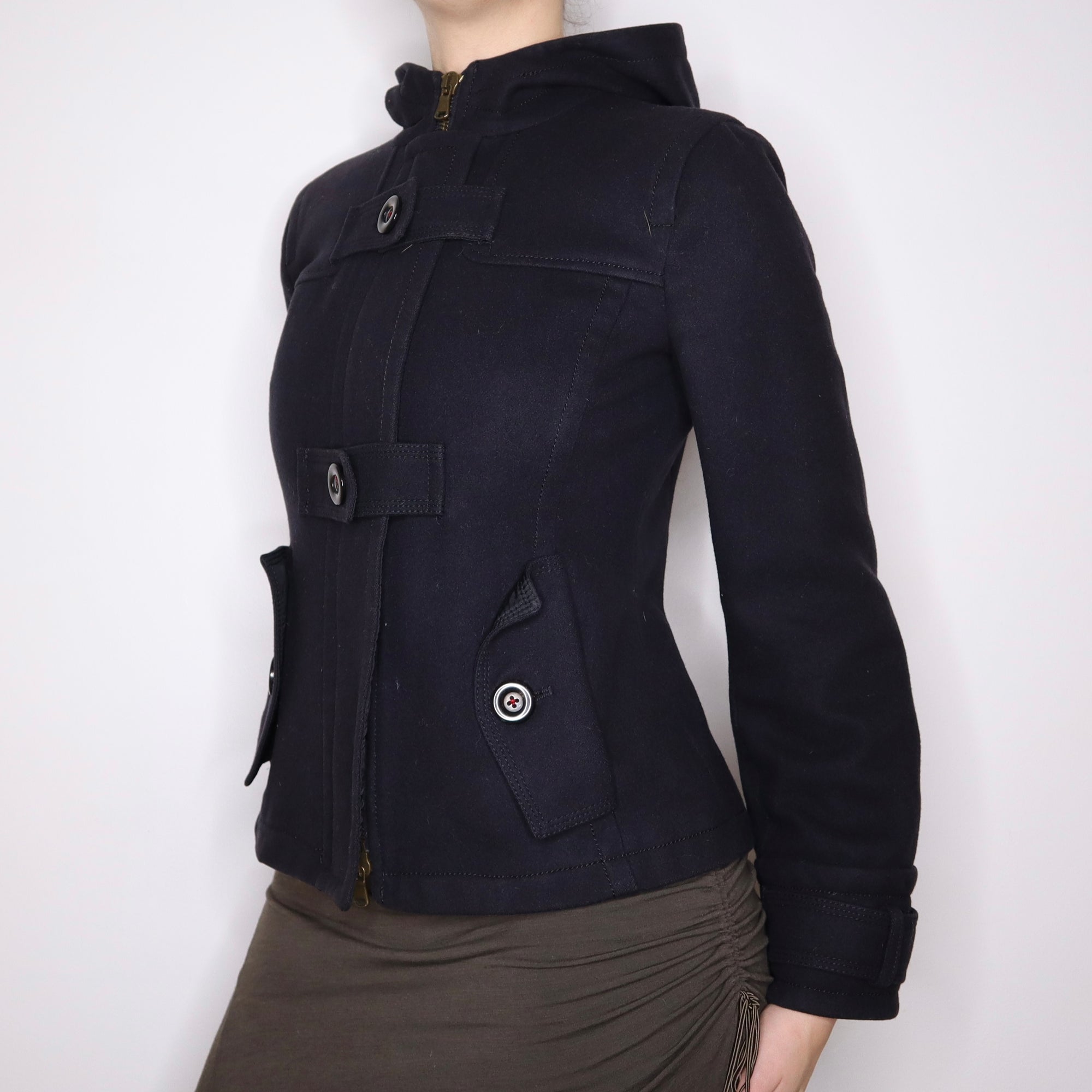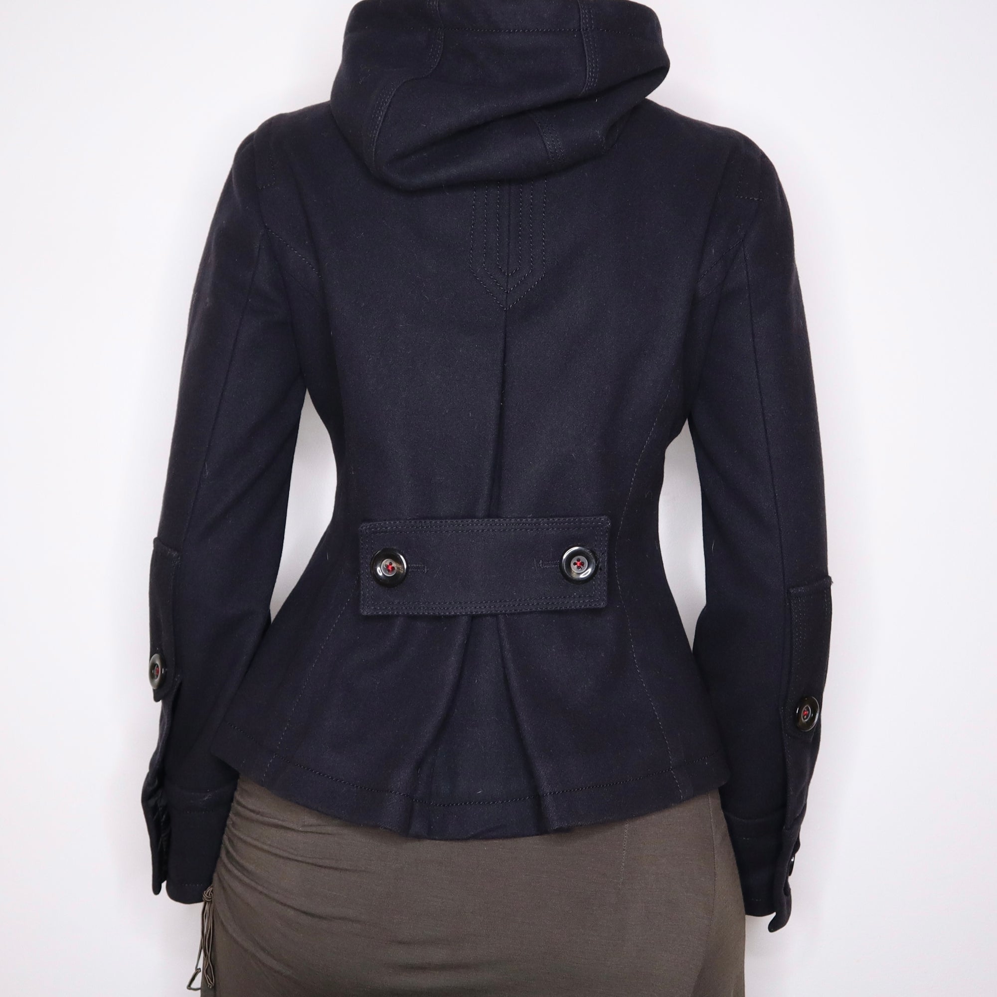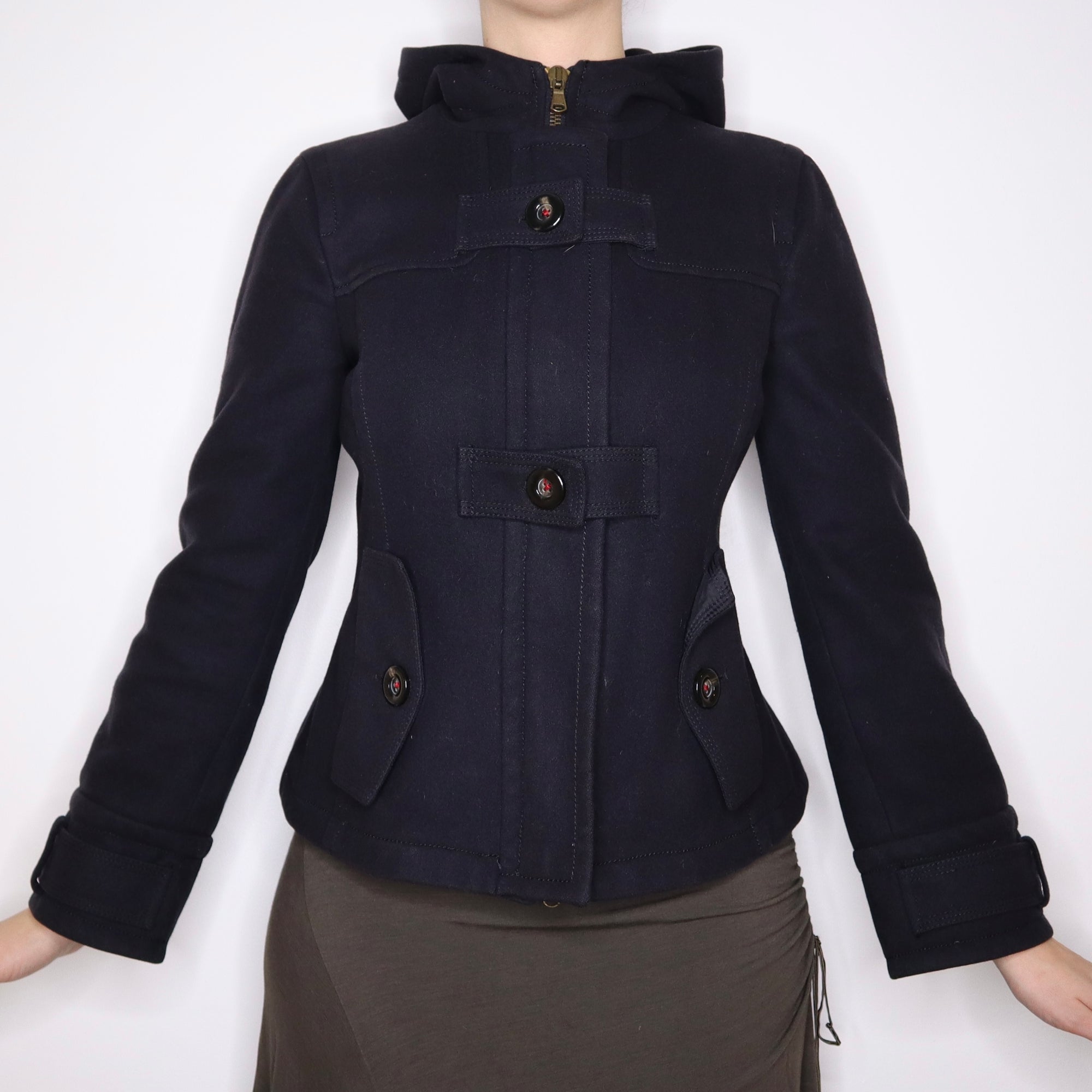 Model is 5’9” and a size S to M. This coat fits well on her.