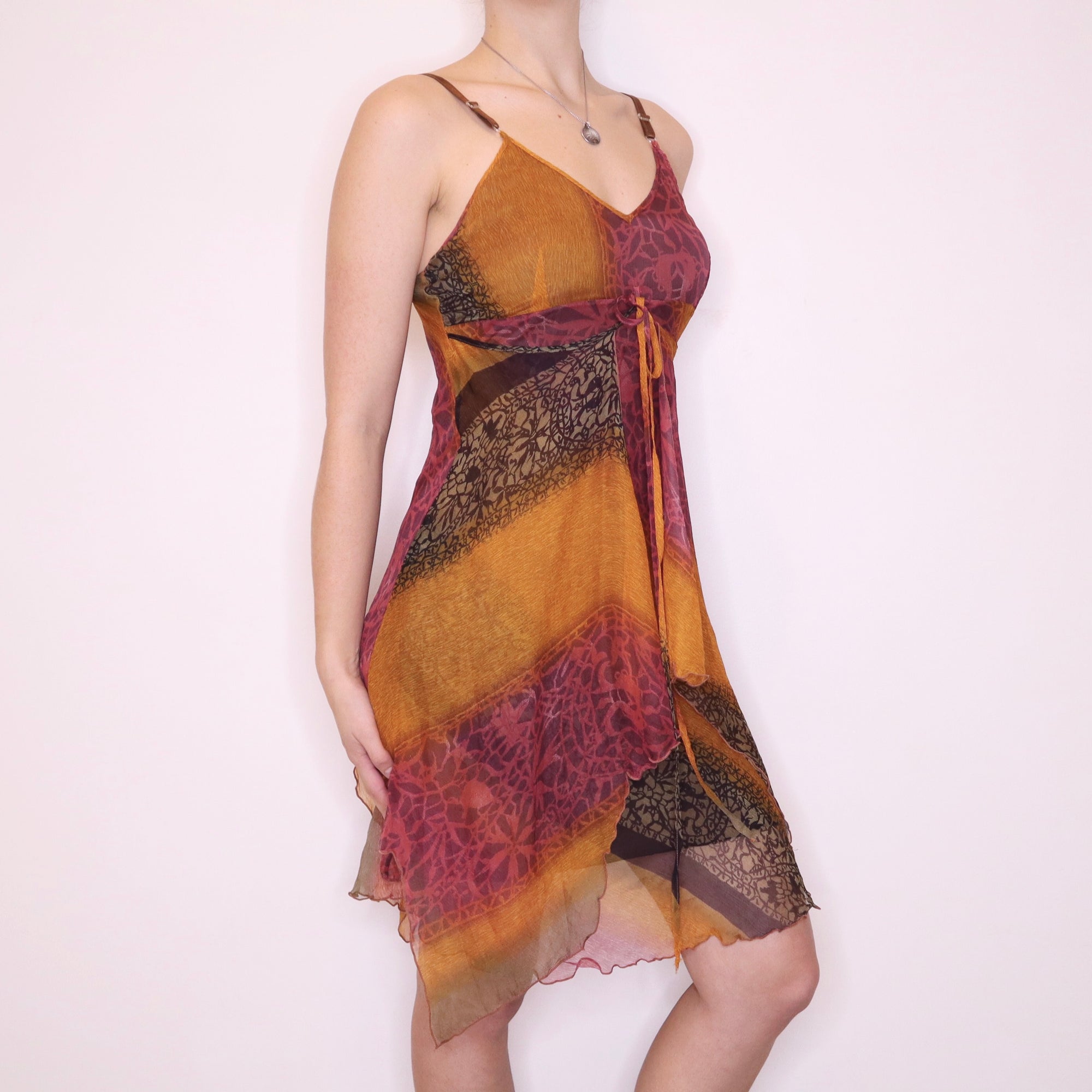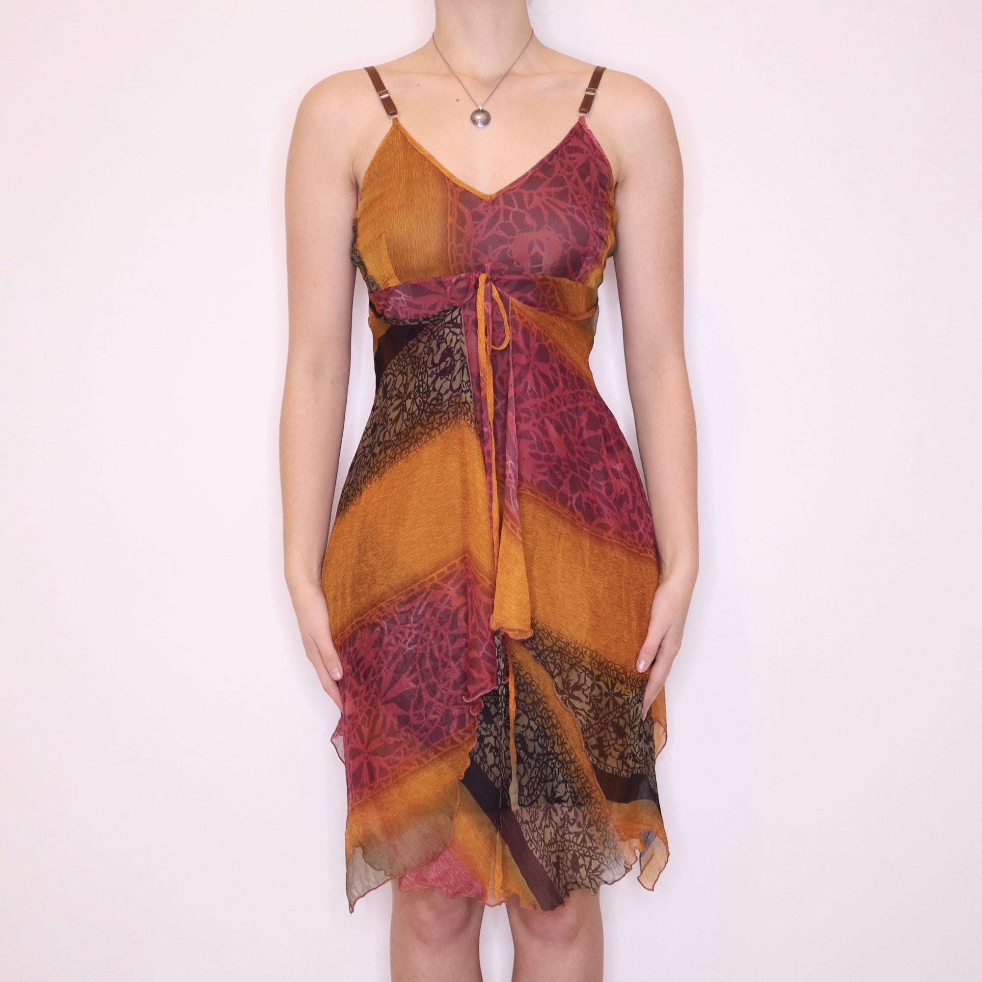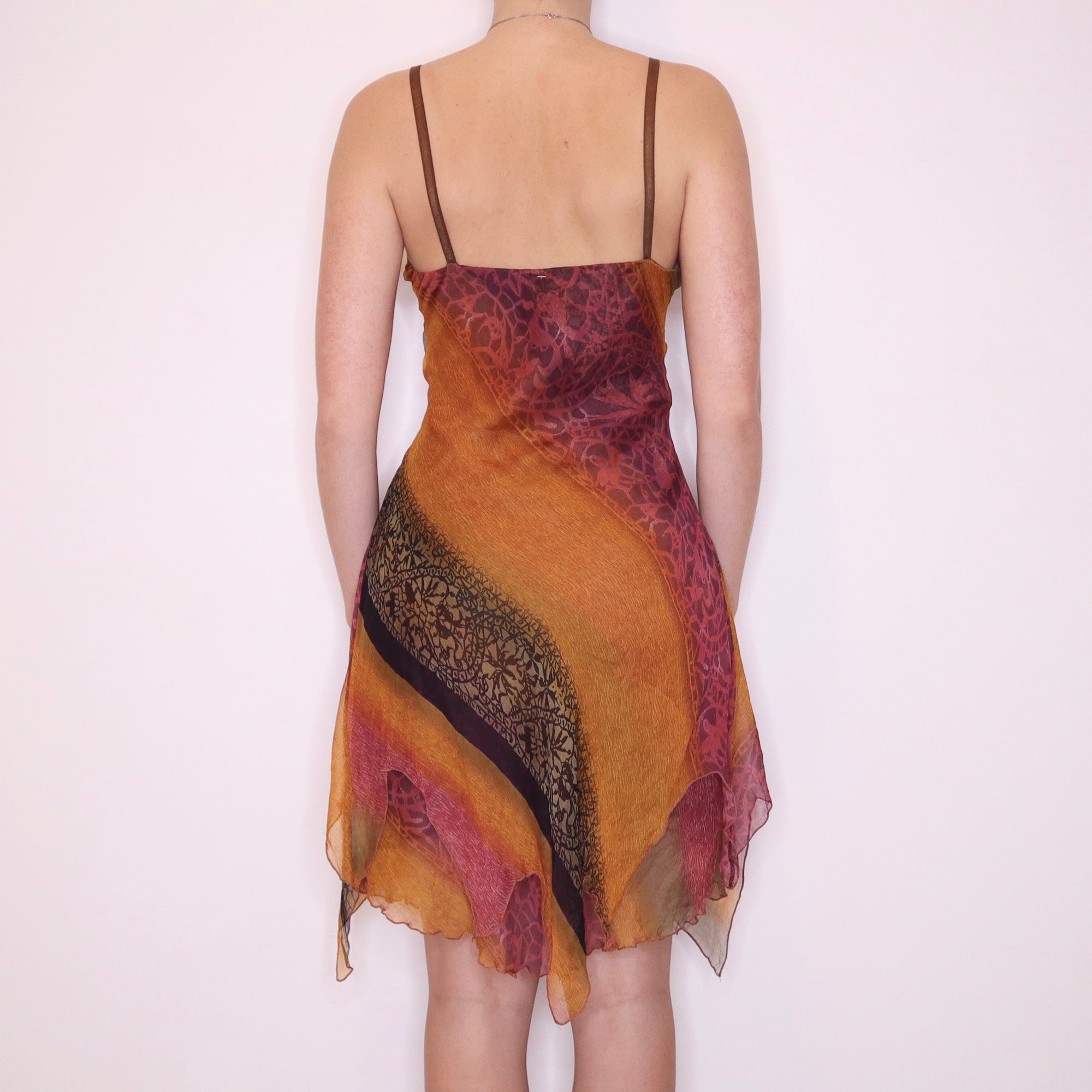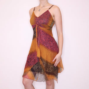 Y2K Italian Orange and Pink Silk Chiffon Dress (S)