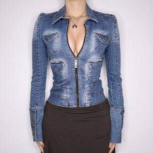 Y2K Italian Sexy Zip Up Denim Jacket (XS)