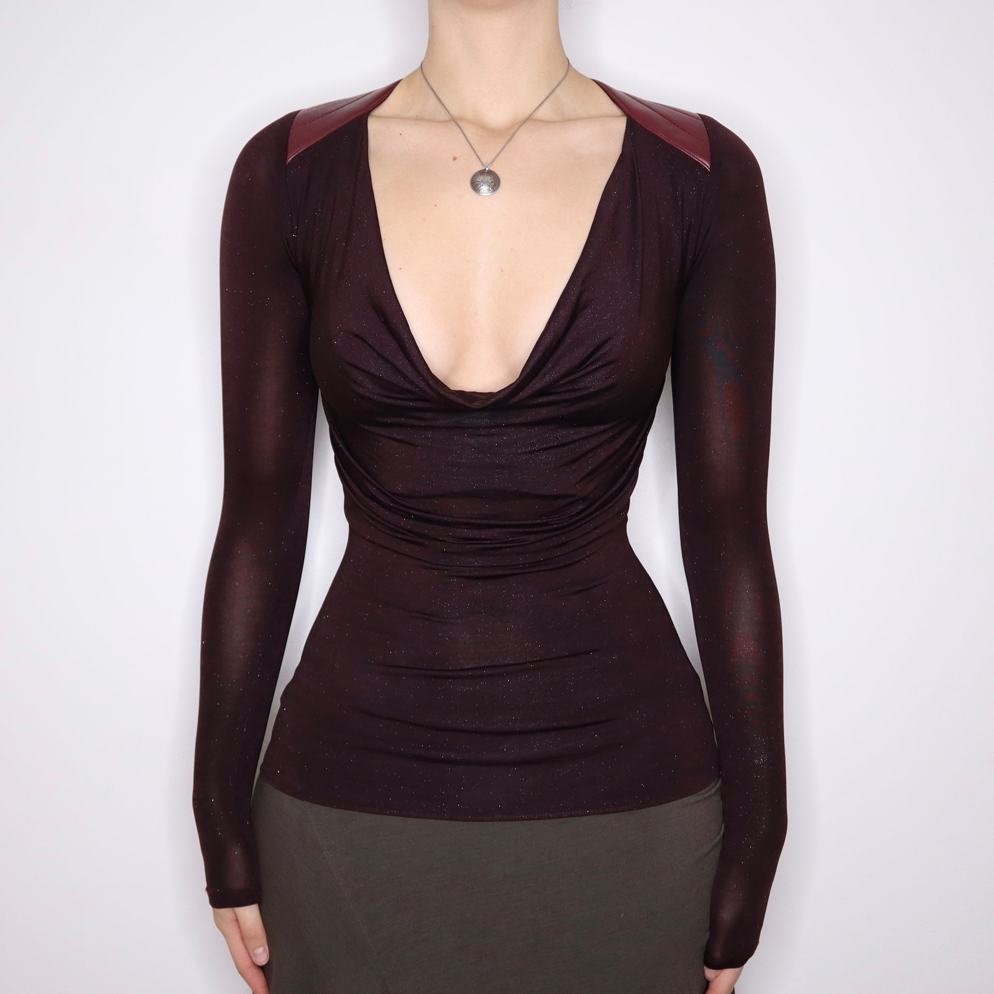Y2K Maroon Sparkly Cowl Neck Top (XS)