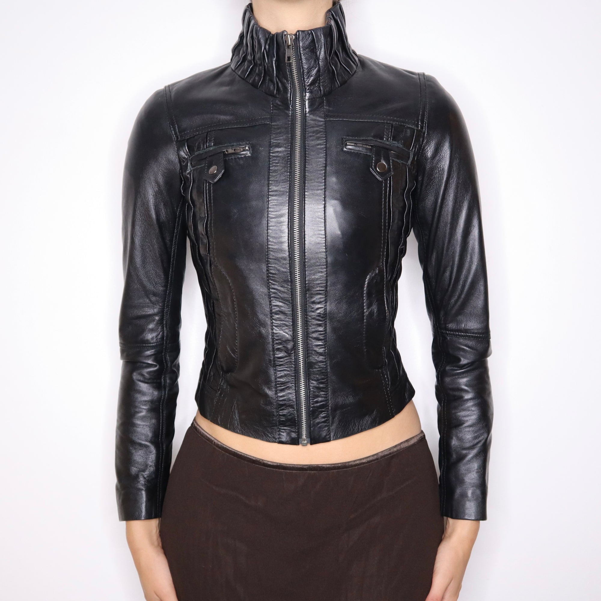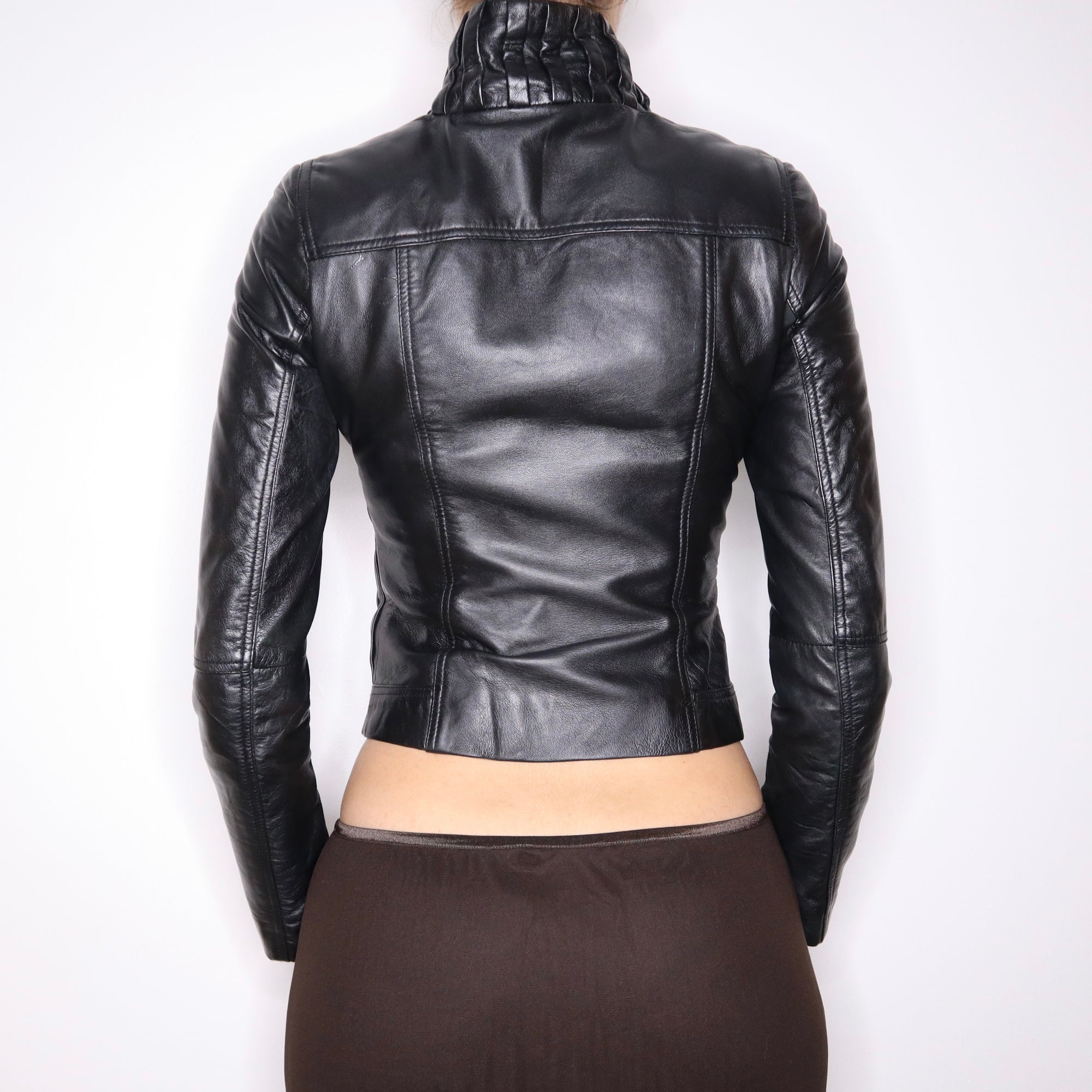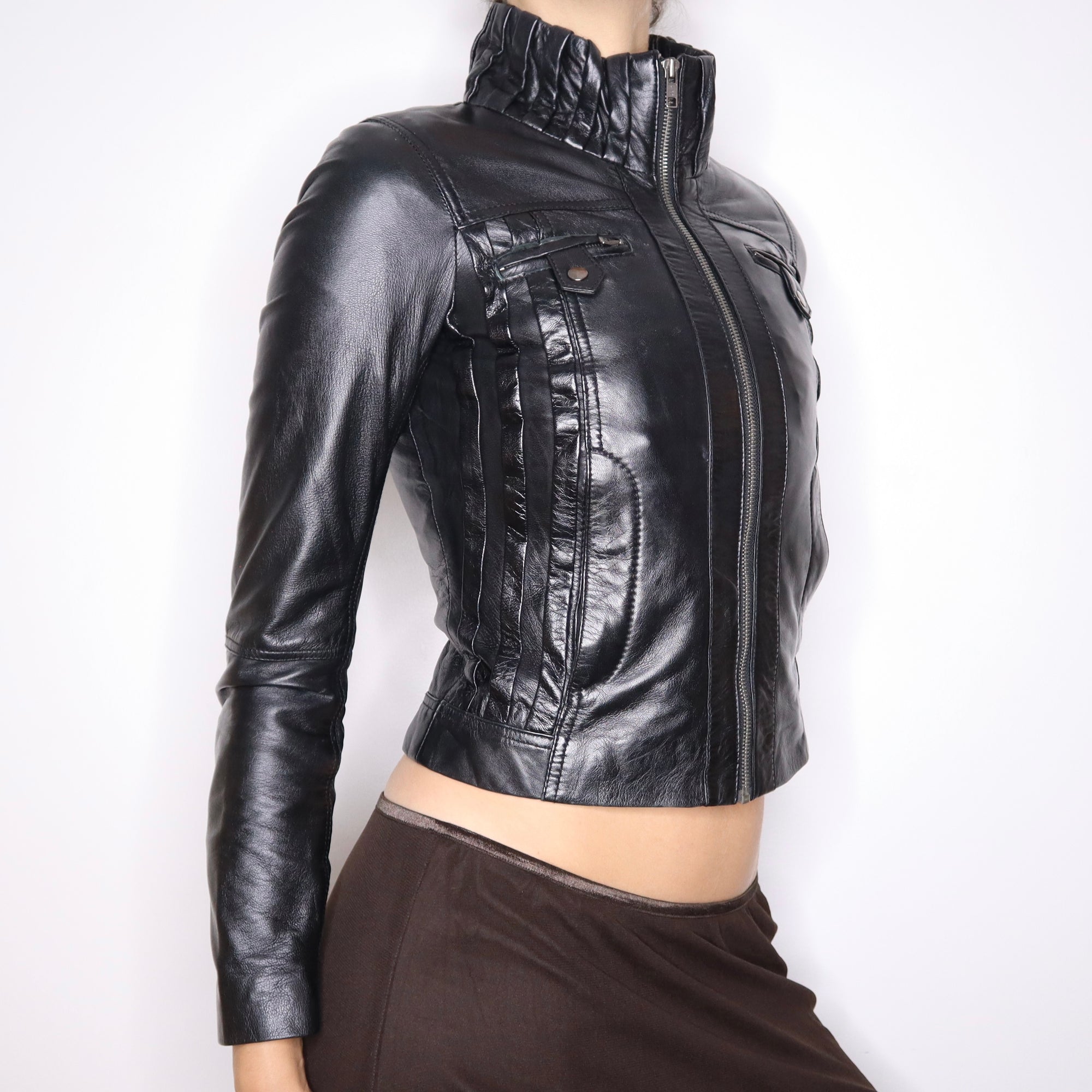 Y2K Sexy Black Leather Moto Jacket (XXXS)