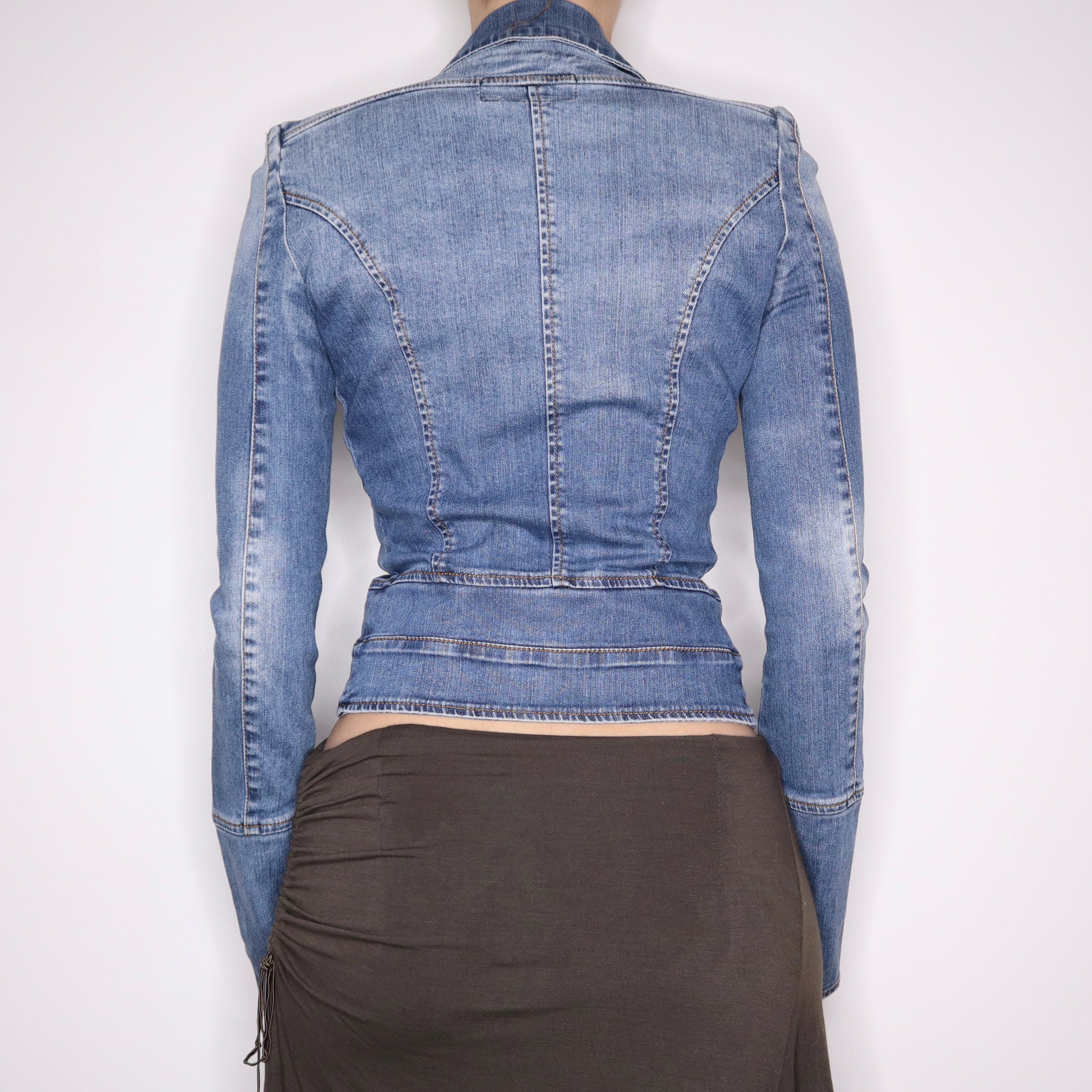 Y2K Italian Sexy Zip Up Denim Jacket (XS)