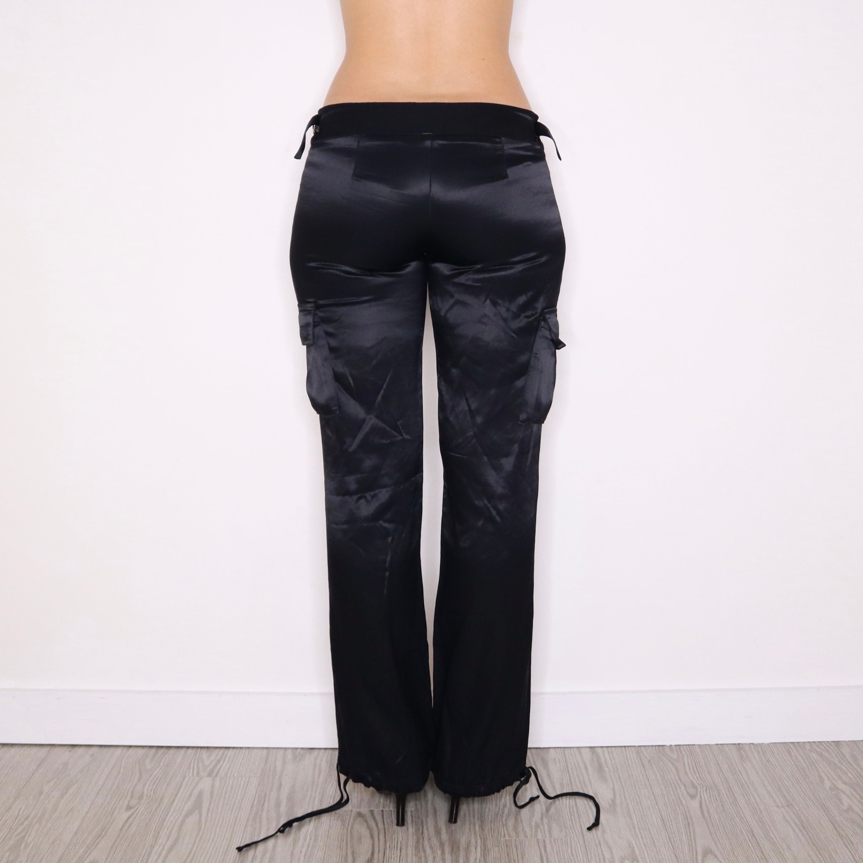 Y2K Black Satin Cargo Pants (S)