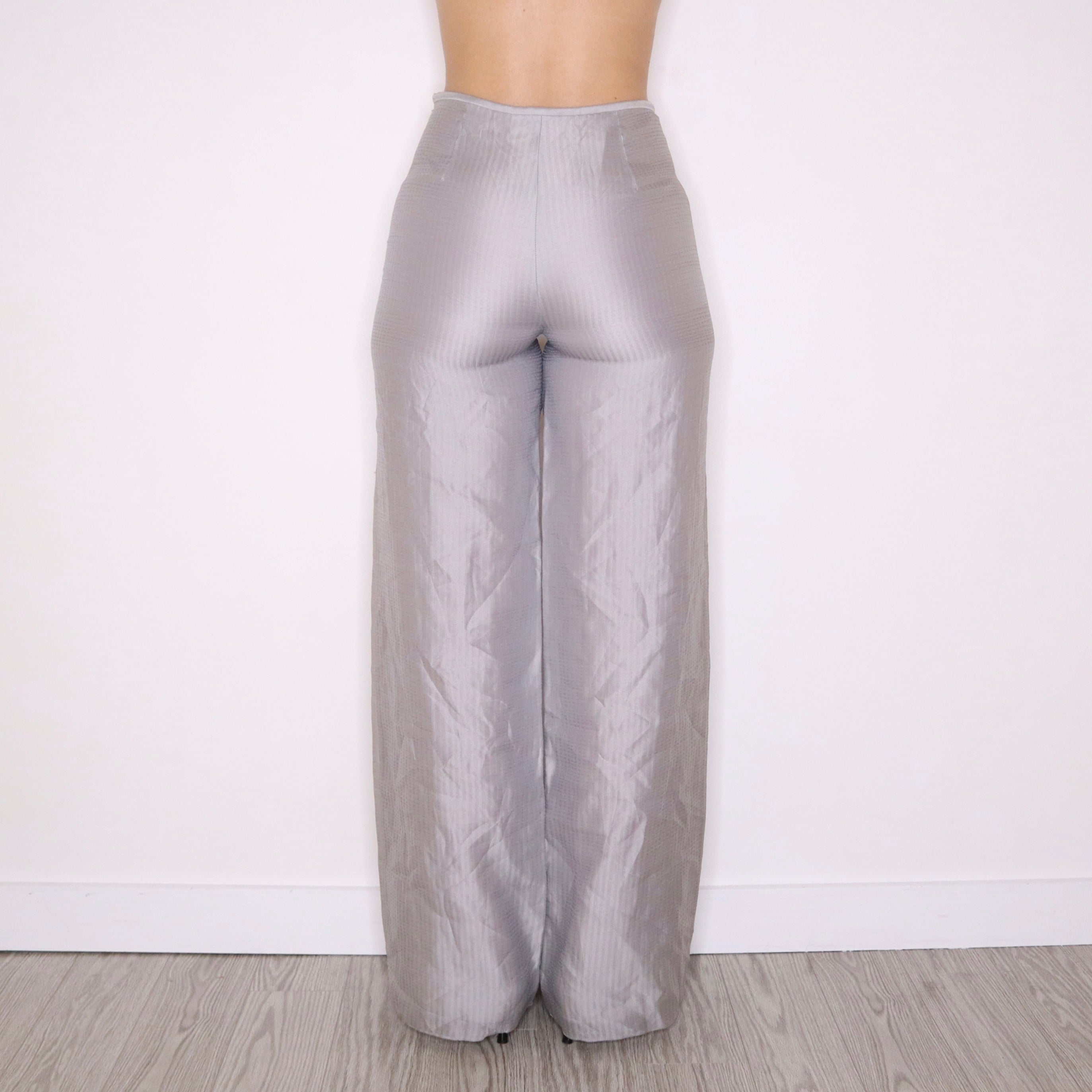 90s GIORGIO ARMANI Light Gray Striped Wide Leg Pants (S)