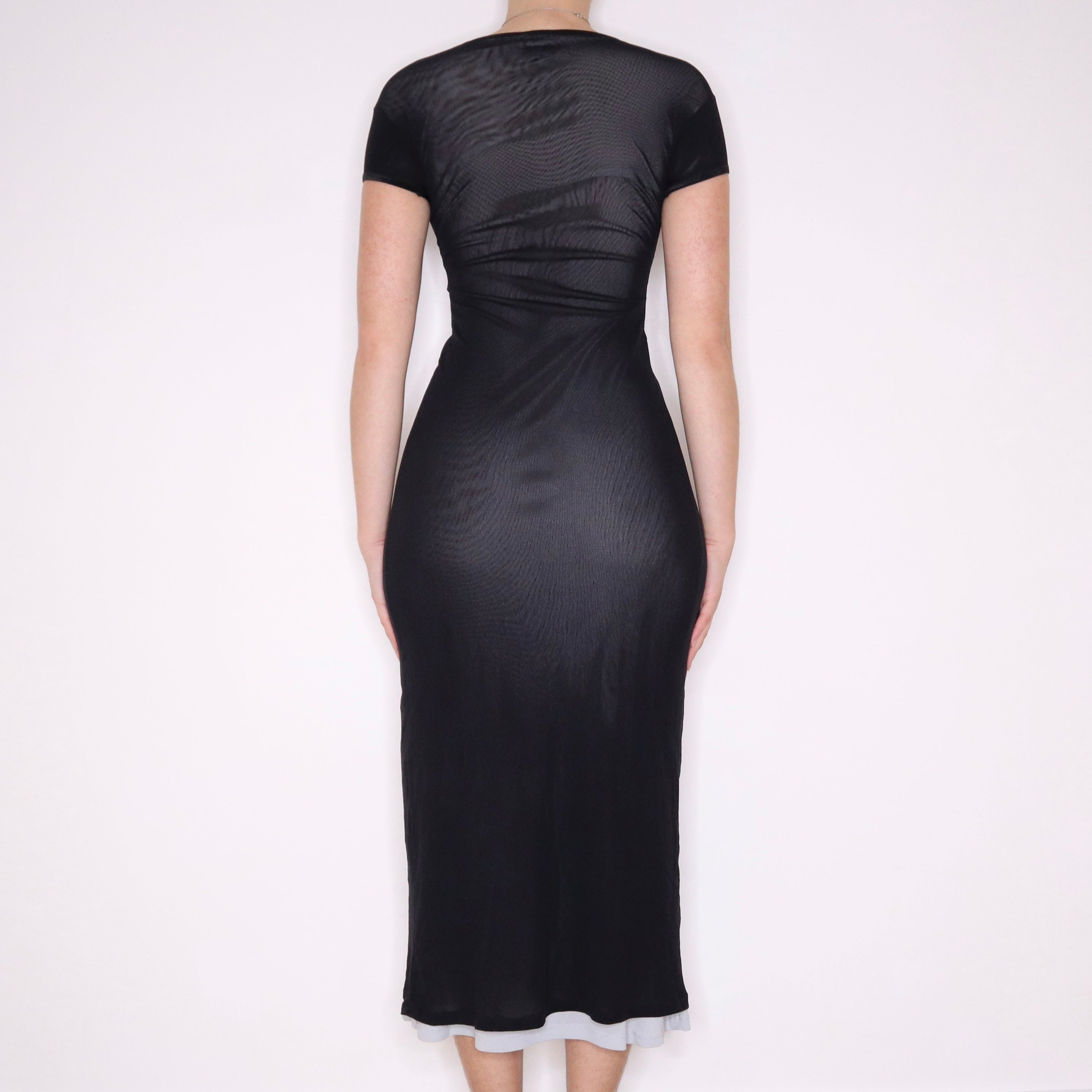 90s French Black Layered Mesh Maxi Dress (XS)