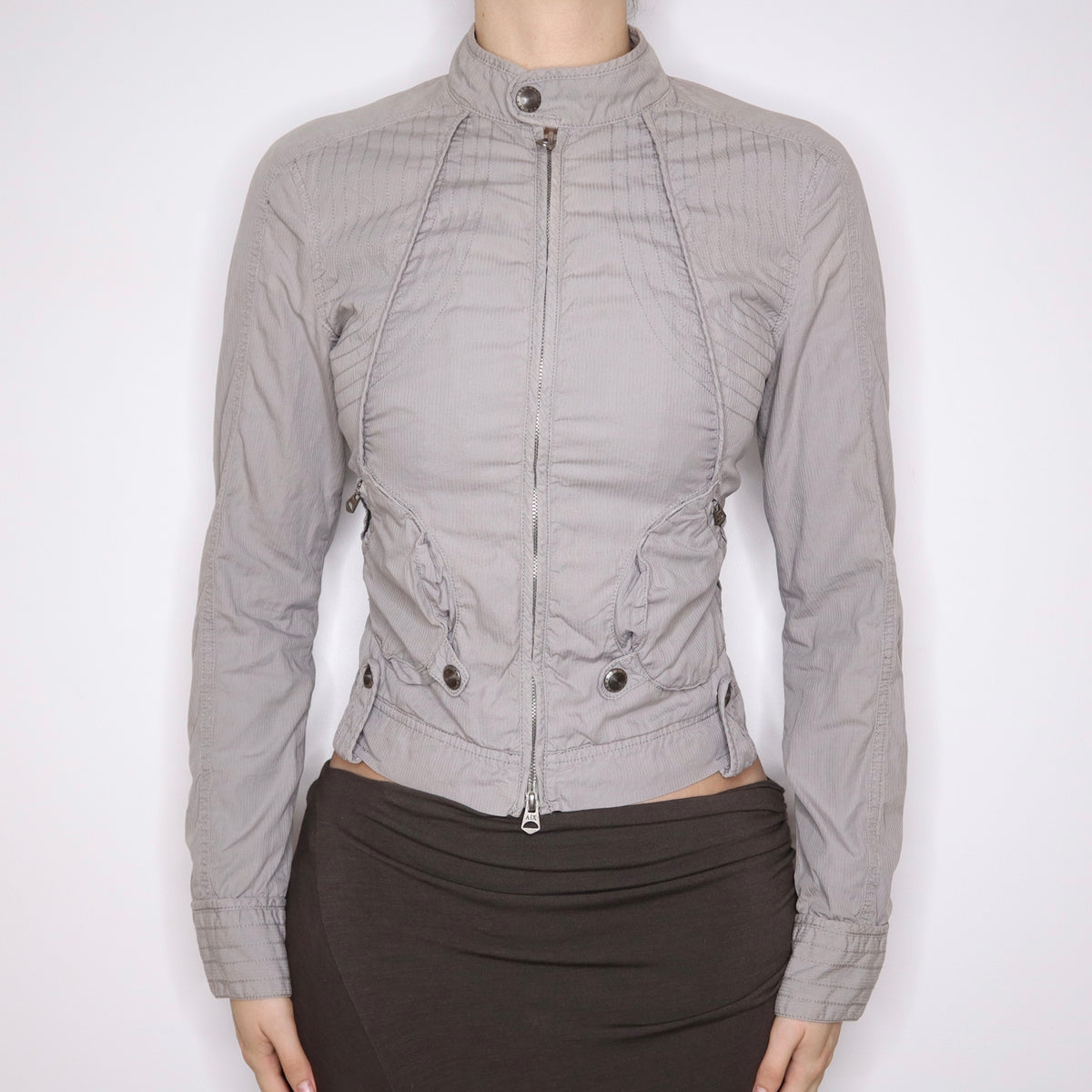 Y2K ARMANI EXCHANGE Light Grey Zip Up Buckle Jacket (S)