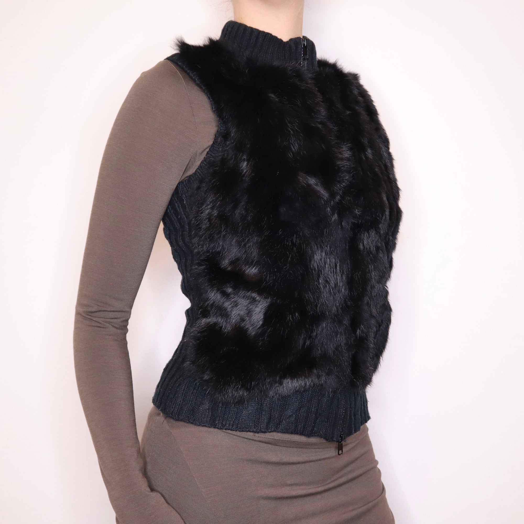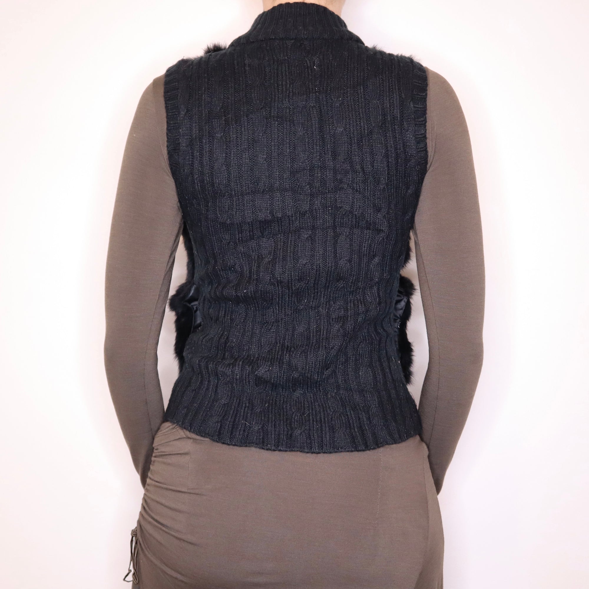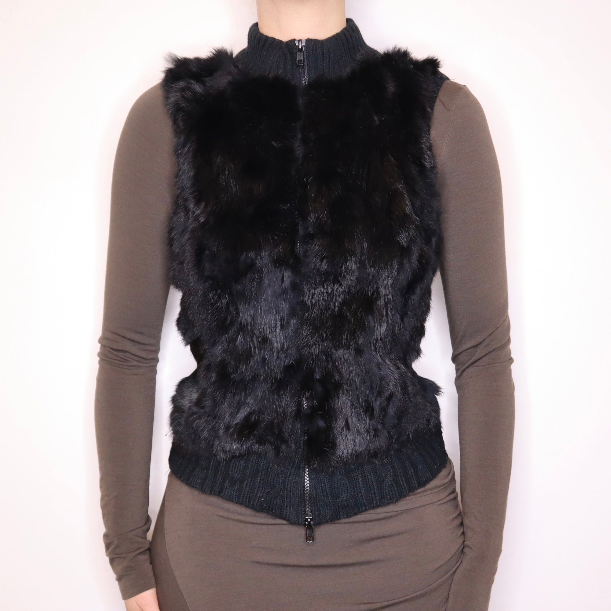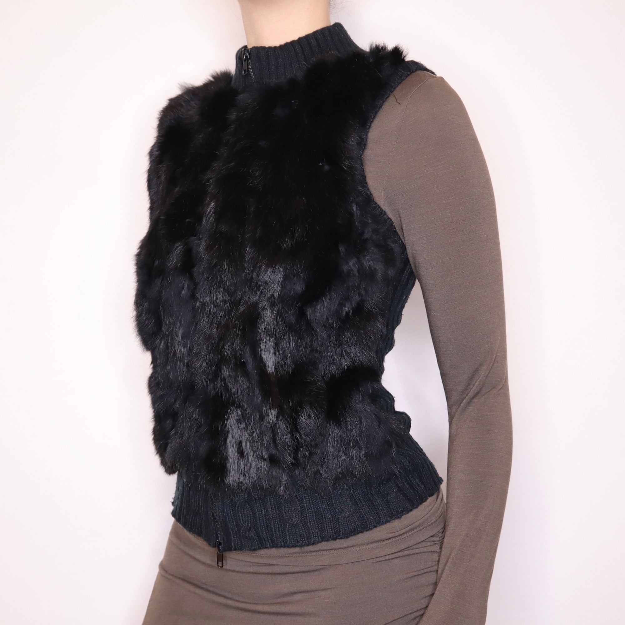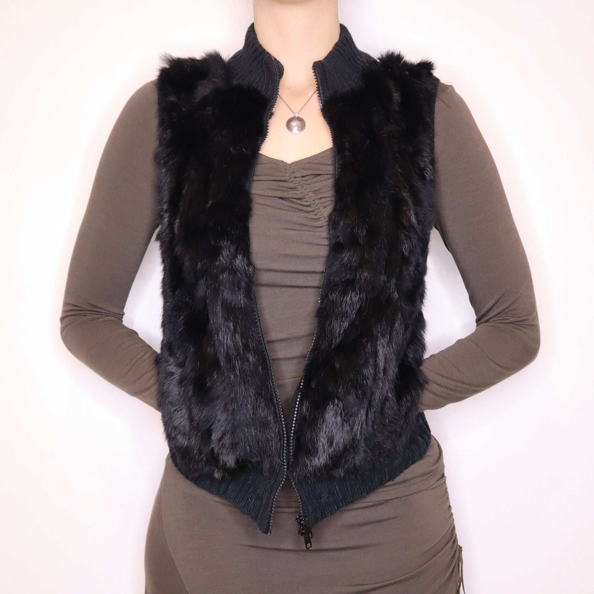 Y2K Black Rabbit Fur Zip Up Vest (S)