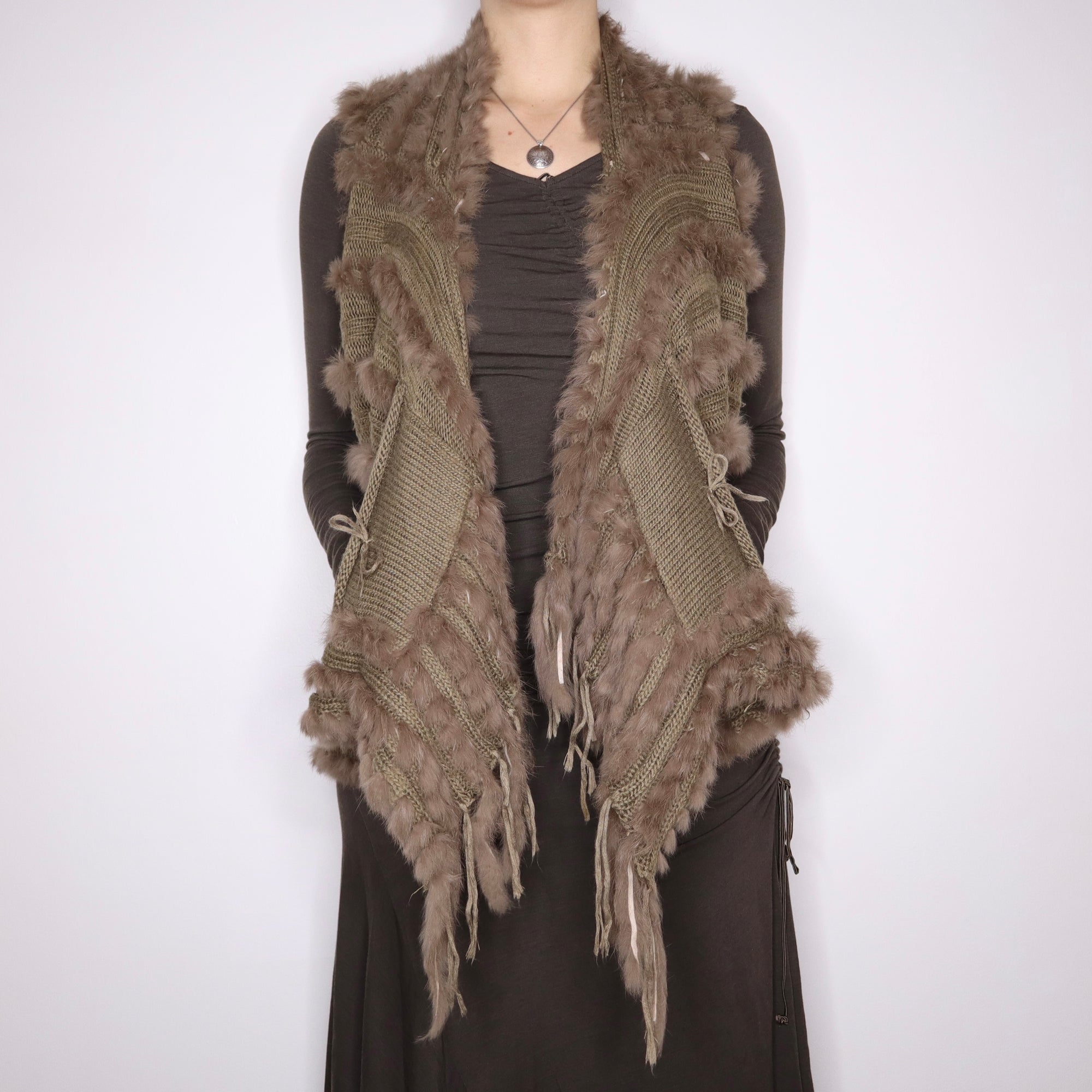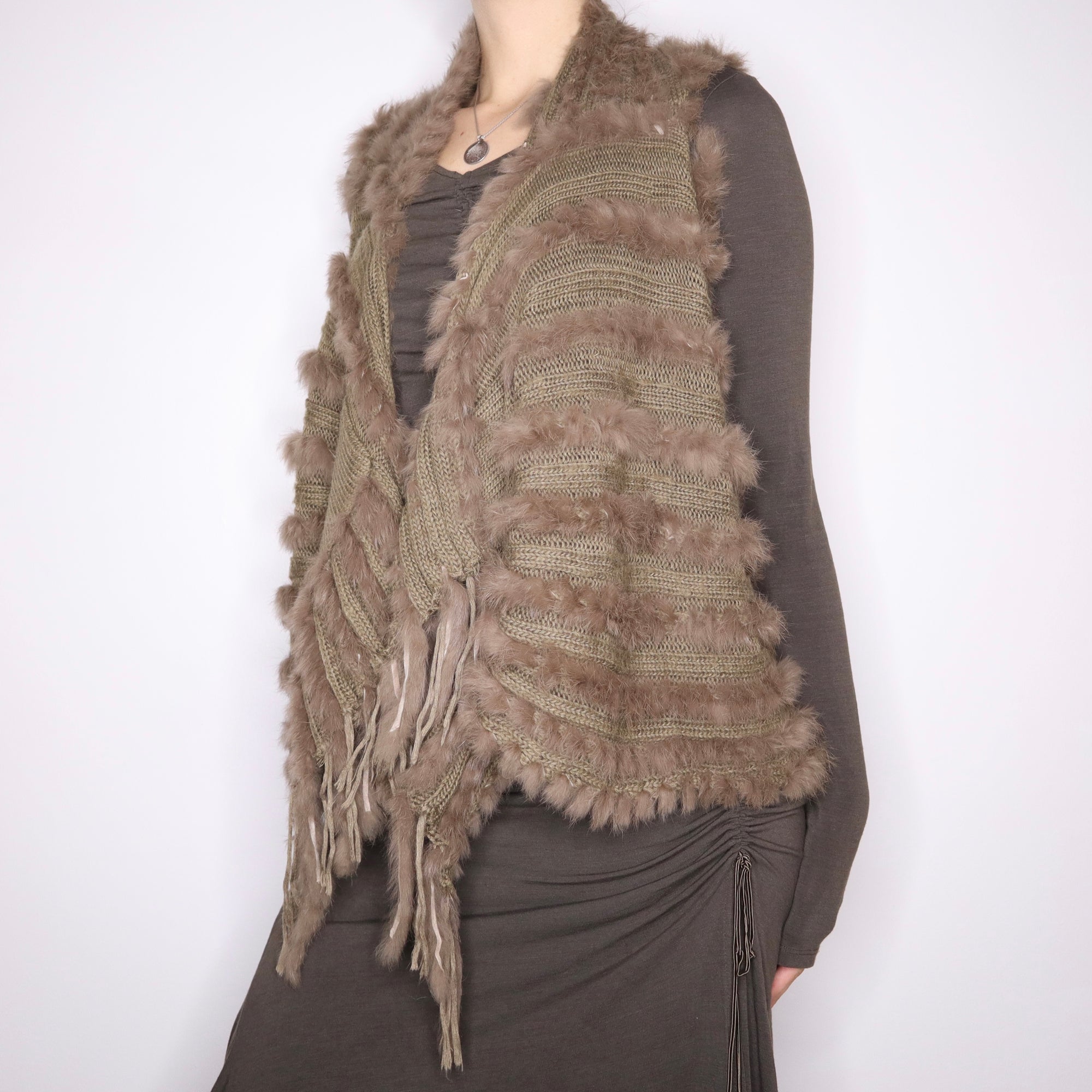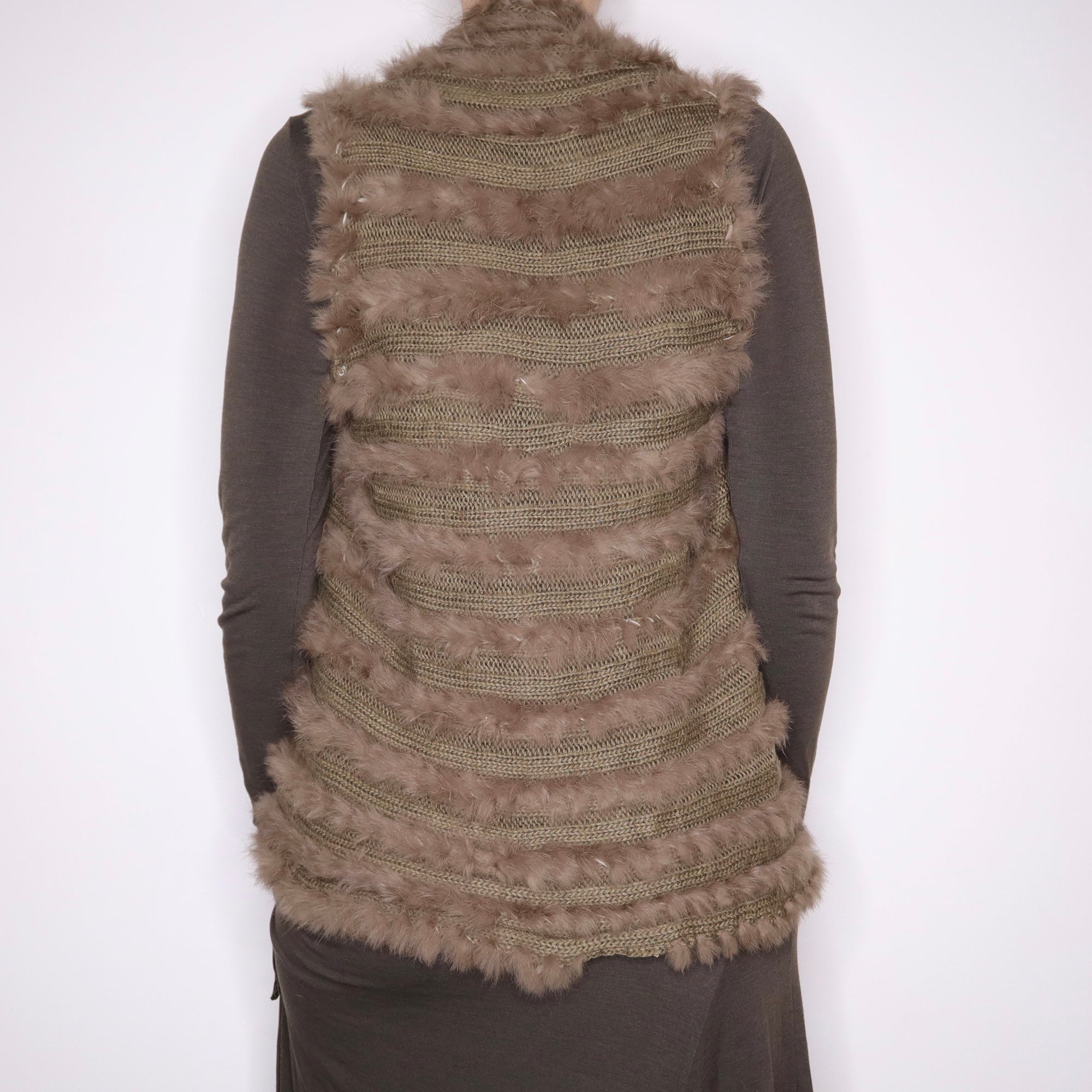 Y2K Brown Knit Rabbit Fur Vest (S/M/L)