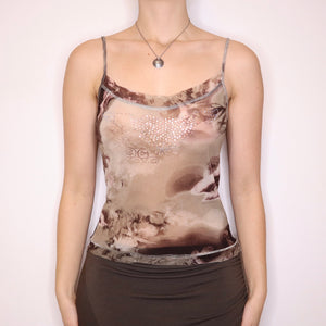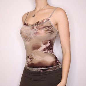 Y2K Italian Angel Diamanté Mesh Camisole (L)