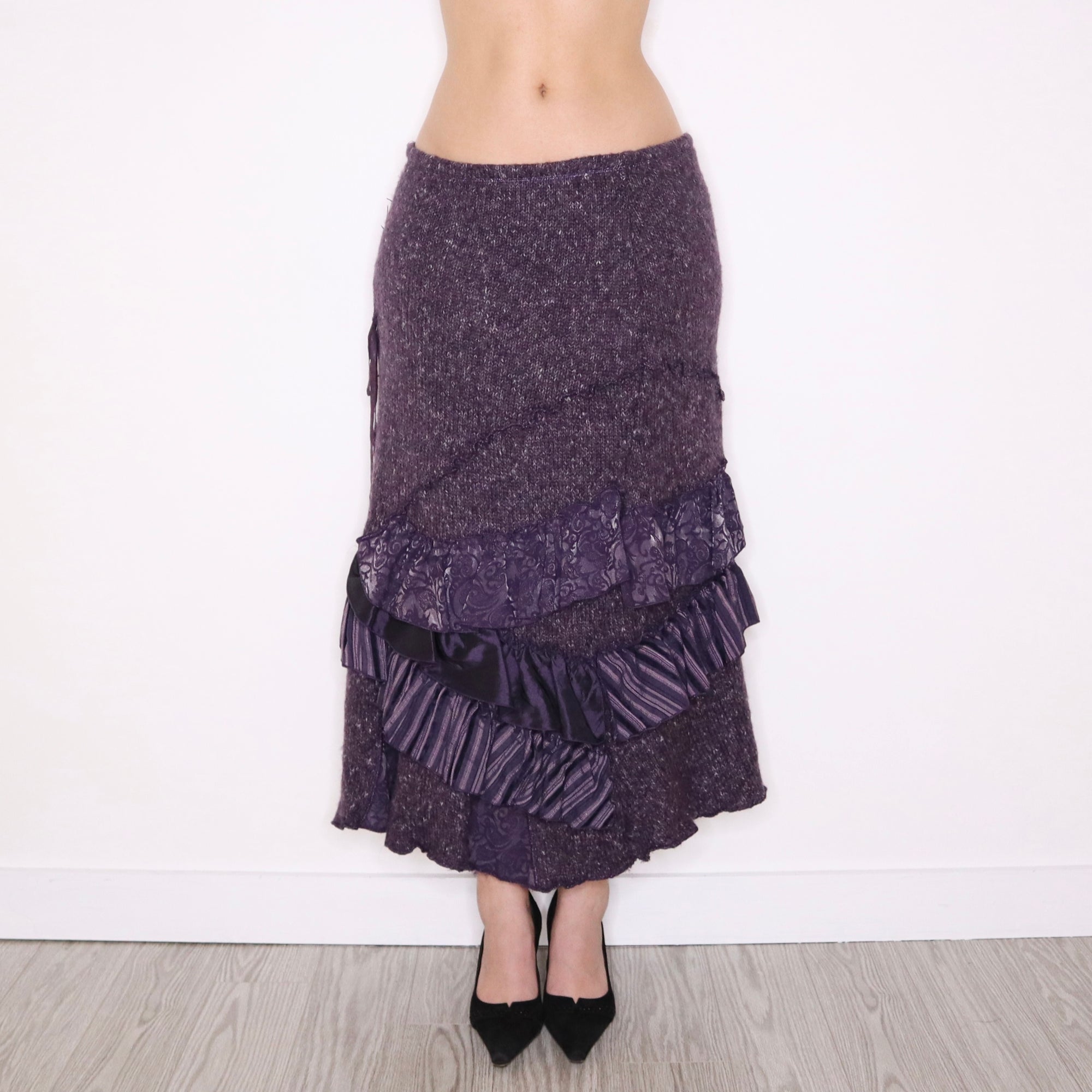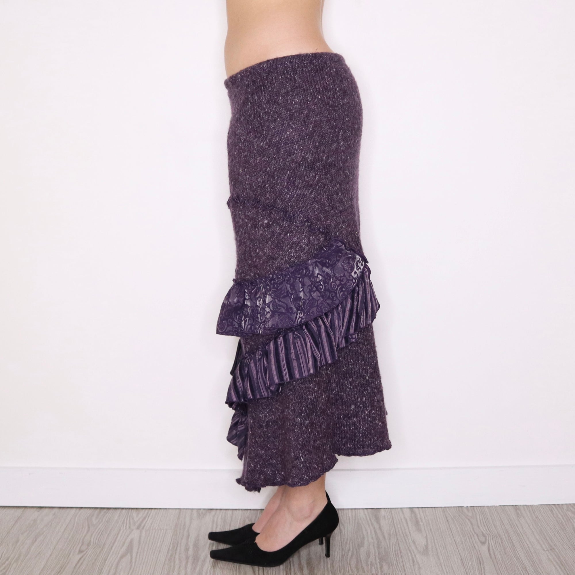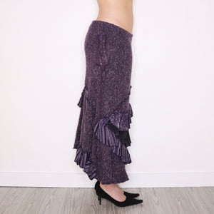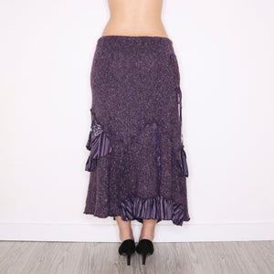 Y2K Purple Knit Boho Ruffle Maxi Skirt (L)