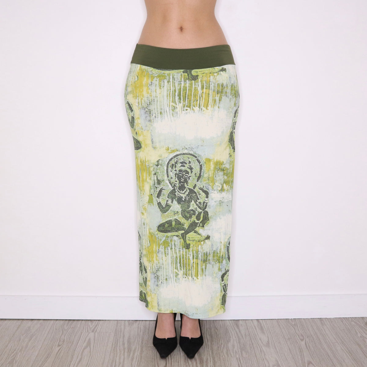 Y2K European Green Graphic Mesh Maxi Skirt (M)
