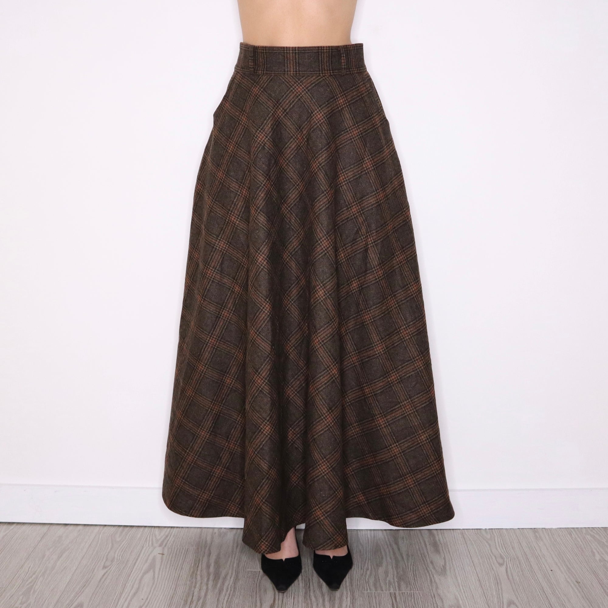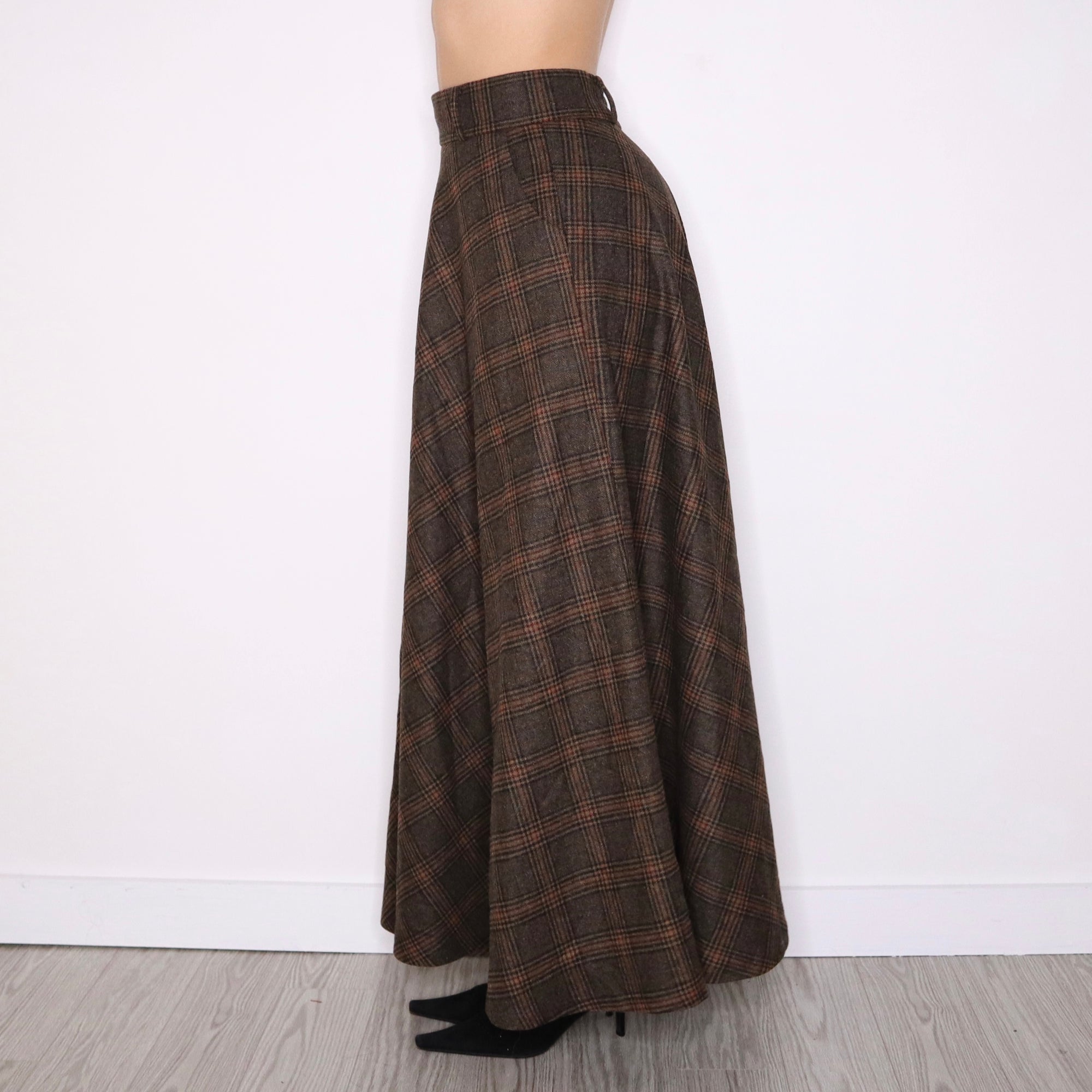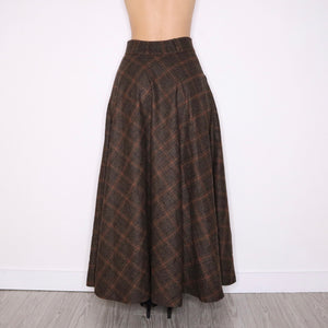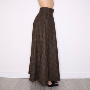 90s Brown Plaid Wool Maxi Skirt (S/M)
