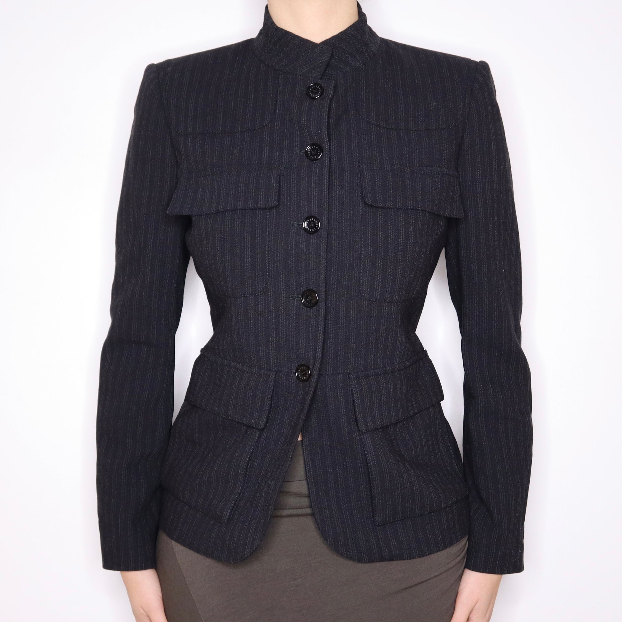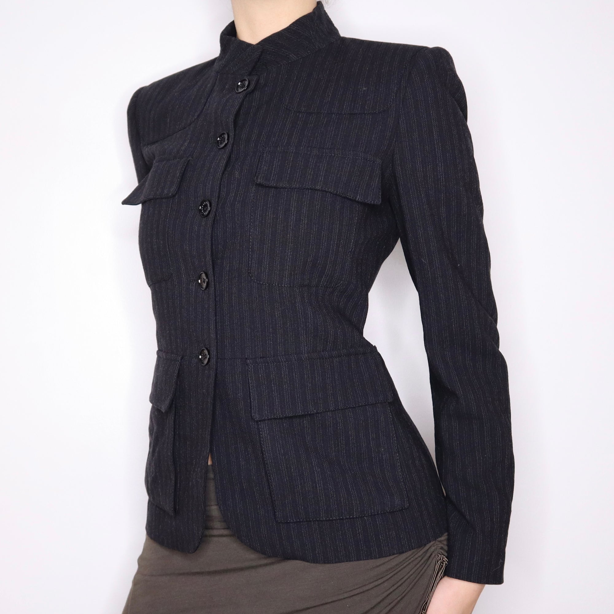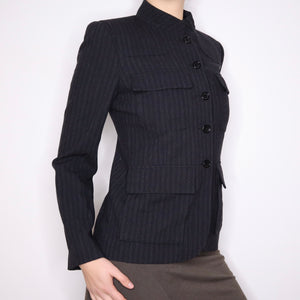 90s Italian Dark Wool Pinstripe Blazer (M)