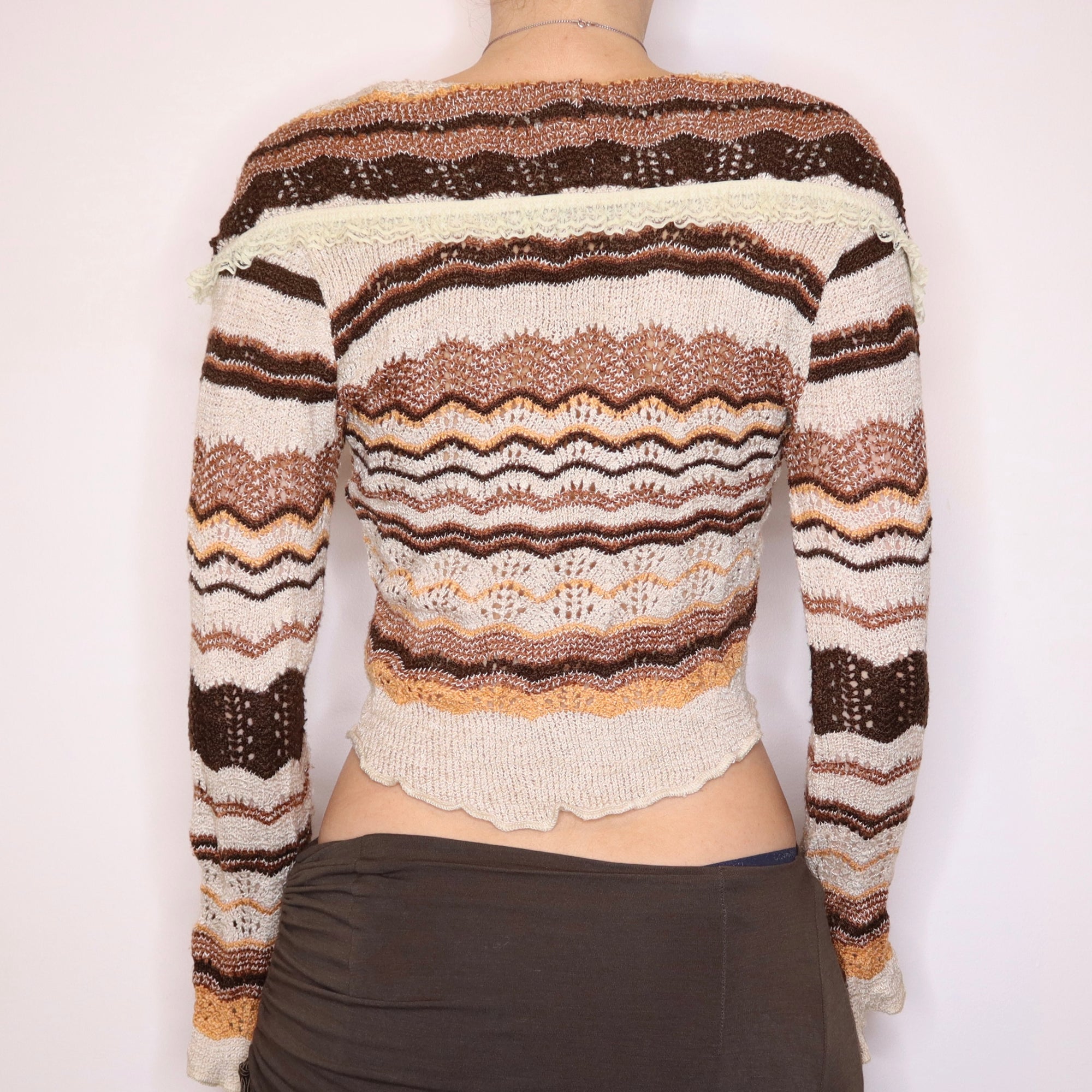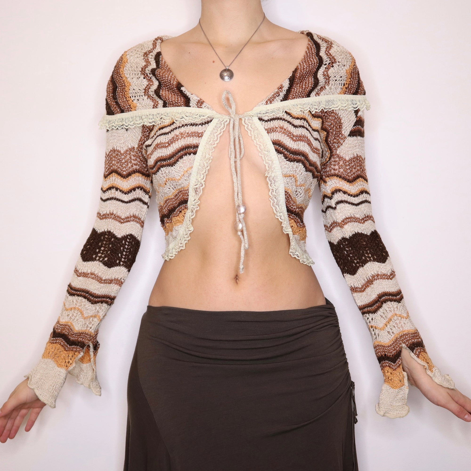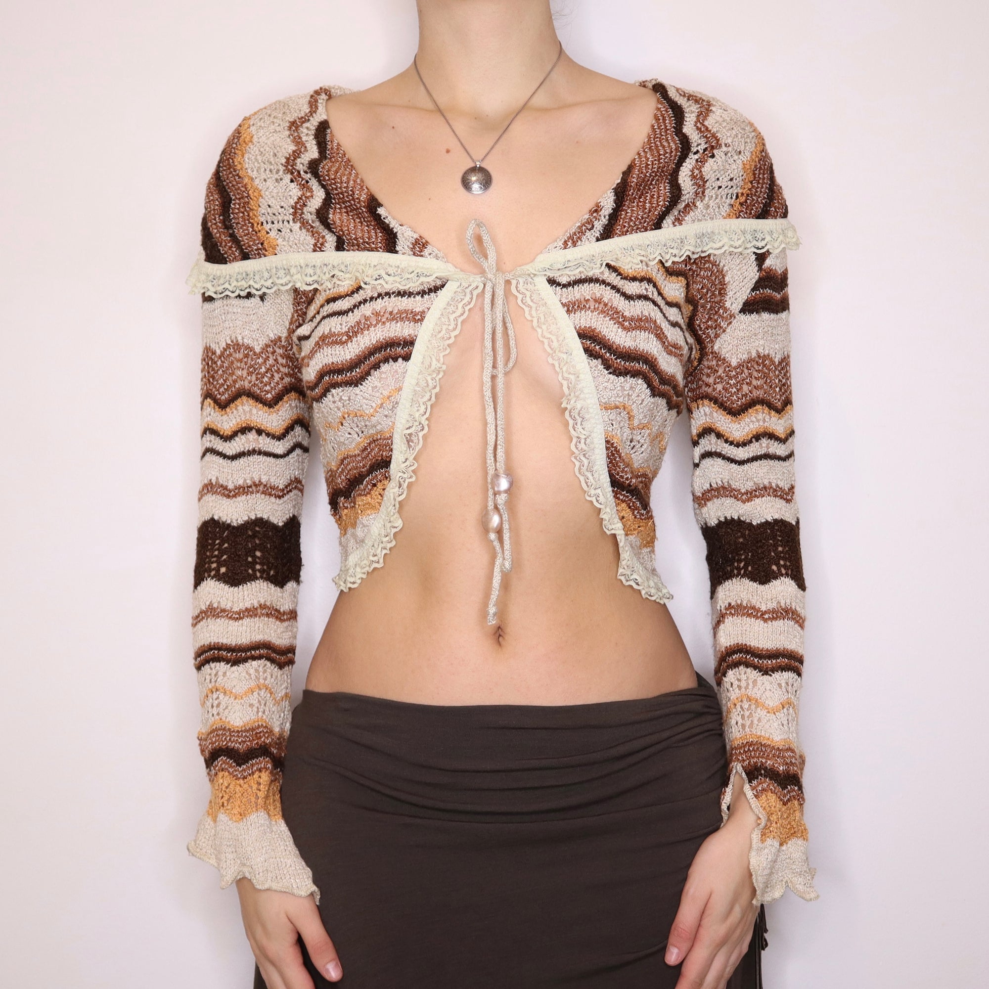 Y2K French Boho Striped Tie Up Cardigan (M)