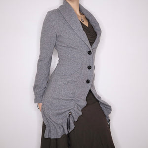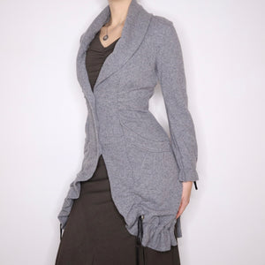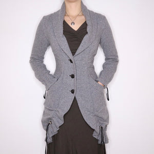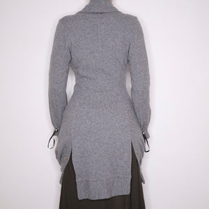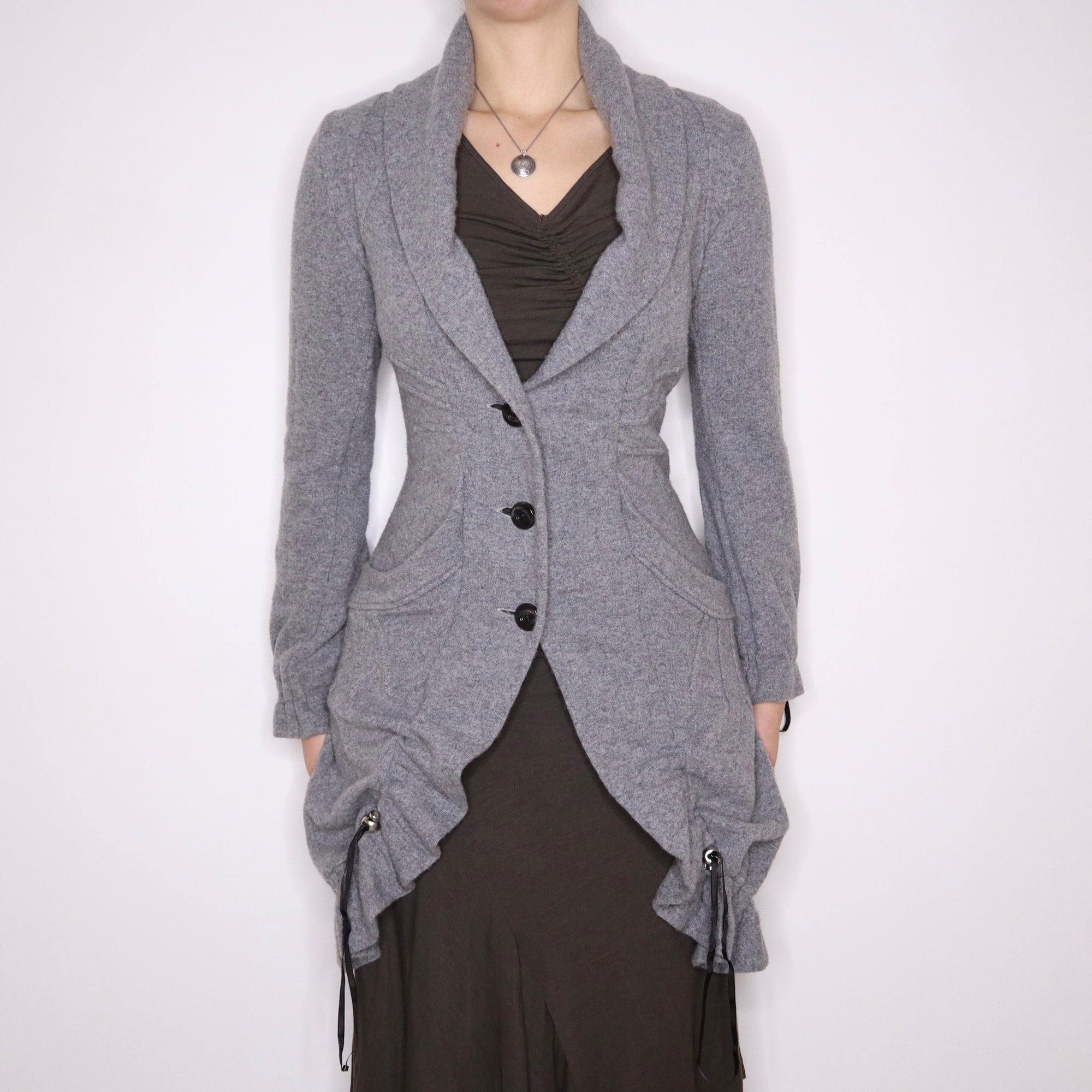 Model is 5’9” and a size S to M. This cardigan fits well on her.
