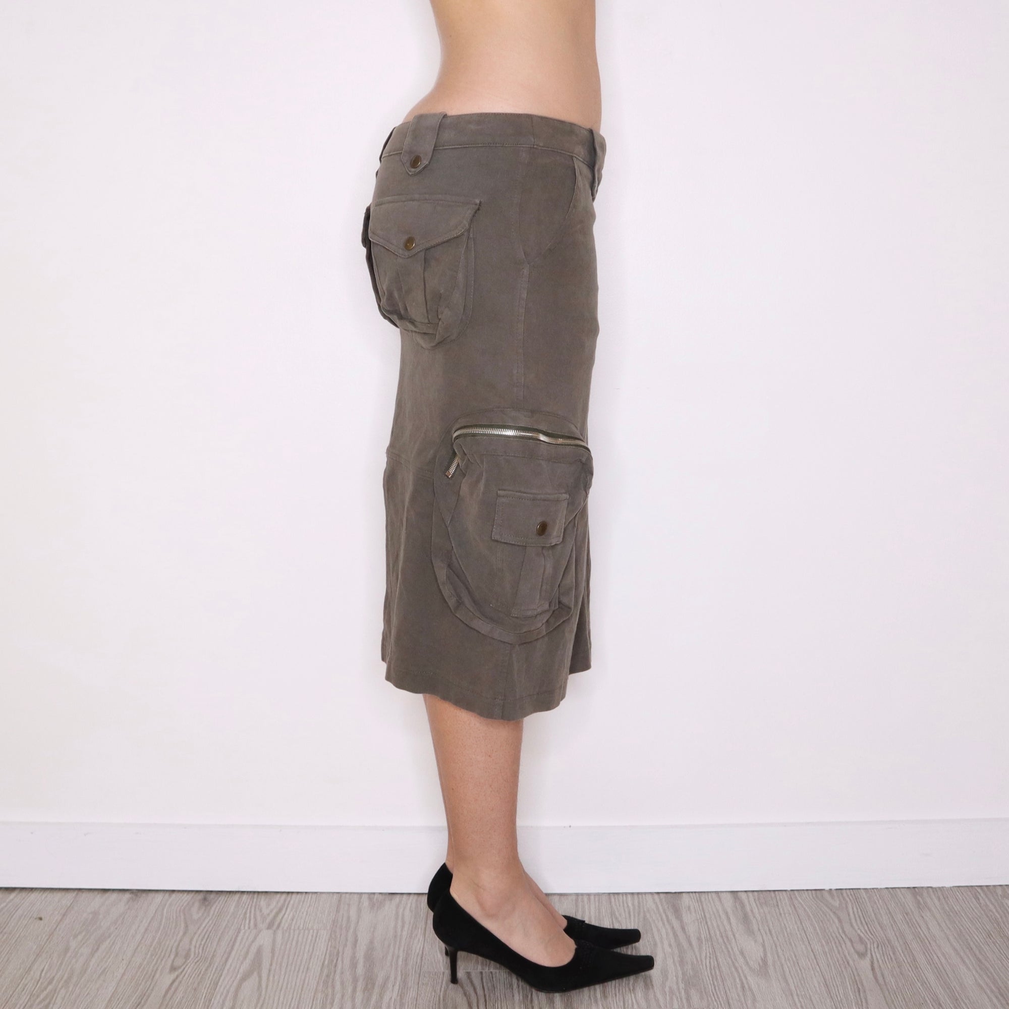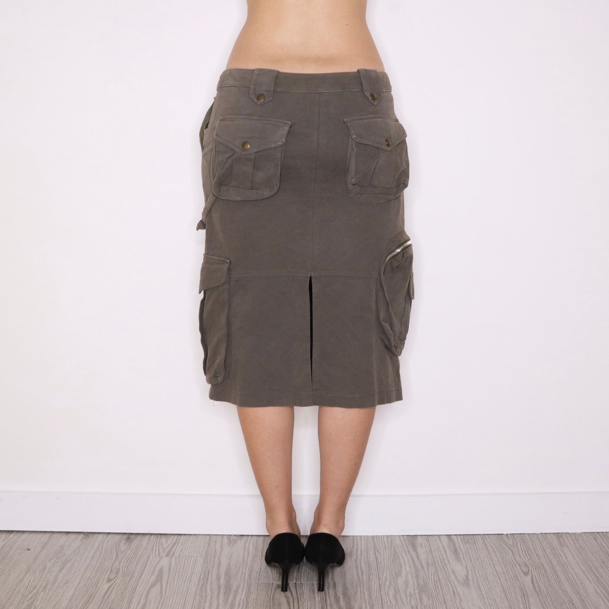 Y2K Italian Khaki Green Cargo Midi Skirt (M)