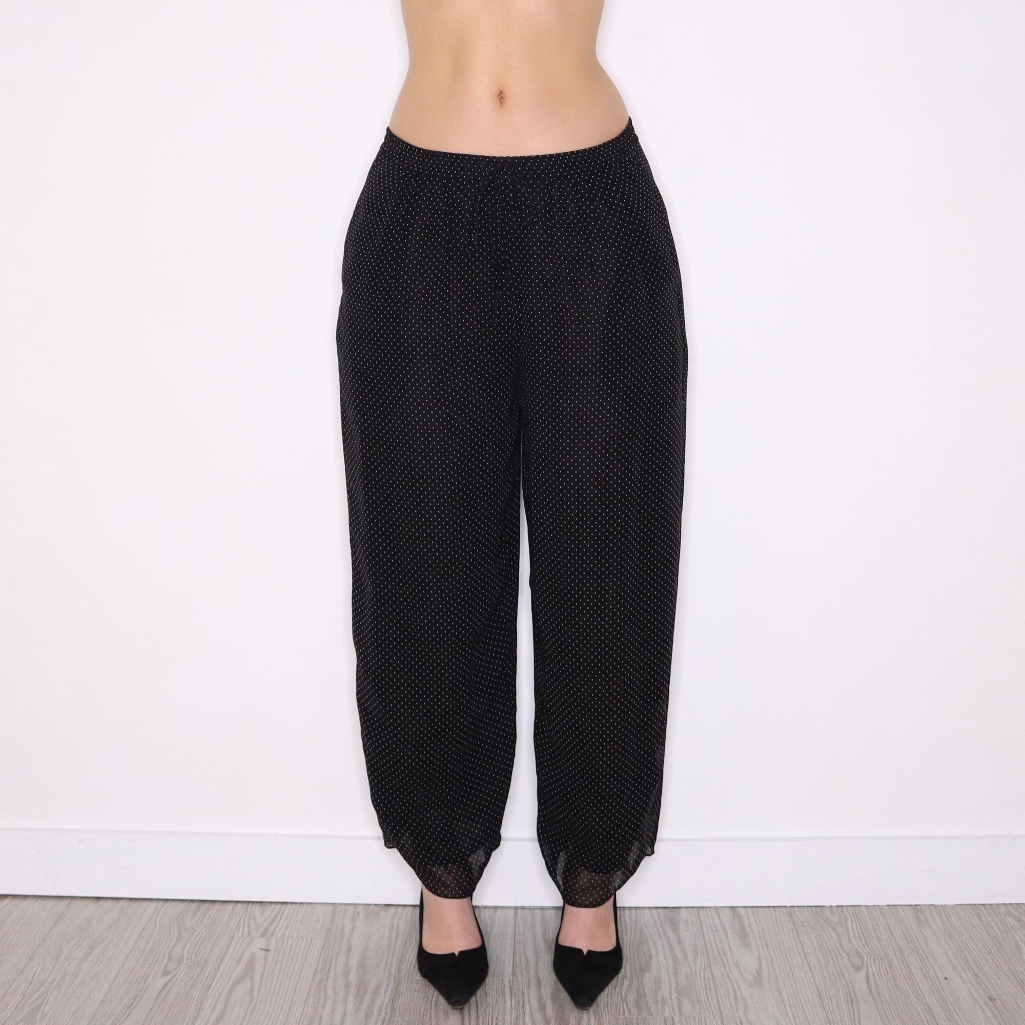 90s DKNY Polka Dot Chiffon Wide Leg Pants (S)