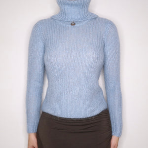 90s RALPH LAUREN Baby Blue Mohair Turtleneck (XS/S)