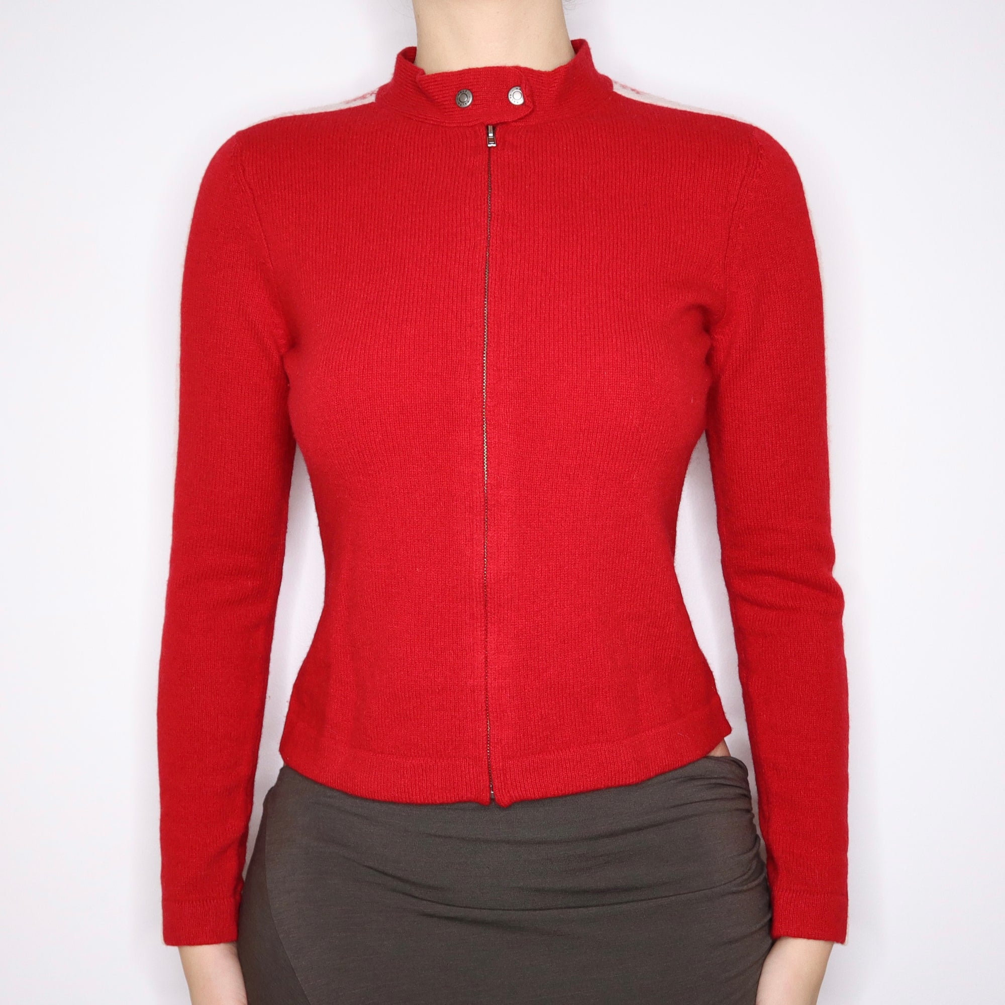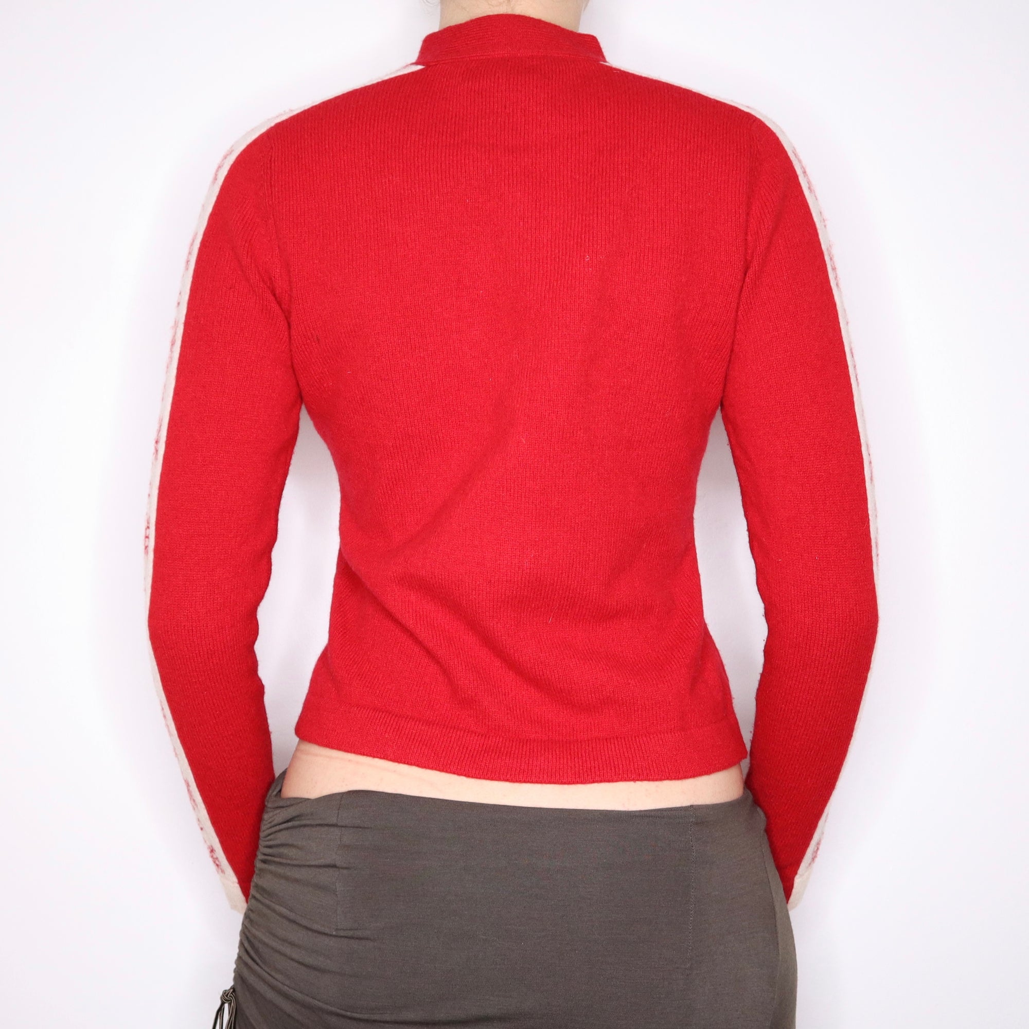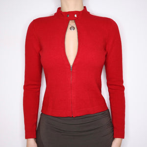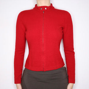 90s RALPH LAUREN Red Lambswool Zip Up Sweater (S/M)