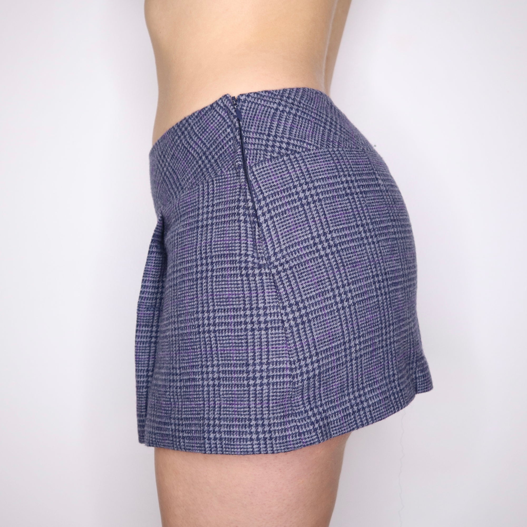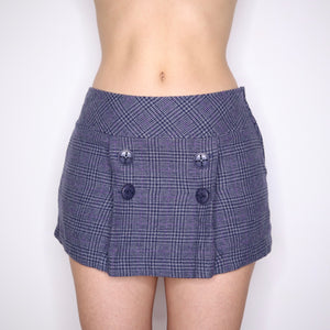 Y2K Blue Wool Tweed Button Mini Skirt (S)