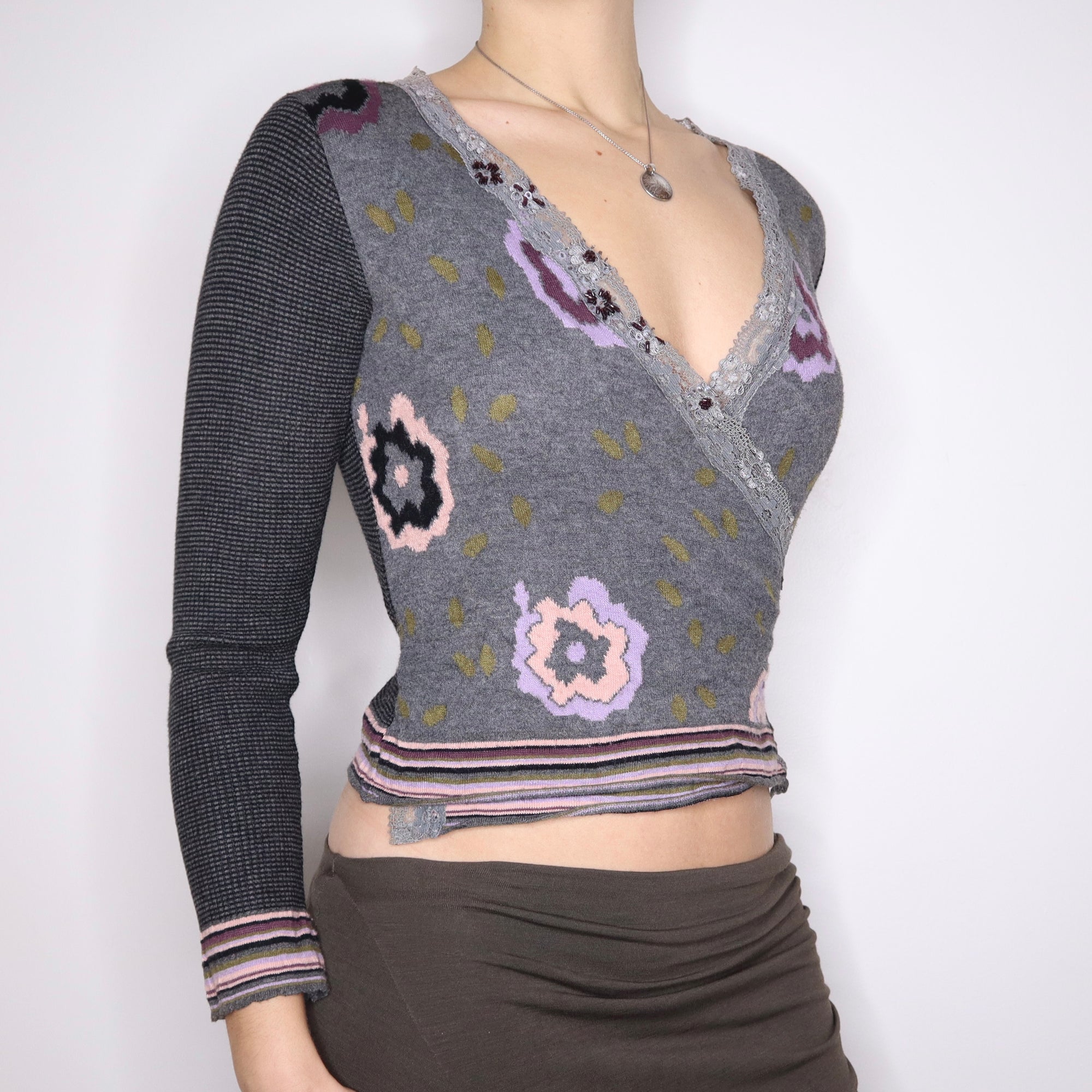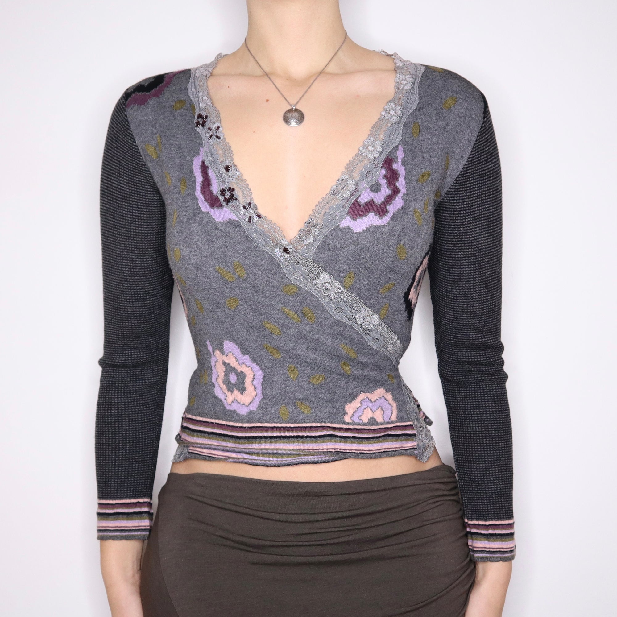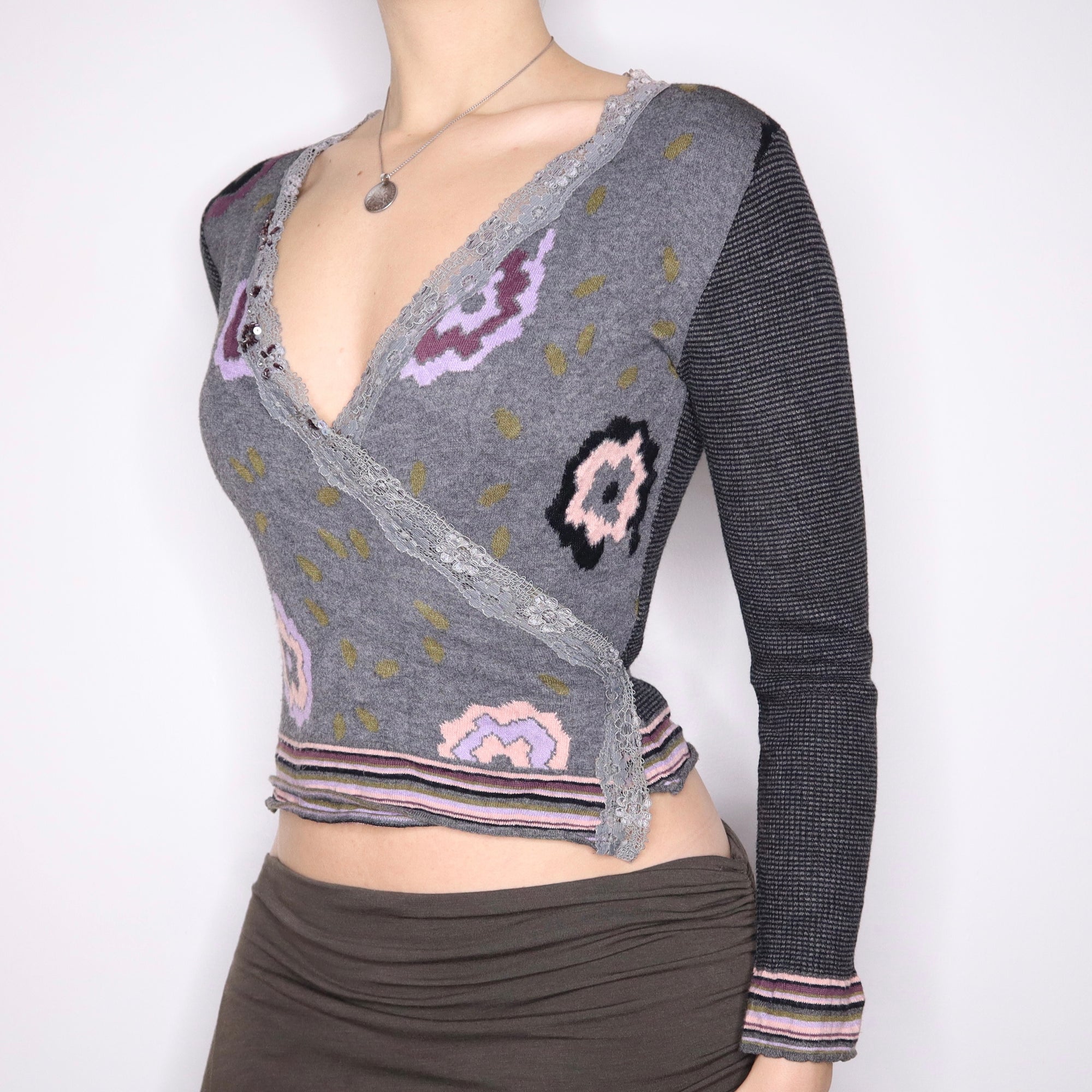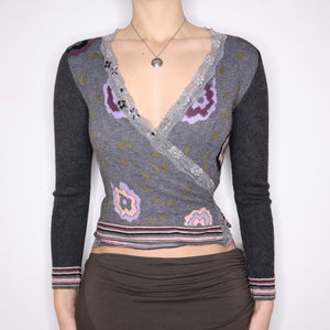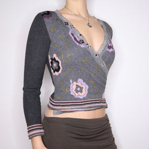 Y2K Italian Funky Lace Trim Wrap Cardigan (S/M)