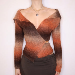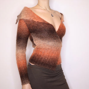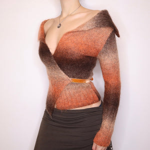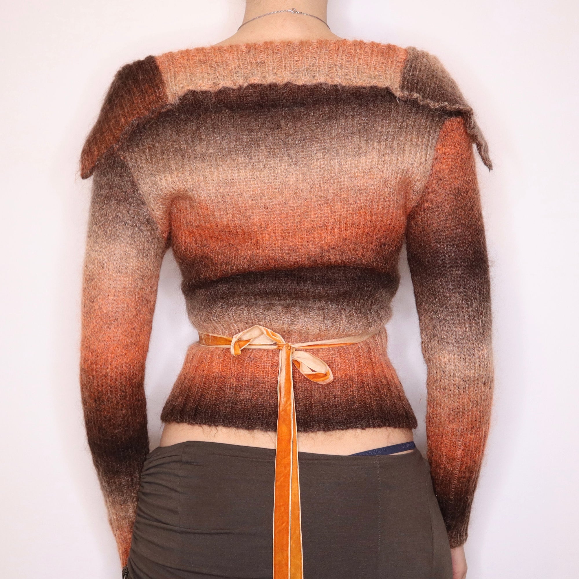 Y2K Orange Ombré Mohair Wrap Sweater (S)