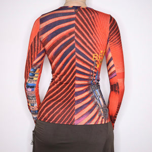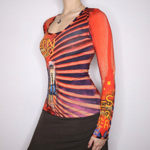 Y2K SAVE THE QUEEN Orange Graphic Long Sleeve Top (S)