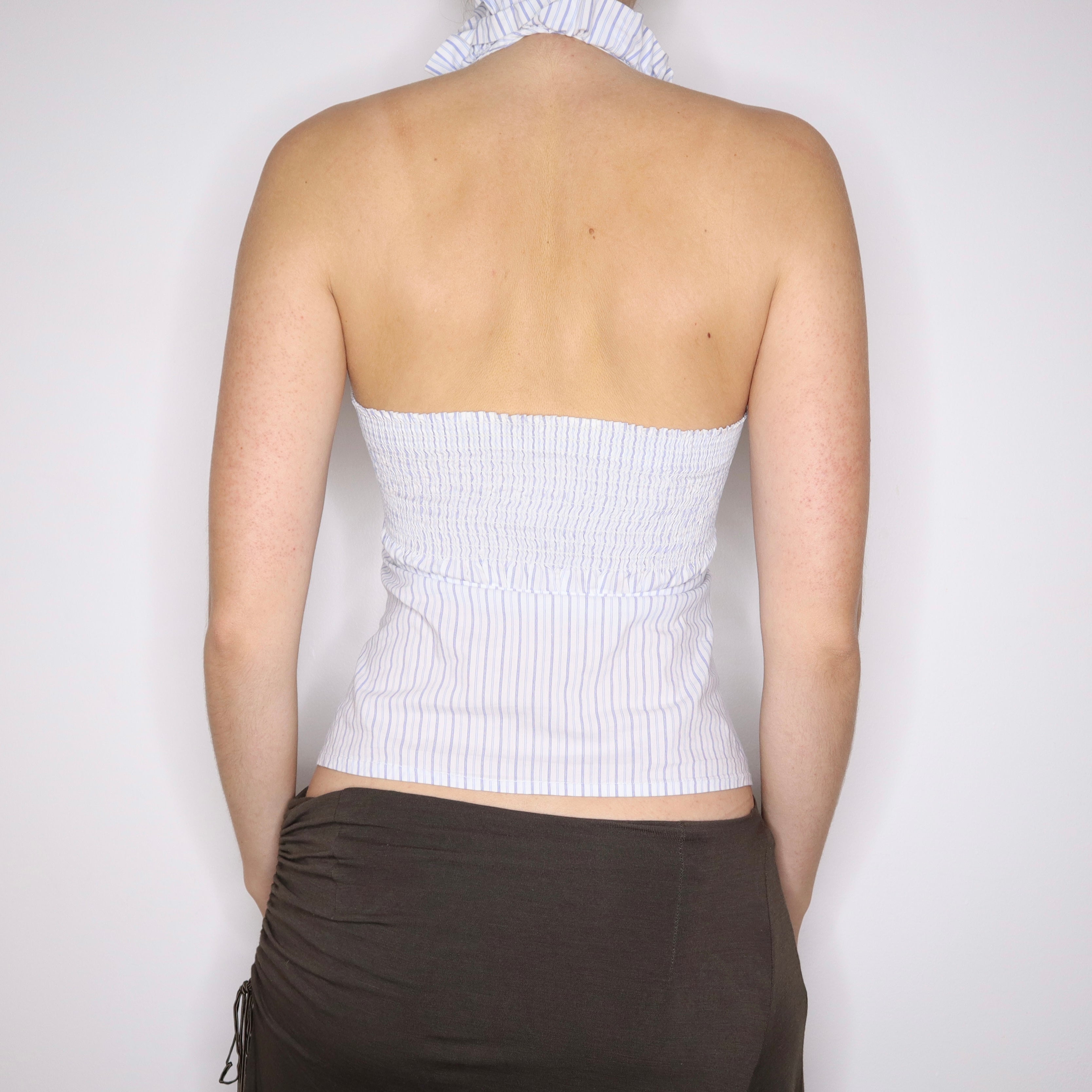 Y2K Italian Pinstripe Ruffle Halter Top (S)