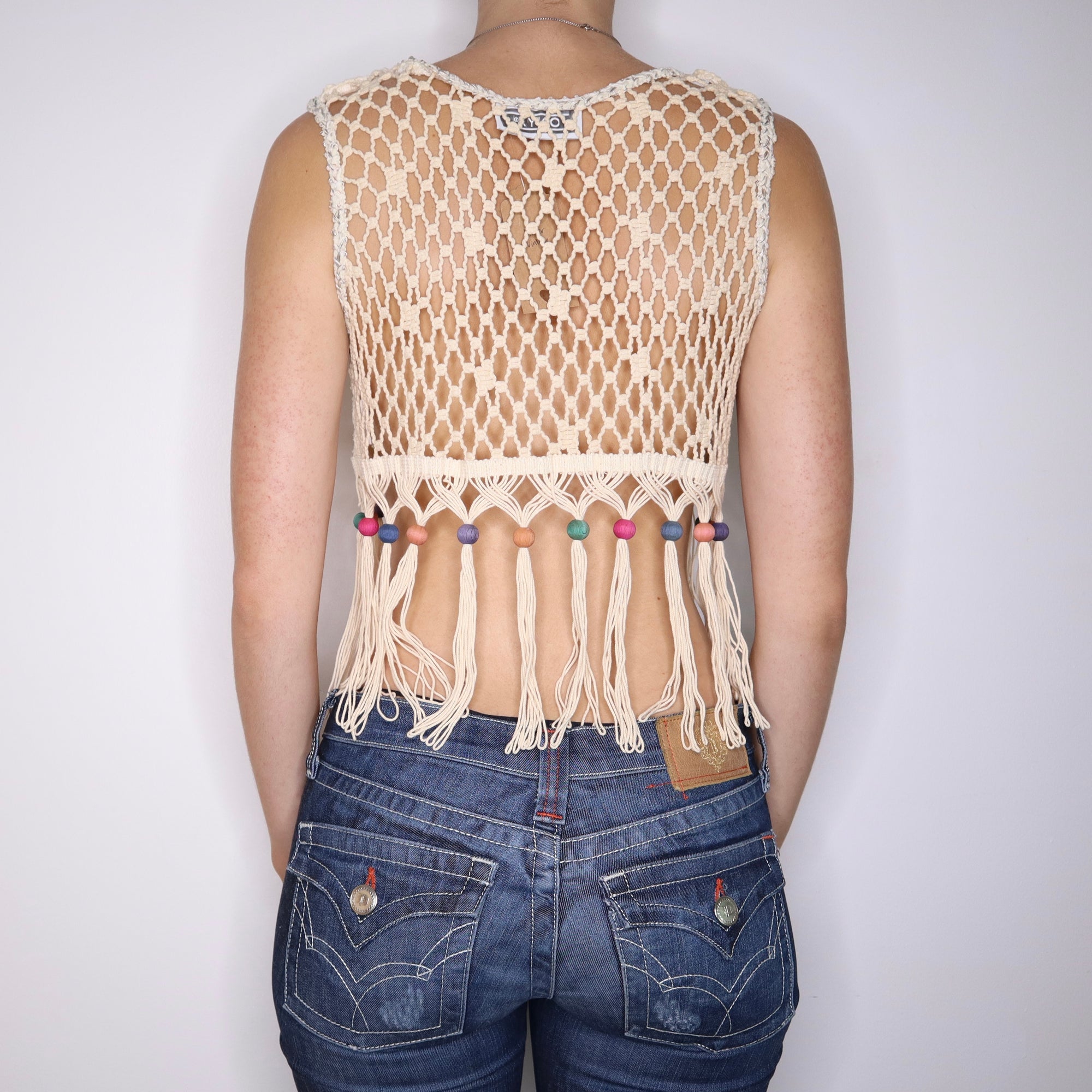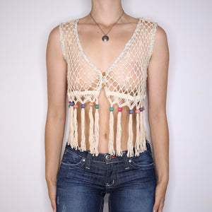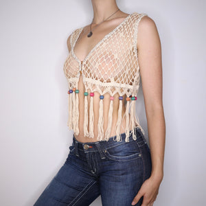 Model is 5’9” and a size S to M. This vest fits loose on her.