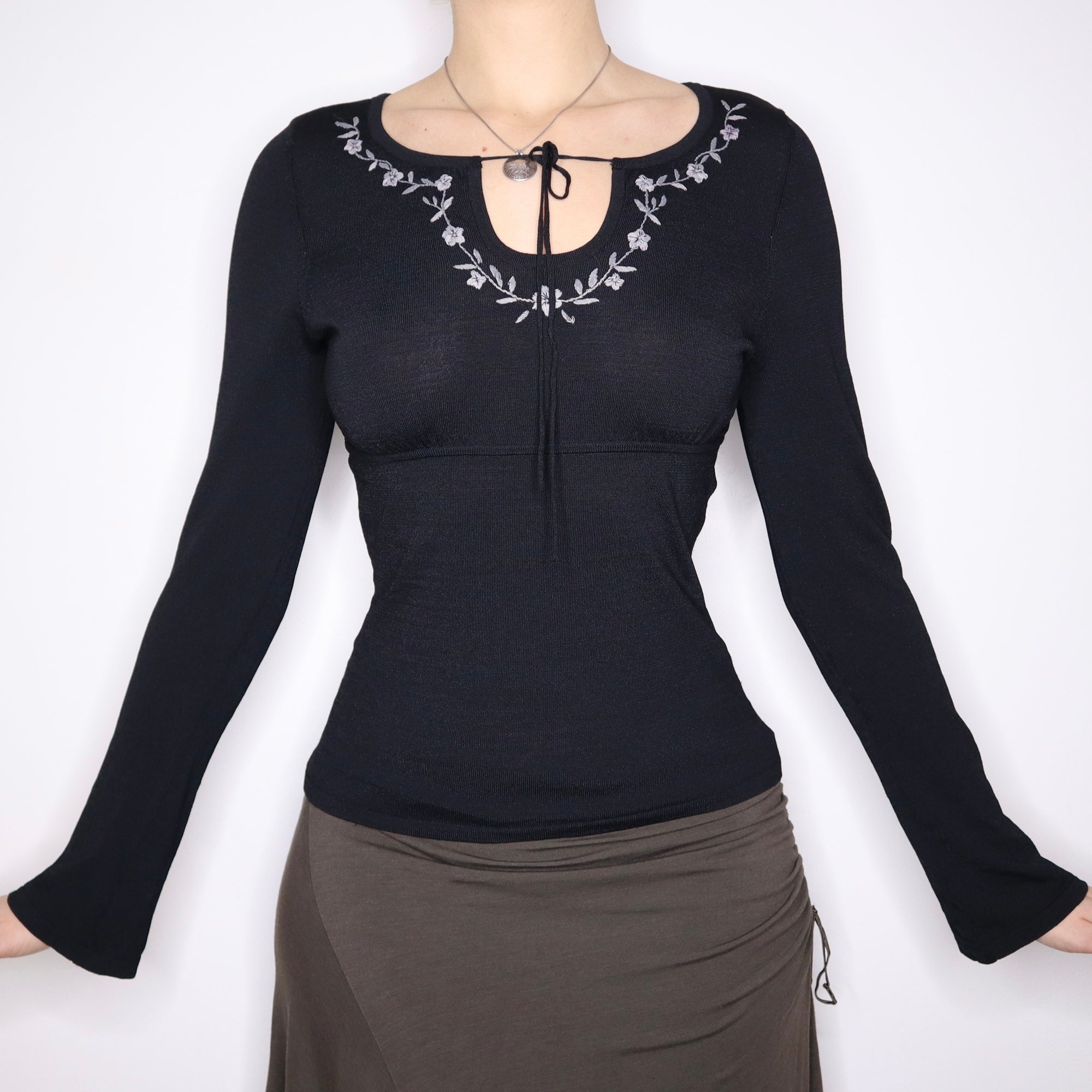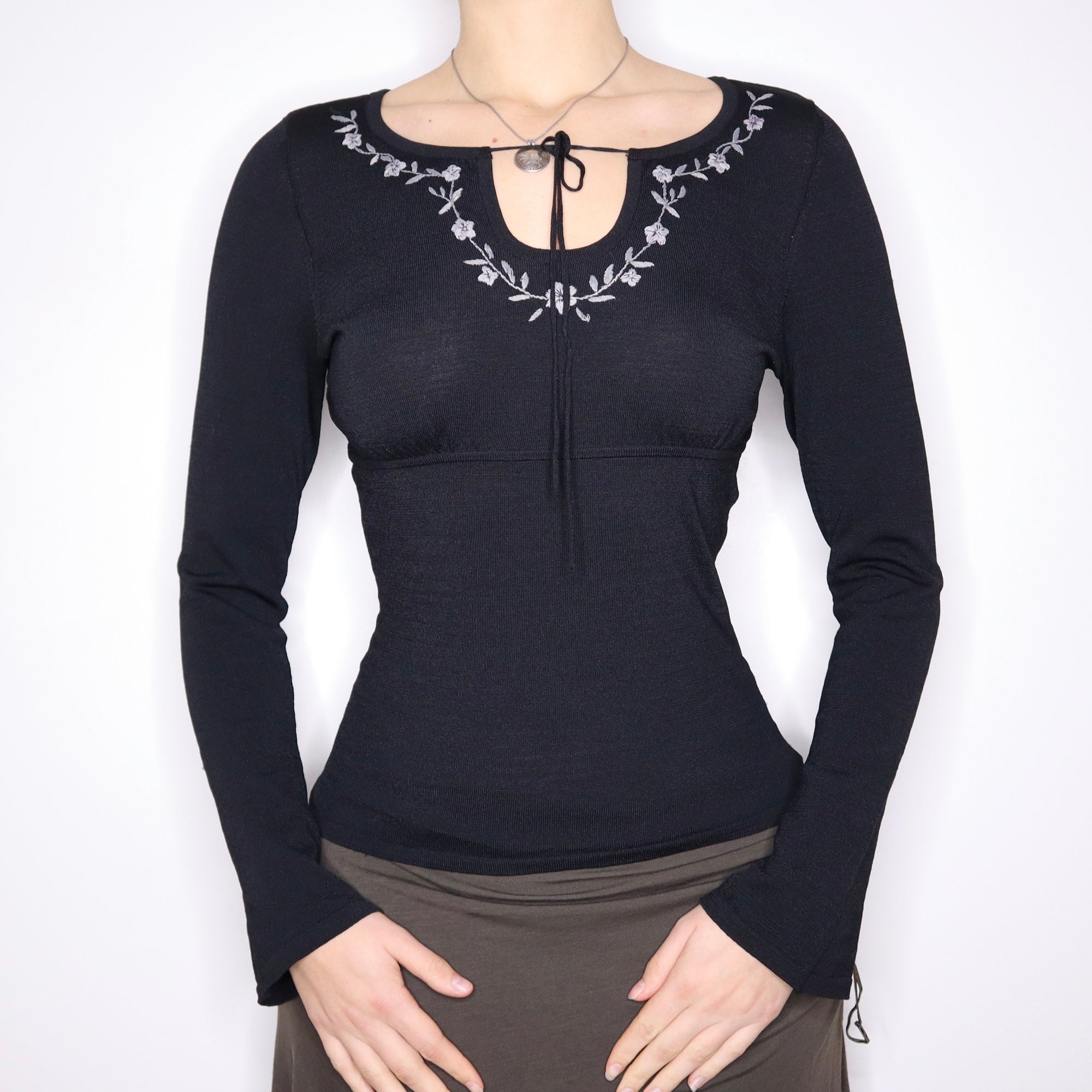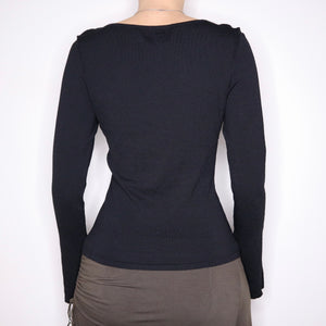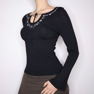 Y2K Black Boho Milkmaid Long Sleeve Top (M)