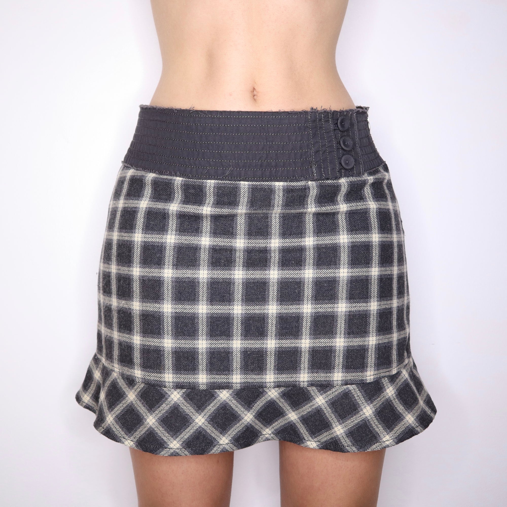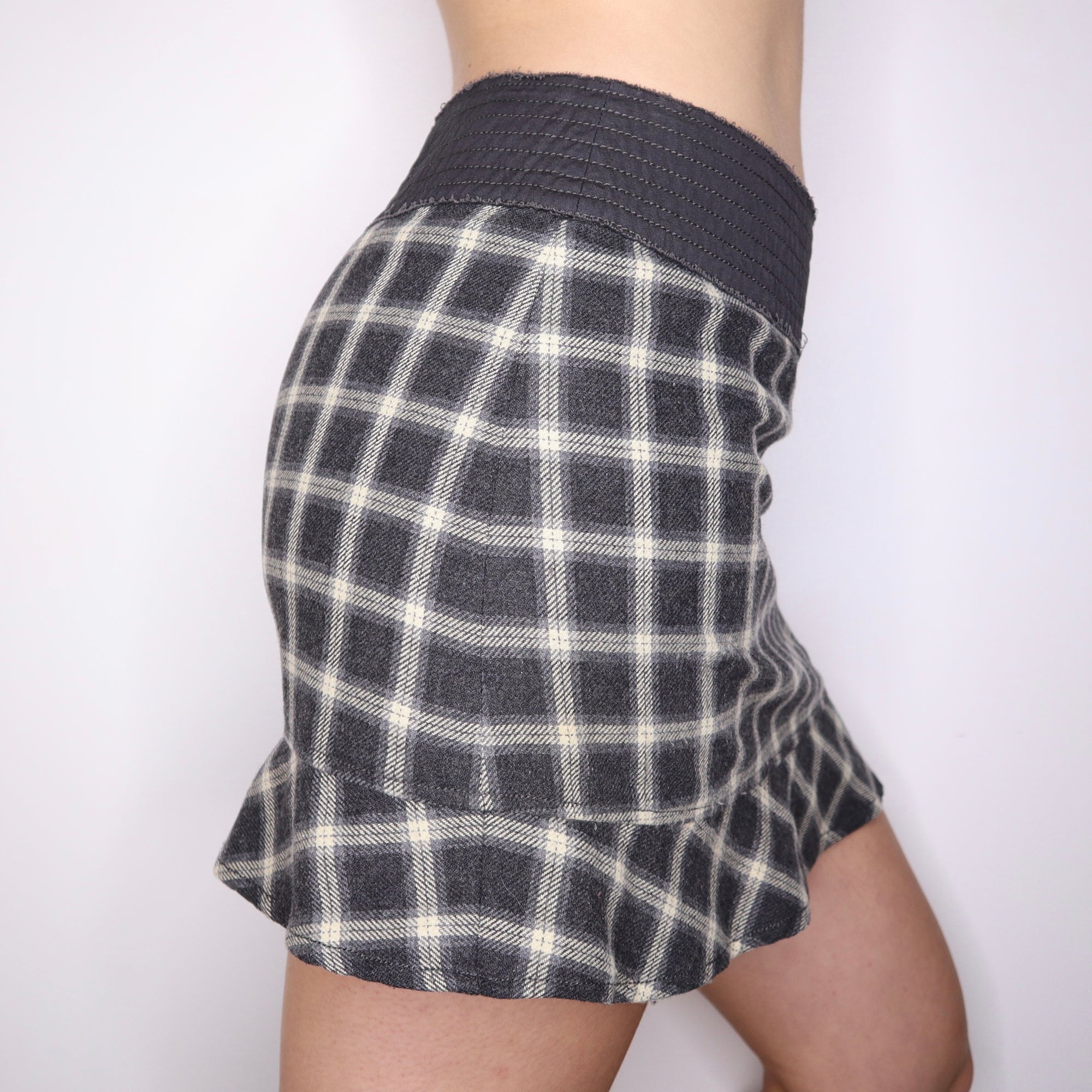 Y2K Gray Plaid Wool Mini Skirt (S)