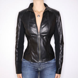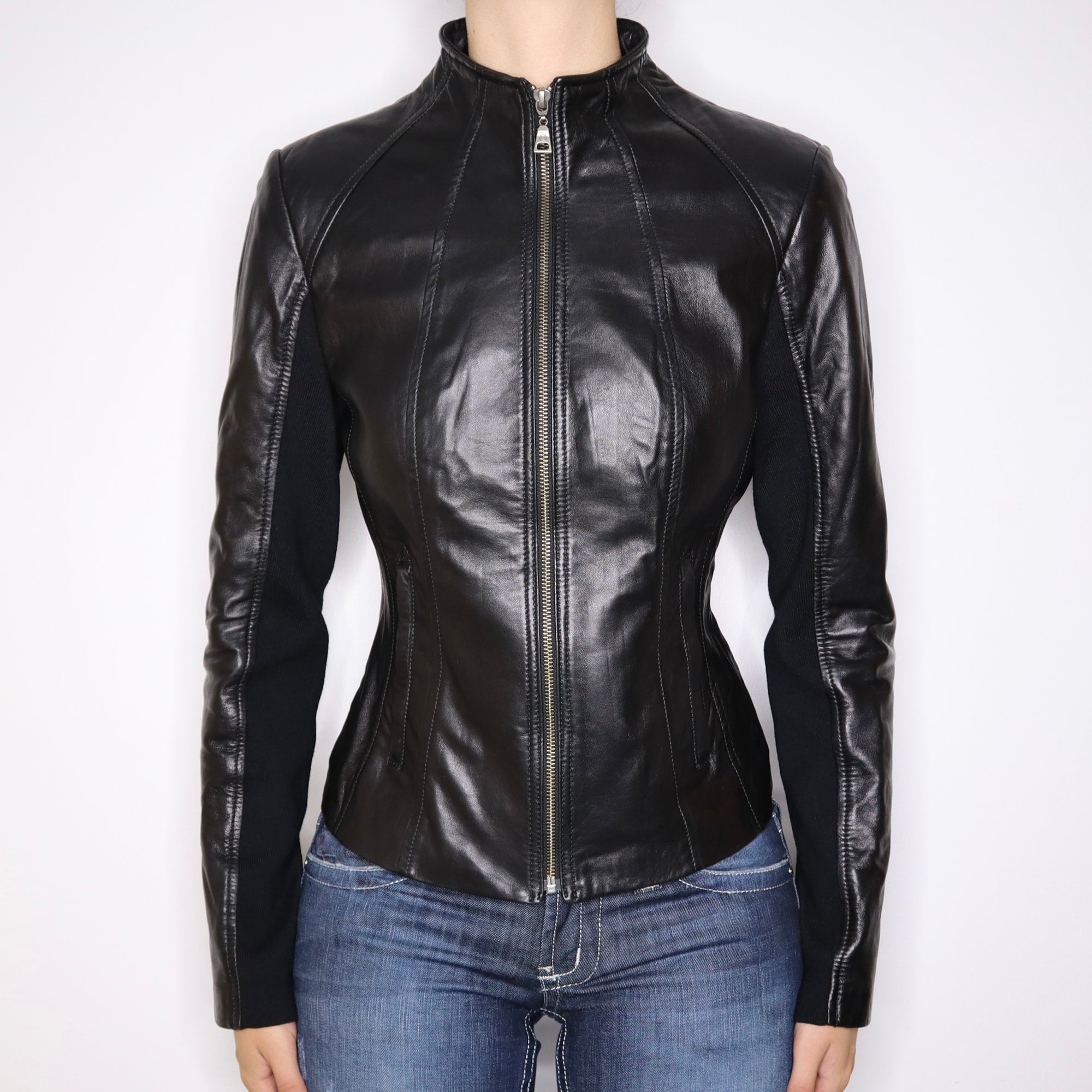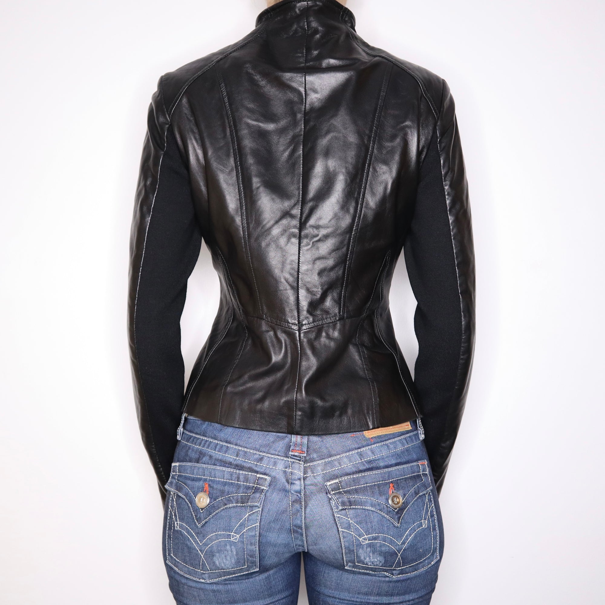 Y2K Sexy Black Italian Leather Moto Jacket (S/M)