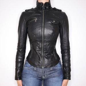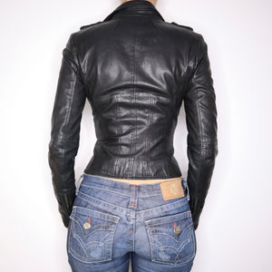 Y2K Sexy Black Italian Leather Moto Jacket (XXS)