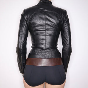 Y2K Sexy Black Leather Moto Jacket (XXXS)