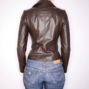 Y2K Sexy Dark Brown Leather Moto Jacket (XS)