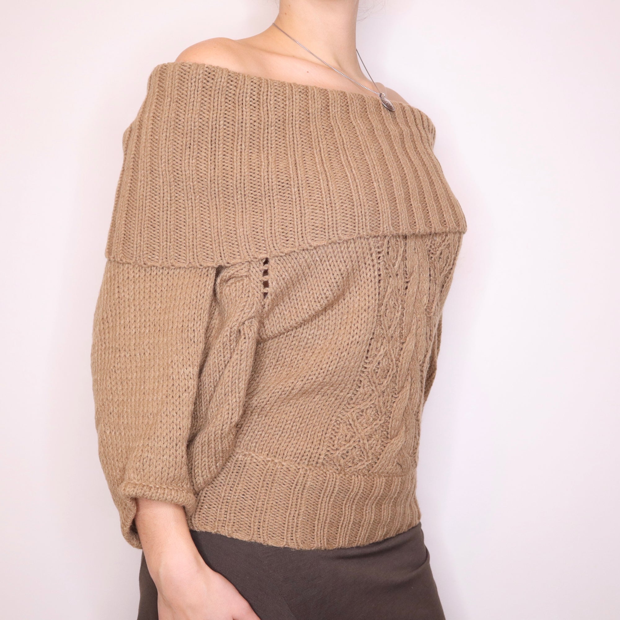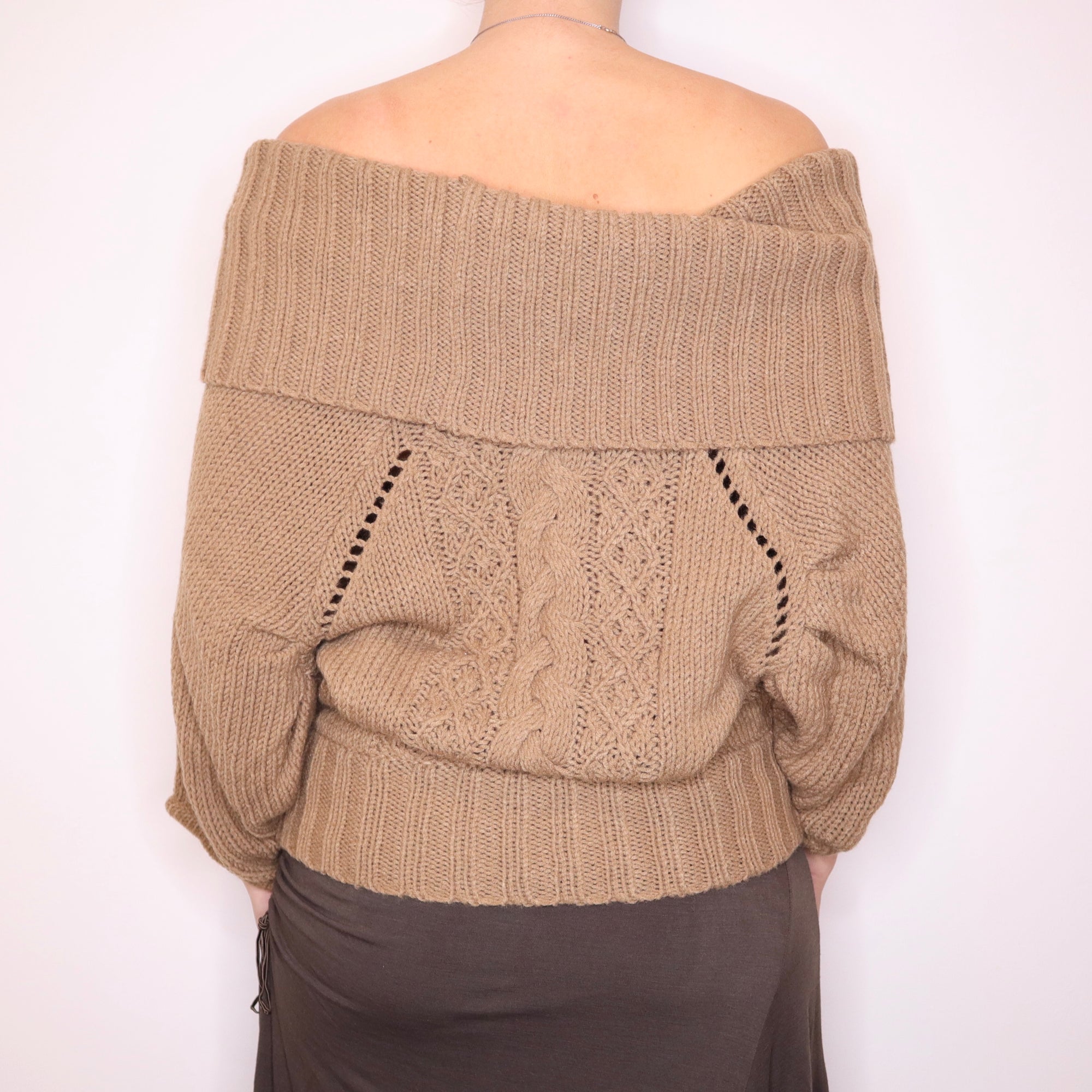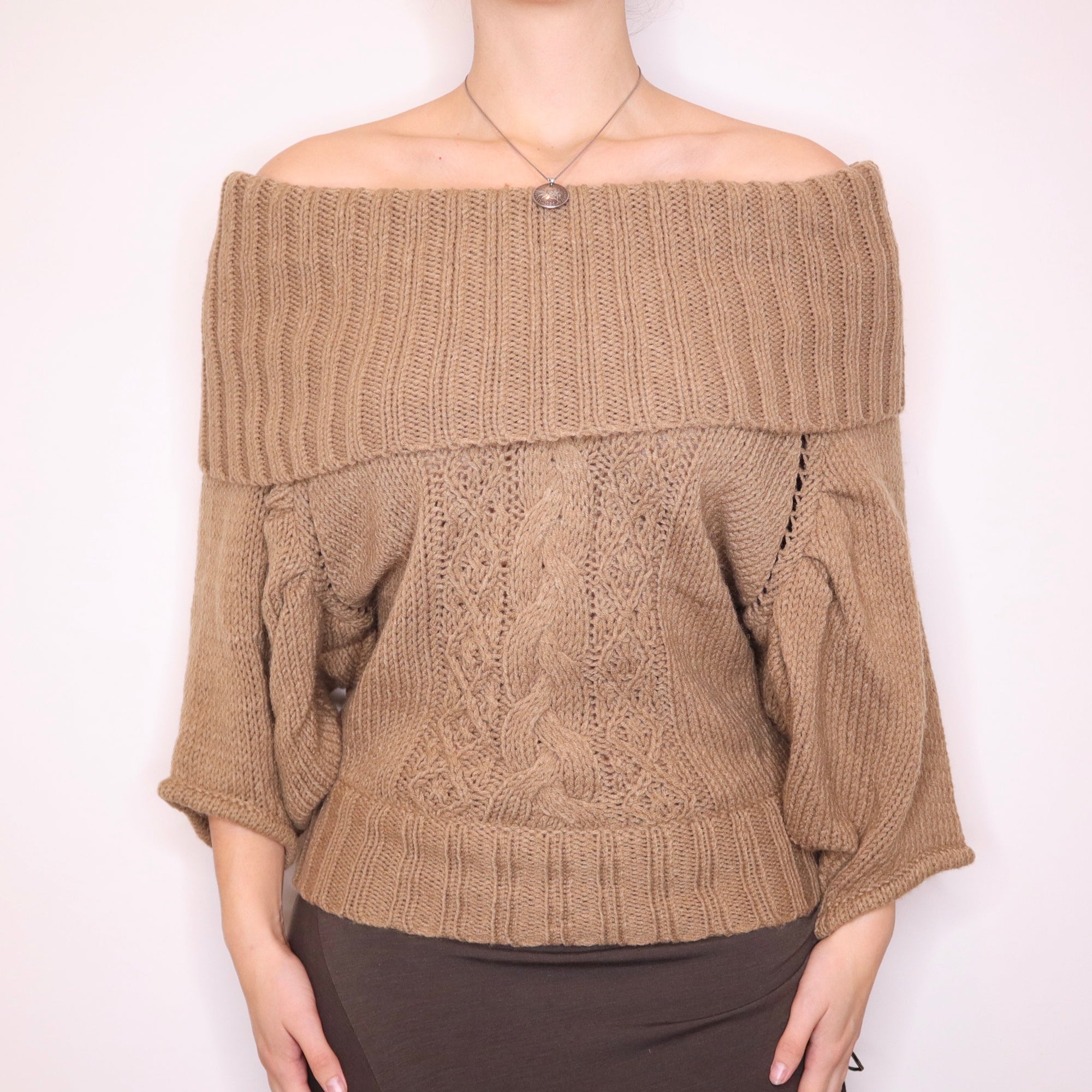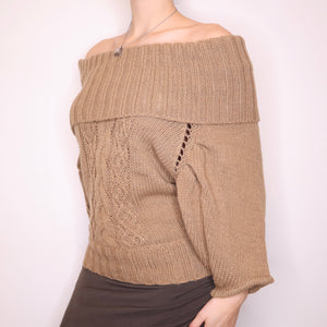 Y2K Bebe Slouchy Brown Off the Shoulder Sweater (M/L)