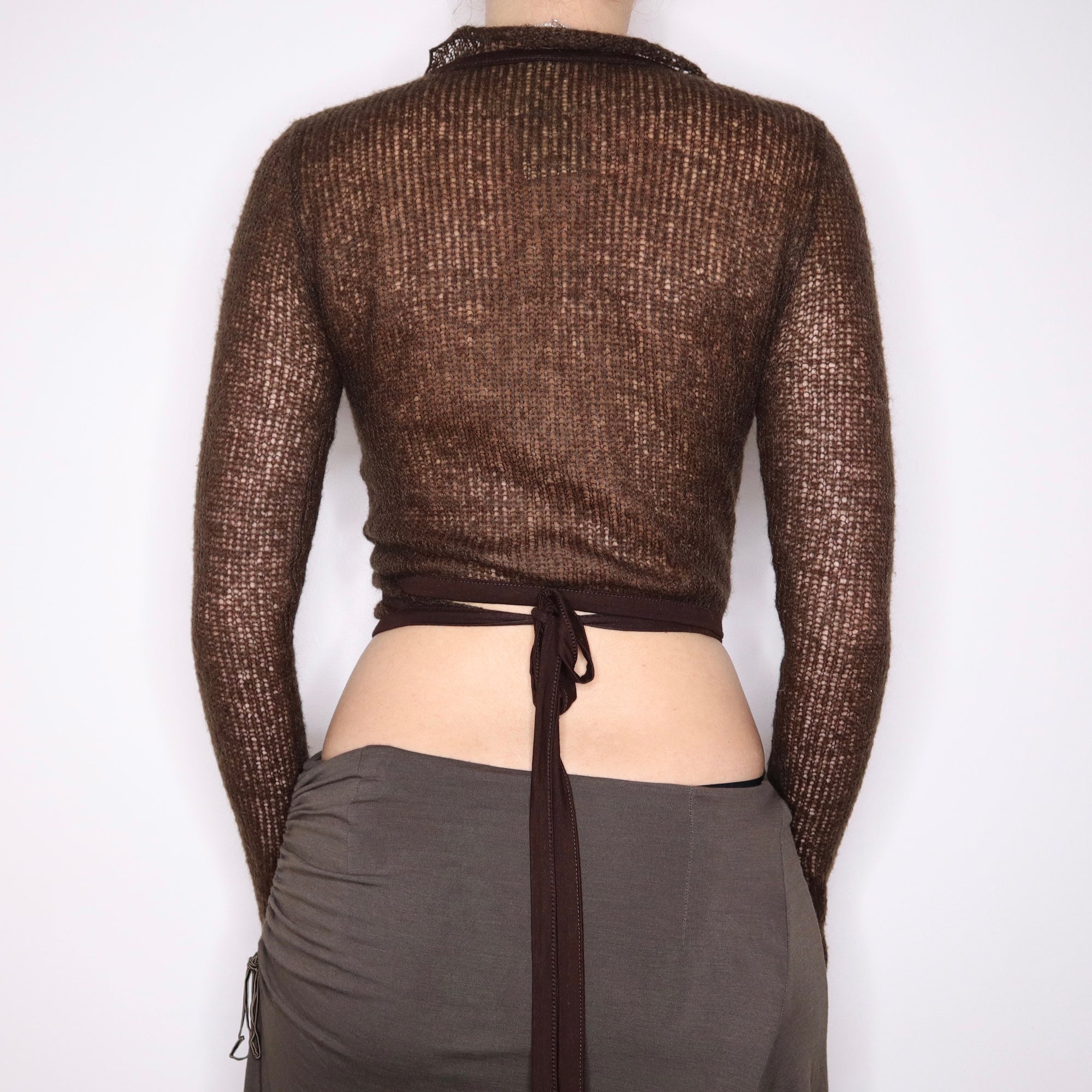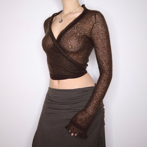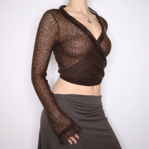 Y2K Brown Mohair Wrap Cardigan (S/M)