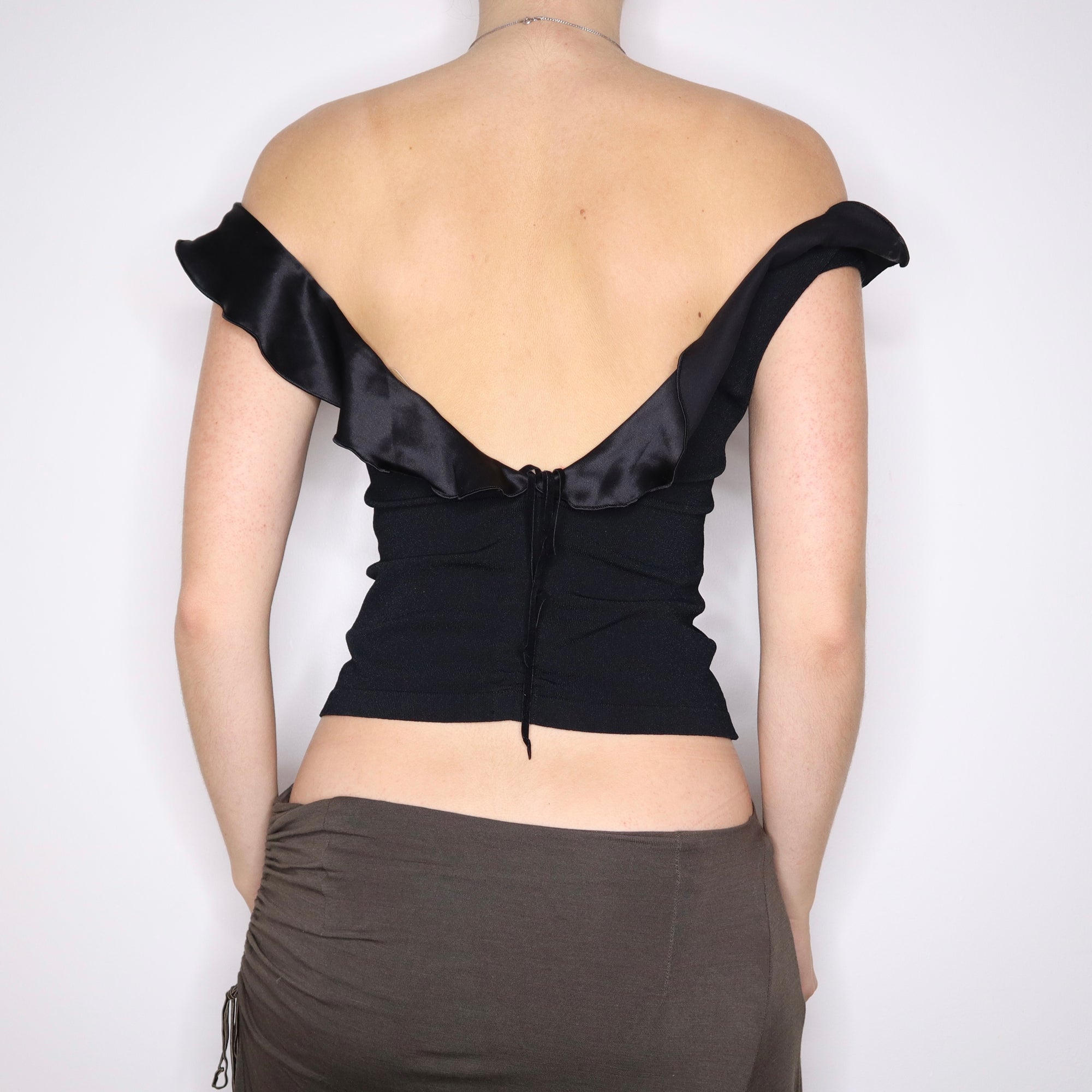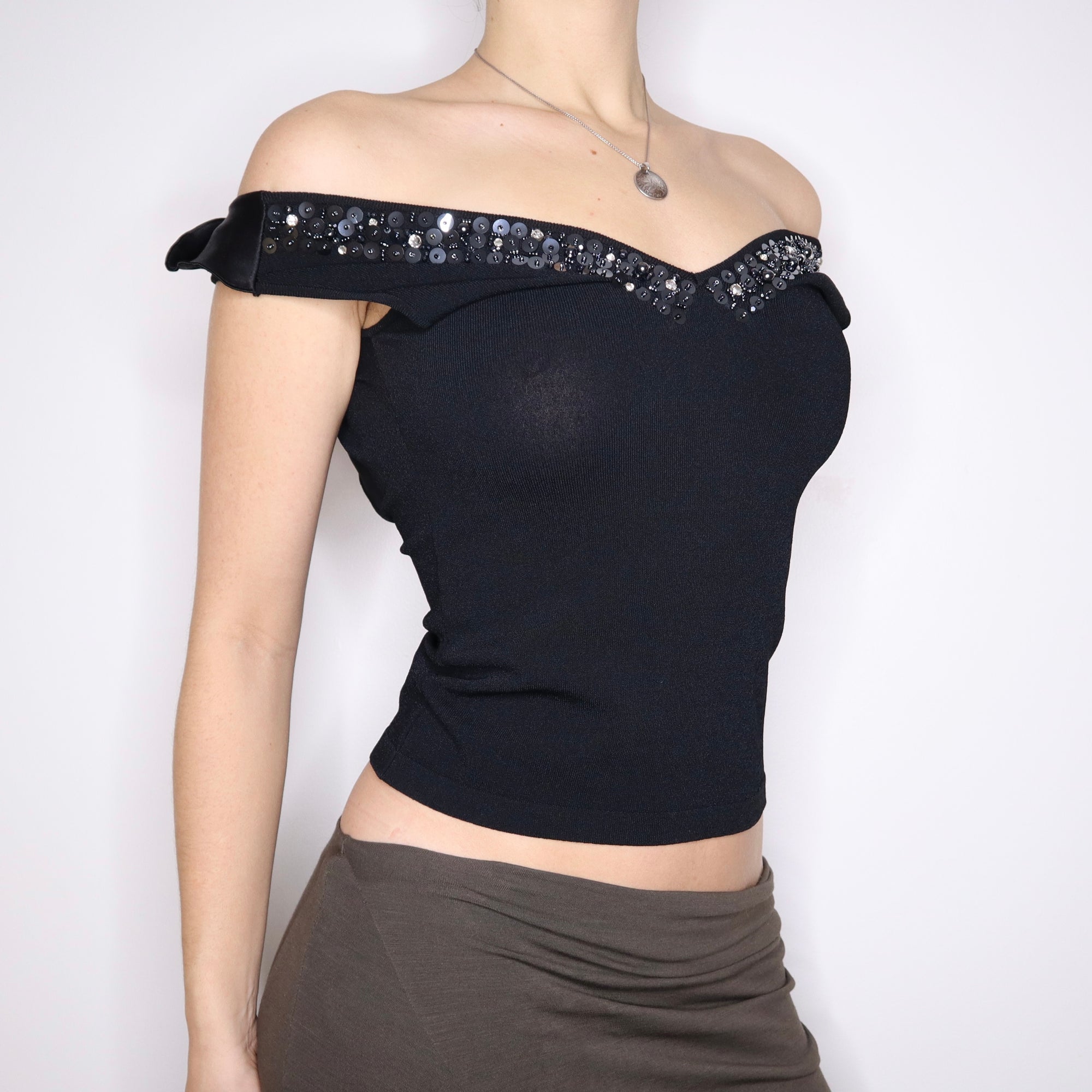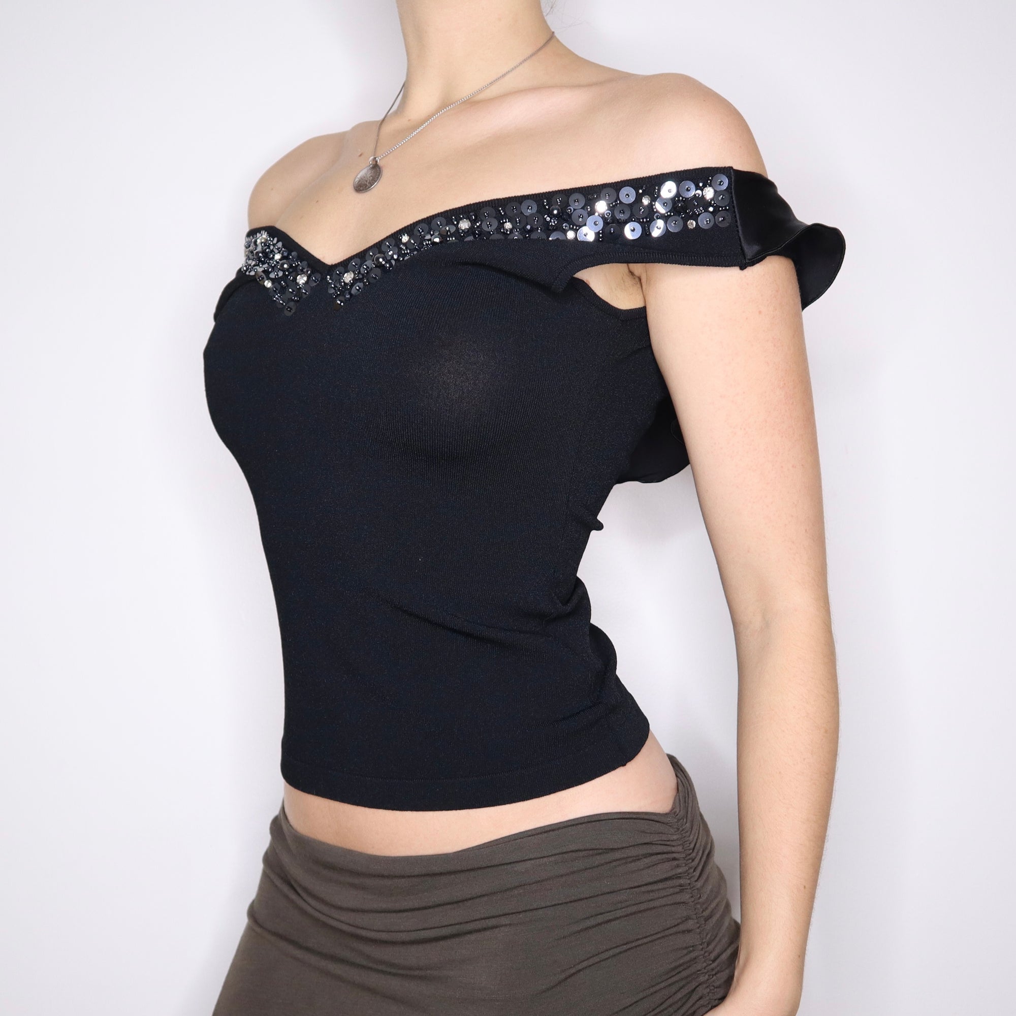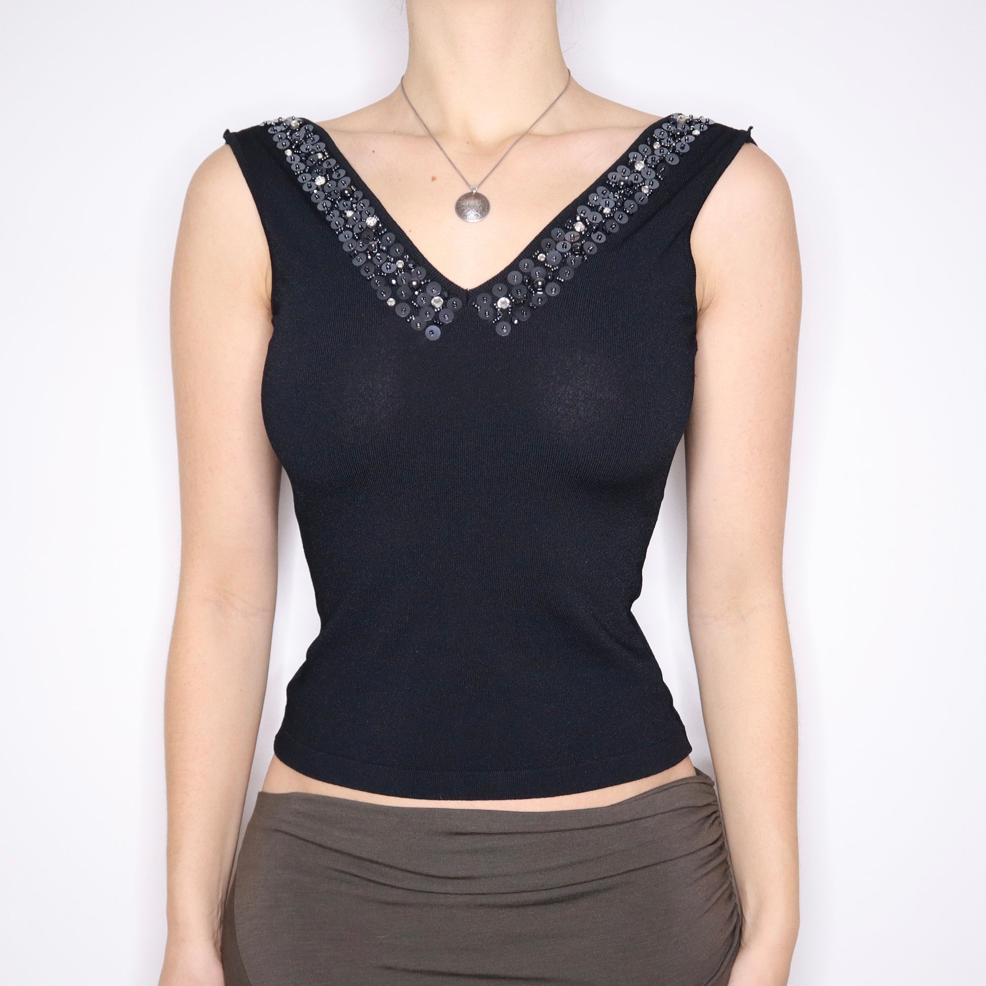 Y2K Italian Black Beaded Sequin Top (S/M)