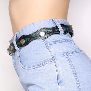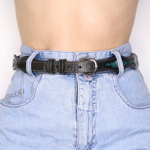 Model is 5’9” and a size S to M. This belt fits loose on her.